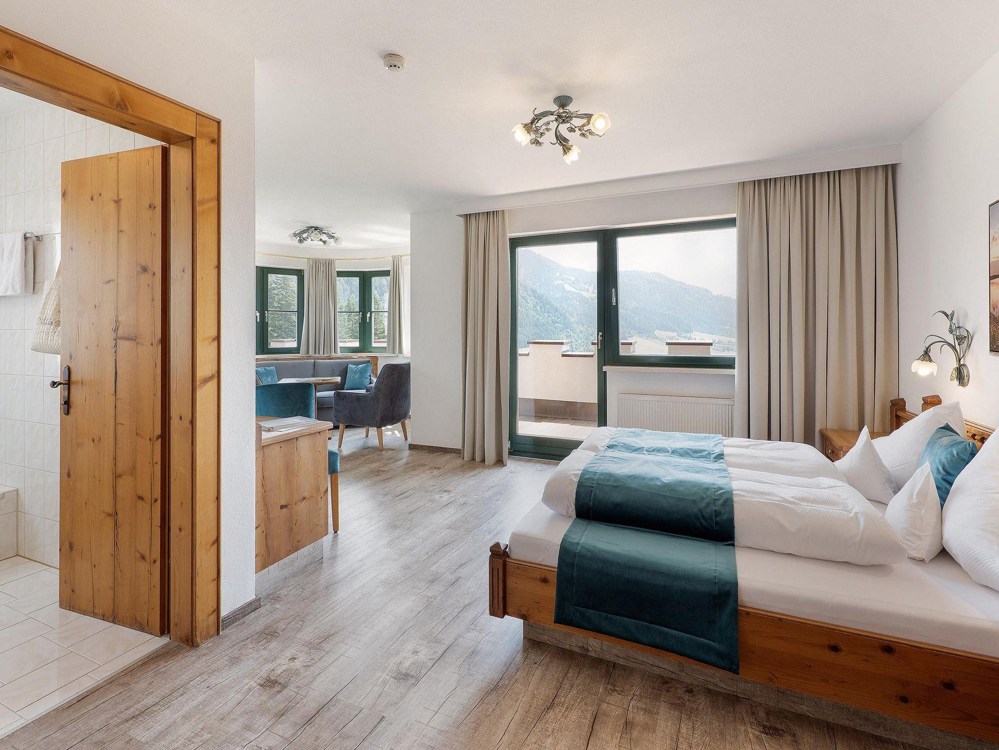 Ein gemu¨tliches Zimmer oder Suite in den Bergen beziehen unsere Ga¨ste im Hotel AlpenSchlössl. In jedem Fall kommen sie in den Genuss einer außergewo¨hnlich scho¨nen Gegend. Auch unseren herzlichen Schlo¨sslservice lassen wir ihnen immer zuteil werden, ob beim genussreichen Fru¨hstu¨ck auf der großzu¨gigen Sonnenterrasse, bei einem heiteren Gespra¨ch an der Rezeption oder bei einem edlen Tropfen an unserer Hotelbar.