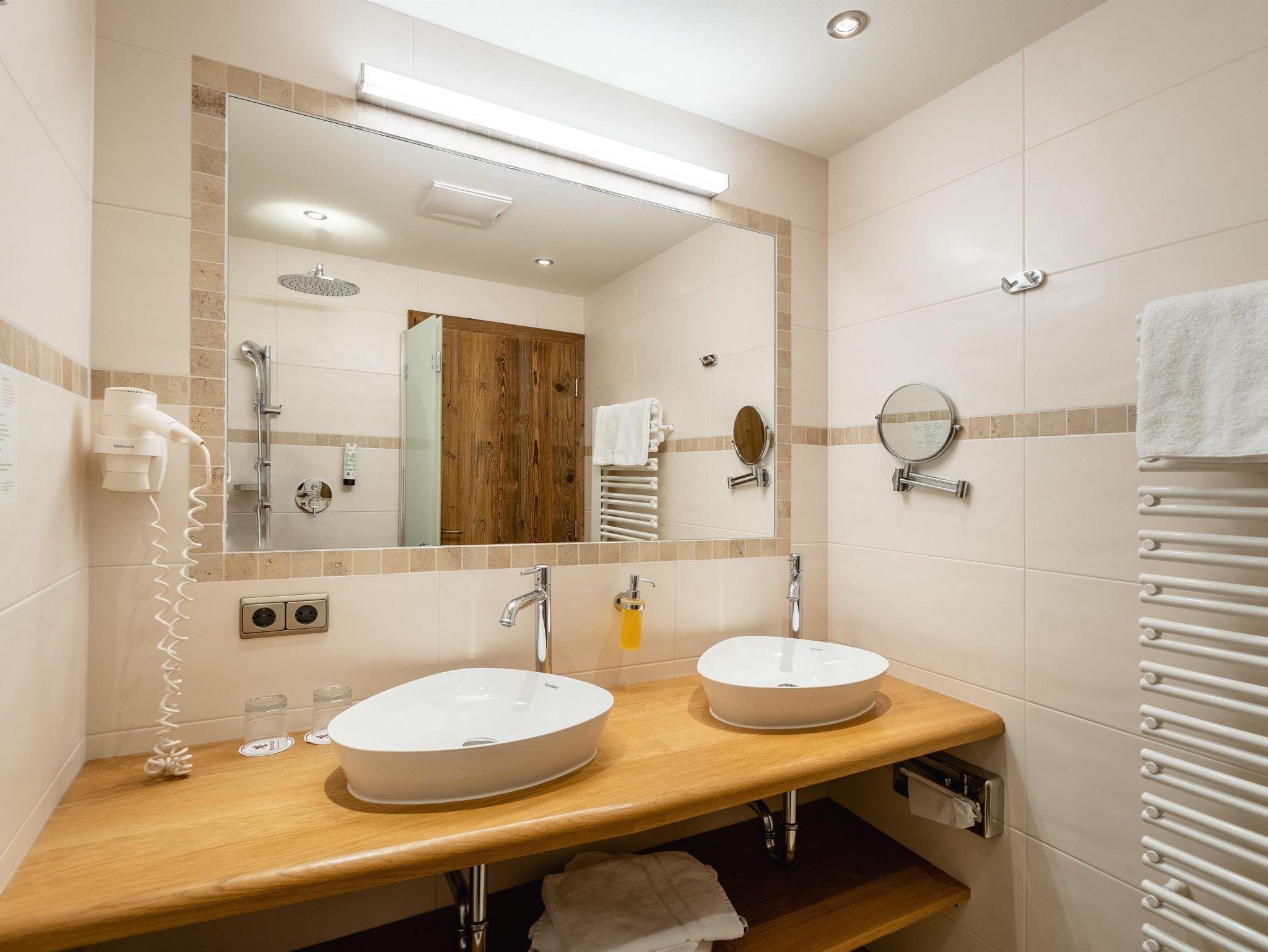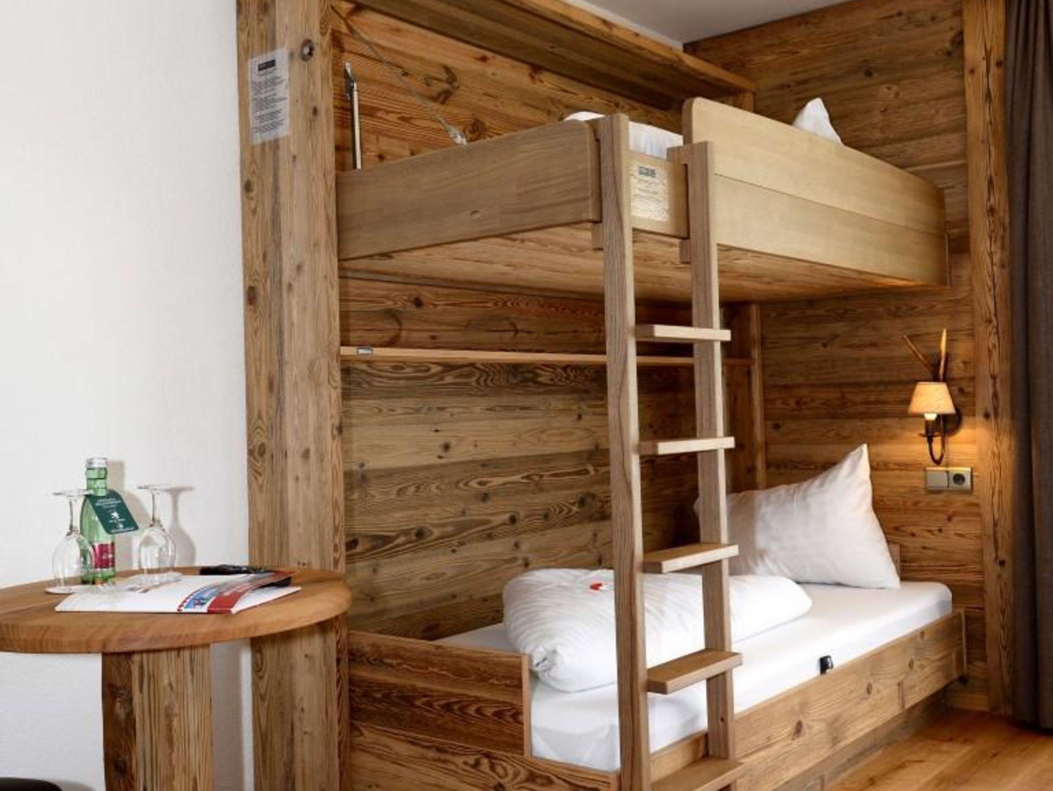 FAMILIENSUITE HEXENTENNE neues rustikales Familienzimmer mit ca. 26 m², Kindeschlafbereich mit Etagenbett und mit Schiebetür abtrennbar, mit Teppichboden und Holzboden ausgestattet Badezimmer mit Dusche und WC, Haarfön, Zimmersafe, 2 x TV, Telefon, Balkon