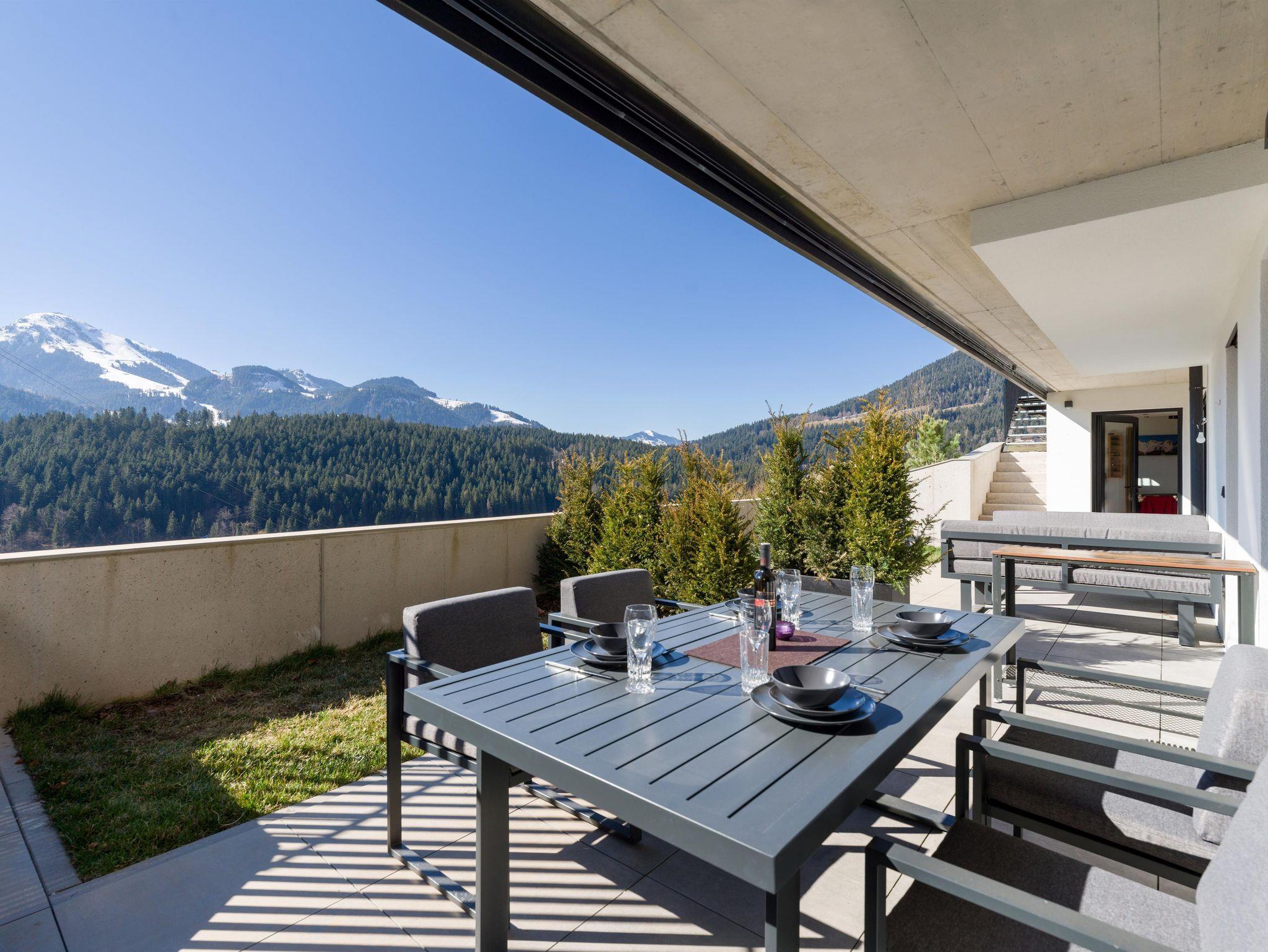 Die Wohnung ist modern, stylisch, sauber und hat eine hohe Qualität ! Es ist alles vorhanden, was man braucht (sogar 2 Flachbildschirme). Wir hatten für das Auto einen Parkplatz im Carport, war bei den heißen Temperaturen sehr angenehm. Das Apartment hat eine tolle Aussicht, wir haben immer auf der Terrasse gegessen. Die Lage ist sehr gut, wir waren in kürzester Zeit bei den Bergbahnen Die Gastgeber/in sind sehr freundlich und hilfsbereit. Wir haben uns sehr wohlgefühlt und können diese Unterkunft jederzeit empfehlen ! Alles war super, wir haben uns sehr wohlgefühlt !
