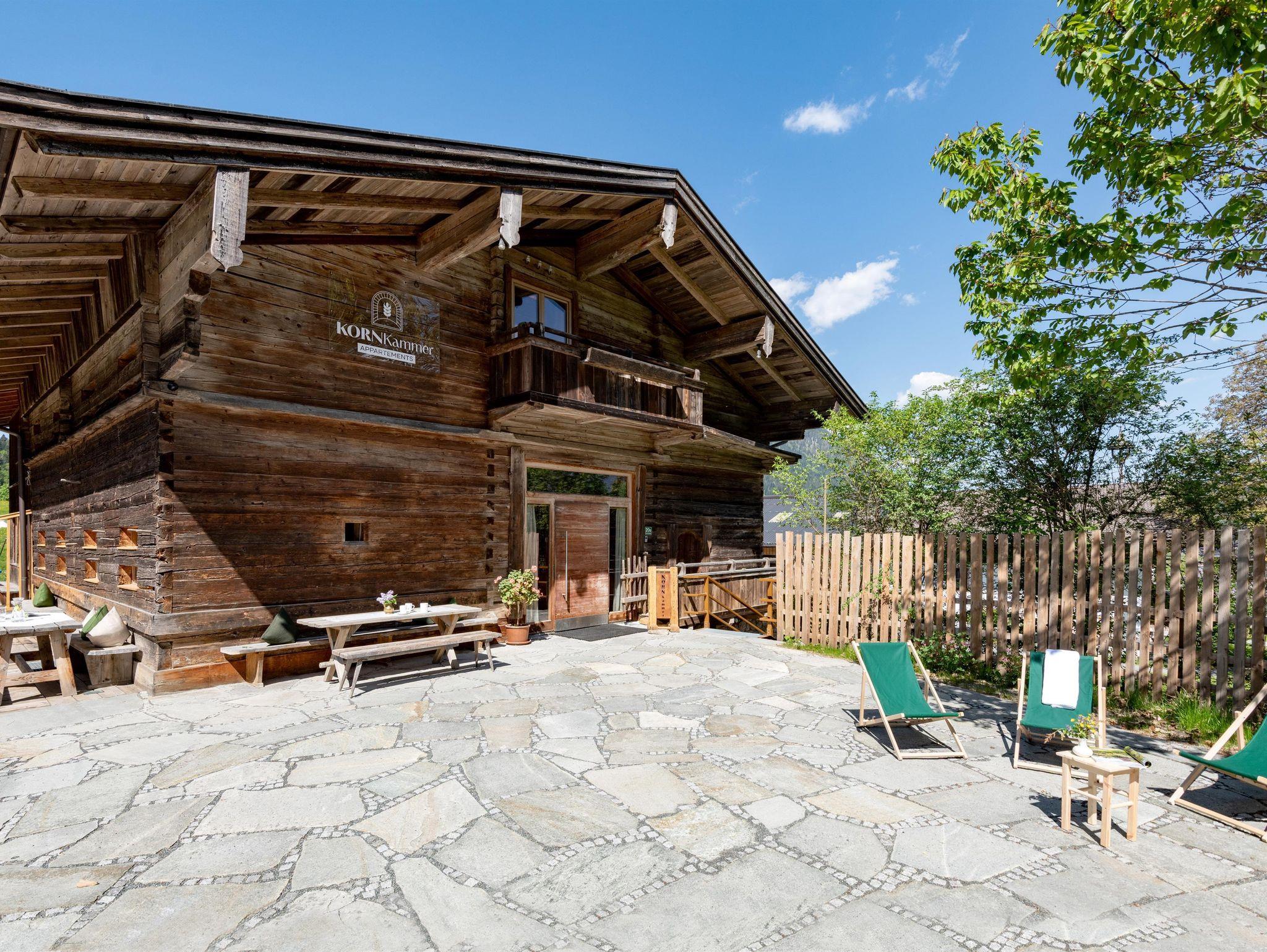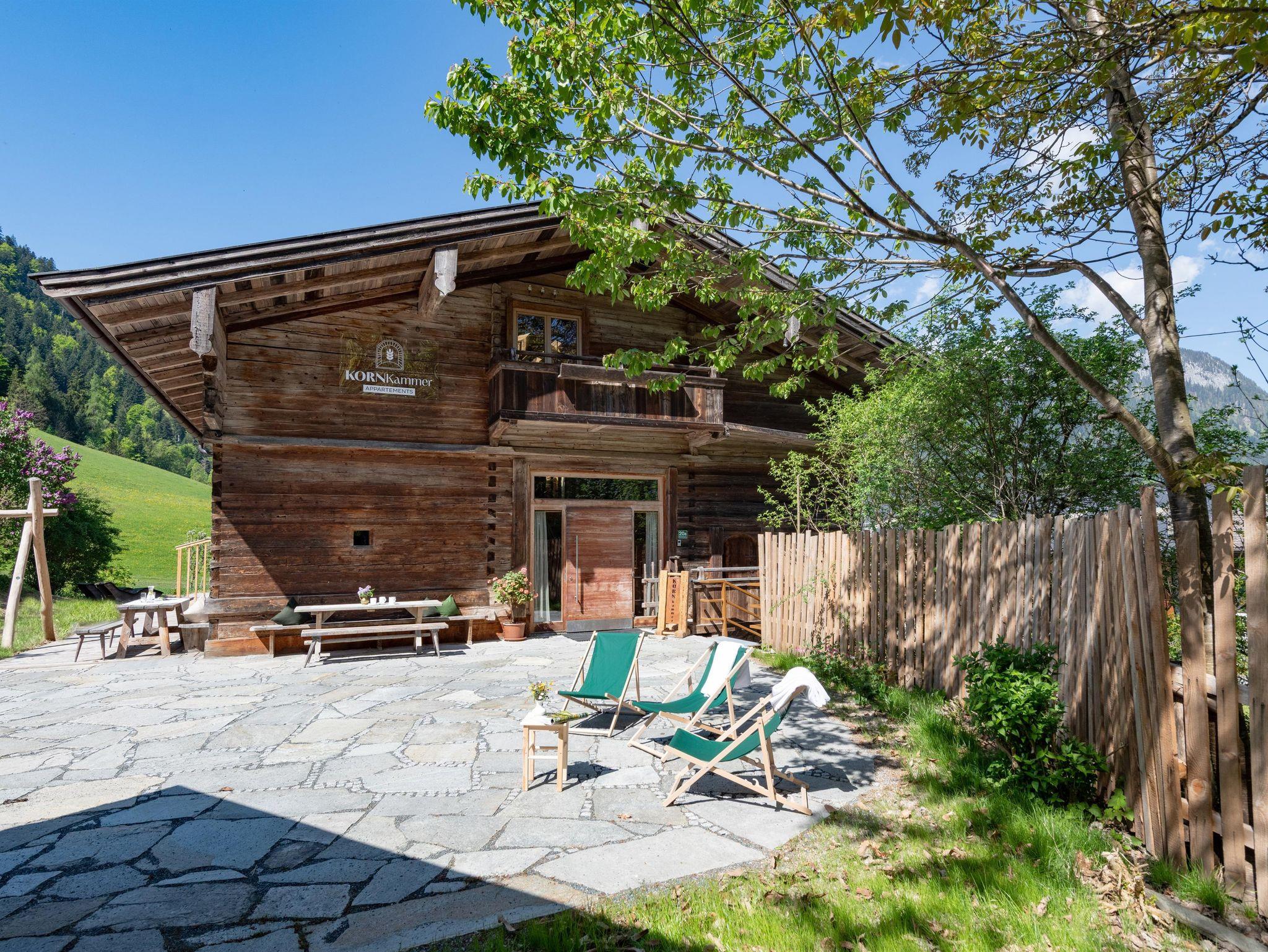 Genießen Sie die schönste Zeit des Jahres in der einzigartigen Kornkammer am Fuße der Hohen Salve, eingebettet in die majestätischen Tiroler Berge, umgeben und etwas versteckt von atemberaubender Natur. Die Kornkammer besticht durch ihre außergewöhnliche Architektur in einem über 500 Jahre alten Getreidekasten, der die Elemente von Glas, Altholz und modernen Designs auf unkonventionelle Weise verbindet – anders und einzigartig. Ein Haus mit Geschichte, ein Haus, das lebt, und ein Ort für besondere Wohlfühlmomente. Tauchen Sie ein in die Natur und die Kornkammer, lassen Sie sich inspirieren und genießen Sie einen unvergesslichen Urlaub. Die ruhige, aber zentrale Lage in der Nähe der Talstation der Hexenwasser-Gondel bietet reichlich Platz für Kinder und Erwachsene. Während die Kinder nach Herzenslust spielen und toben, können die Erwachsenen in entspannter Atmosphäre relaxen, die Aussicht genießen oder in Ruhe ein Buch lesen. Im Winter wird die Kornkammer zum Ski-In/Ski-Out-Paradies – schnallen Sie die Ski direkt vor der Haustür an