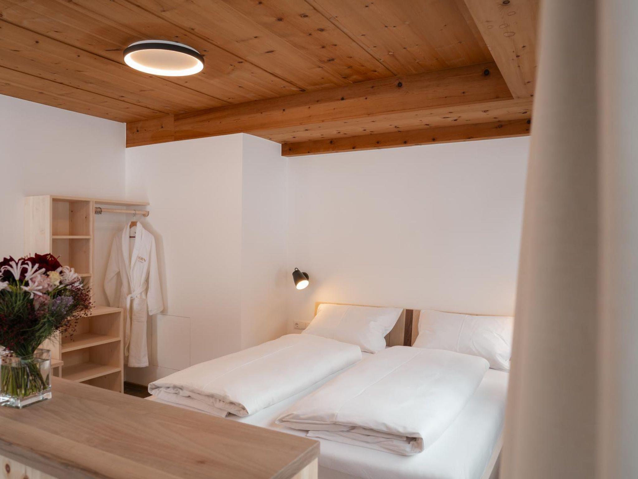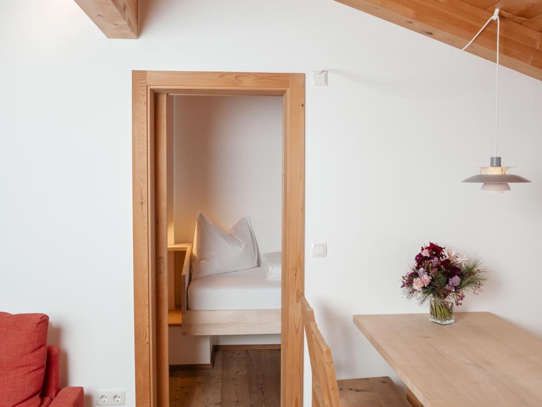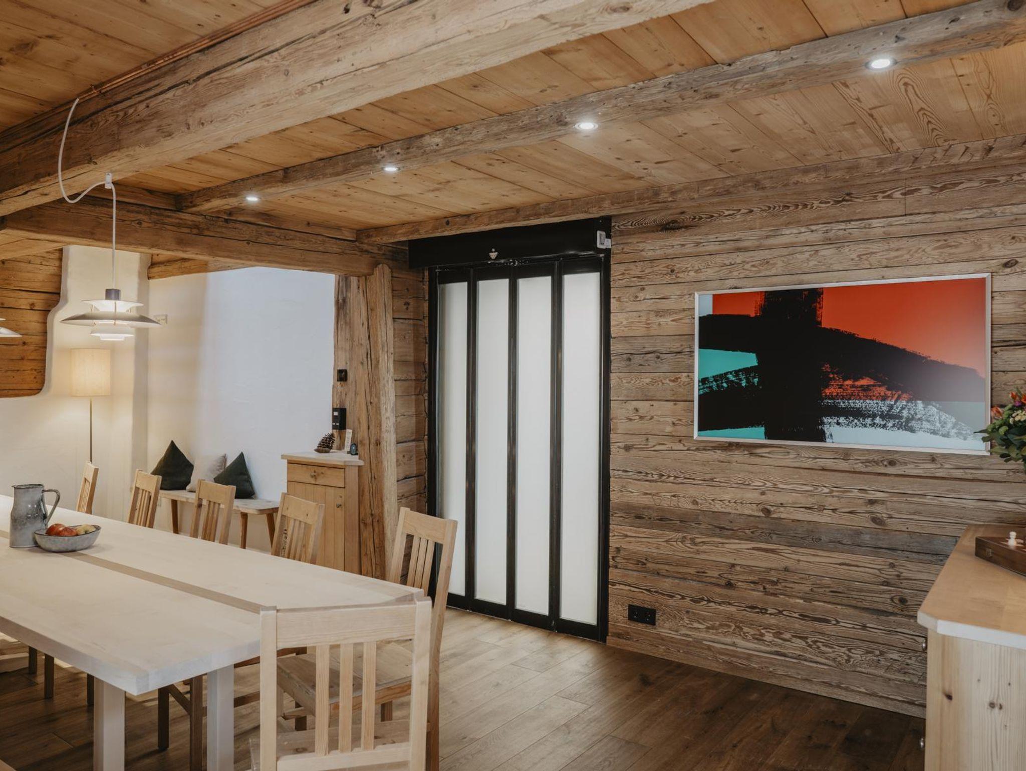 Diese Wohnung befindet sich im neu adaptierten Teil der Kornkammer mit Ausrichtung nach Westen. Sie besticht durch einen traumhaften Blick auf den Sonnenuntergang direkt hinter dem Haus. Im Sichtfeld liegen drei Pferdeweiden, und die Skipiste beginnt unmittelbar vor der Tür. Trotz der Nähe zur Piste bietet die Wohnung eine geschützte, versteckte Lage – ein wahres Unikat. Auf zwei Ebenen verteilt, verbindet die Wohnung modernen, schlichten Stil mit hochwertigem Zirbenholz.