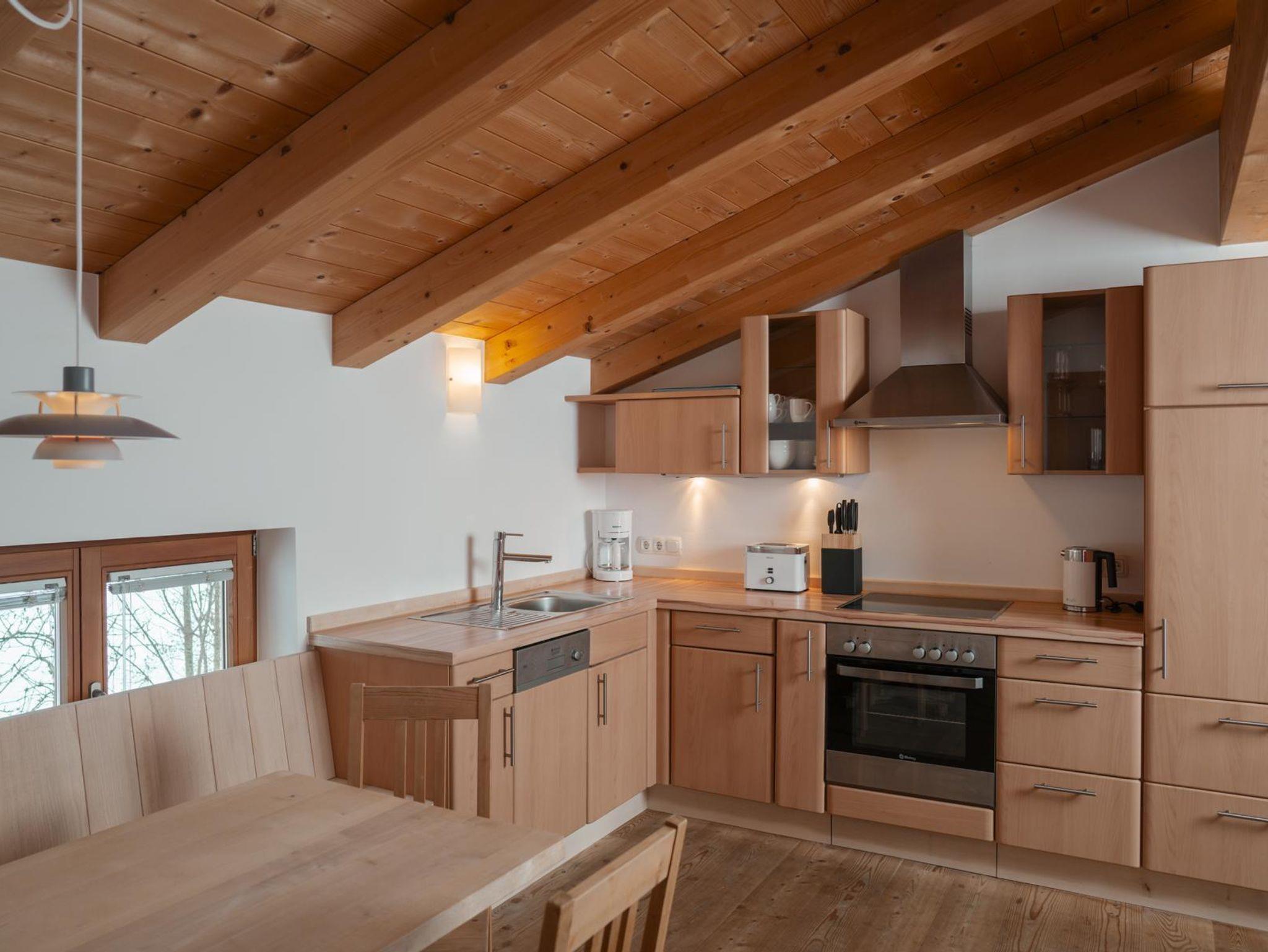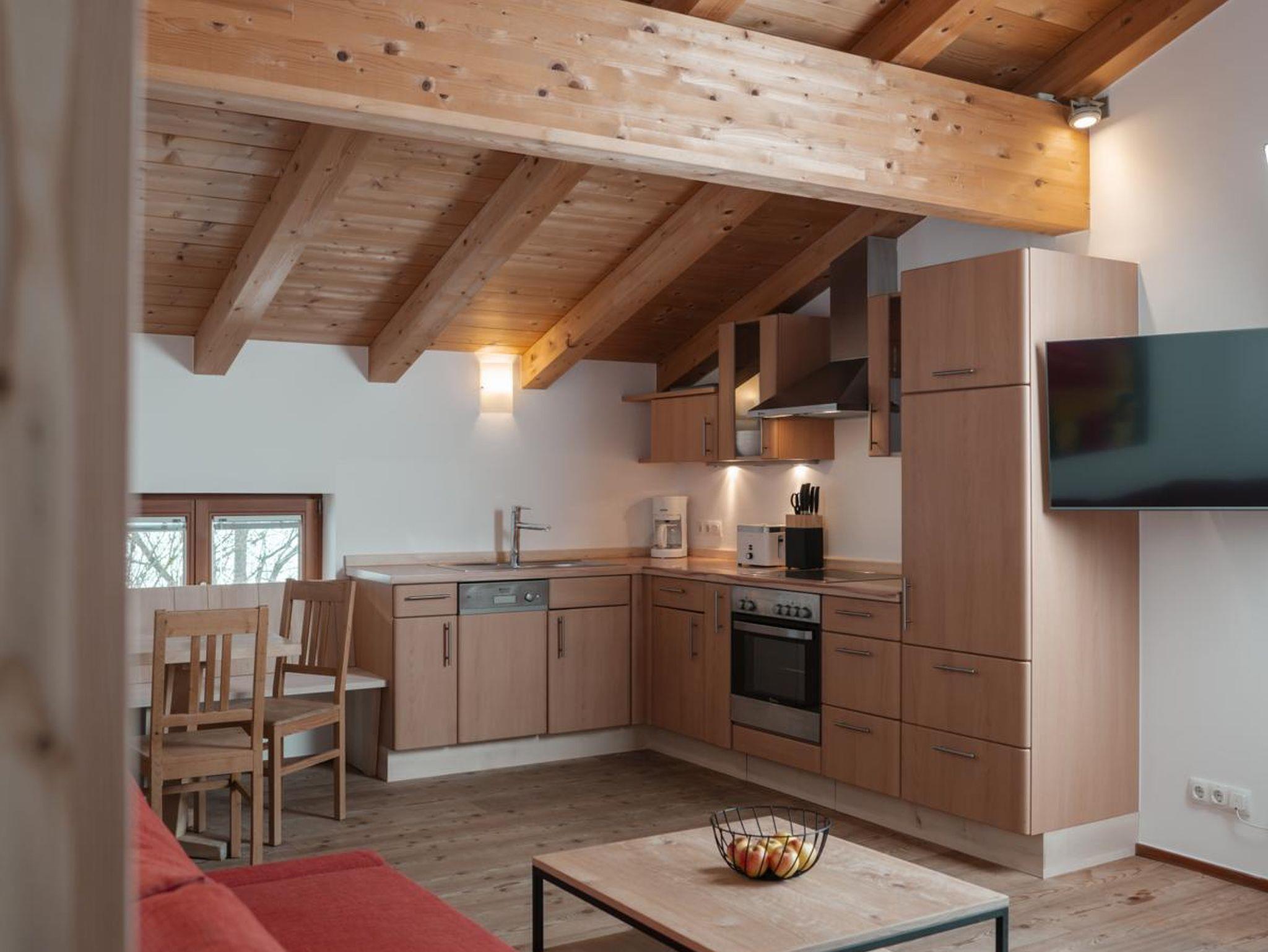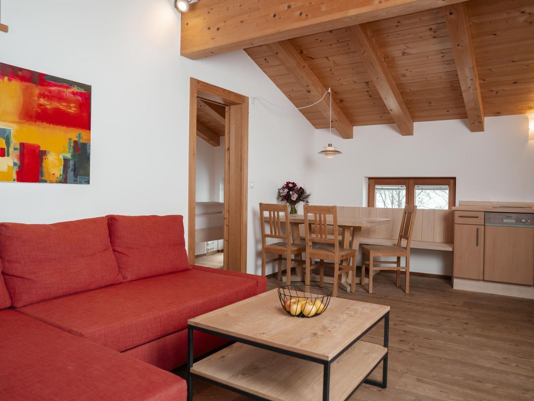 Diese Wohnung befindet sich im neu adaptierten Teil der Kornkammer mit Ausrichtung nach Westen. Sie besticht durch einen traumhaften Blick auf den Sonnenuntergang direkt hinter dem Haus. Im Sichtfeld liegen drei Pferdeweiden, und die Skipiste beginnt unmittelbar vor der Tür. Trotz der Nähe zur Piste bietet die Wohnung eine geschützte, versteckte Lage – ein wahres Unikat. Auf zwei Ebenen verteilt, verbindet die Wohnung modernen, schlichten Stil mit hochwertigem Zirbenholz.