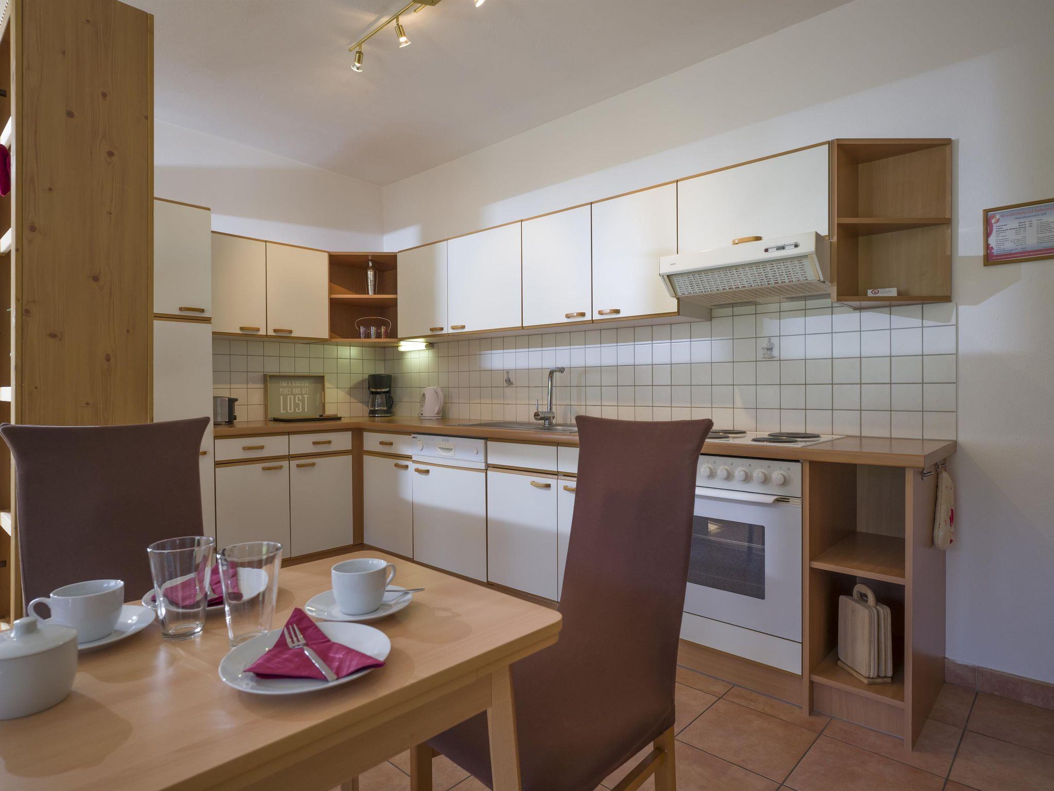 Unsere neue, grosszügig ausgestattete Ferienwohnung für 1-3 Personen (ca. 58m²) hat 1 Schlafzimmer mit Doppelbett und eigenem Schrankraum, eine komplett ausgestattete Wohnküche mit Sat-TV und einer ausziehbaren Couch als Zustellbett für die 3. Person, 1 Bad mit Dusche, separatem WC, einen Vorraum und einen Abstellraum mit Mini-Safe. Um Gewicht bei Ihrem Gepäck zu sparen, können Hand- und Badetücher sowie Bettwäsche auf Anfrage zur Verfügung gestellt werden.