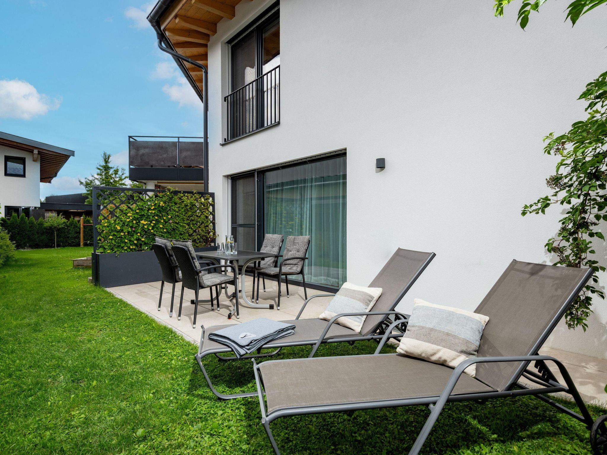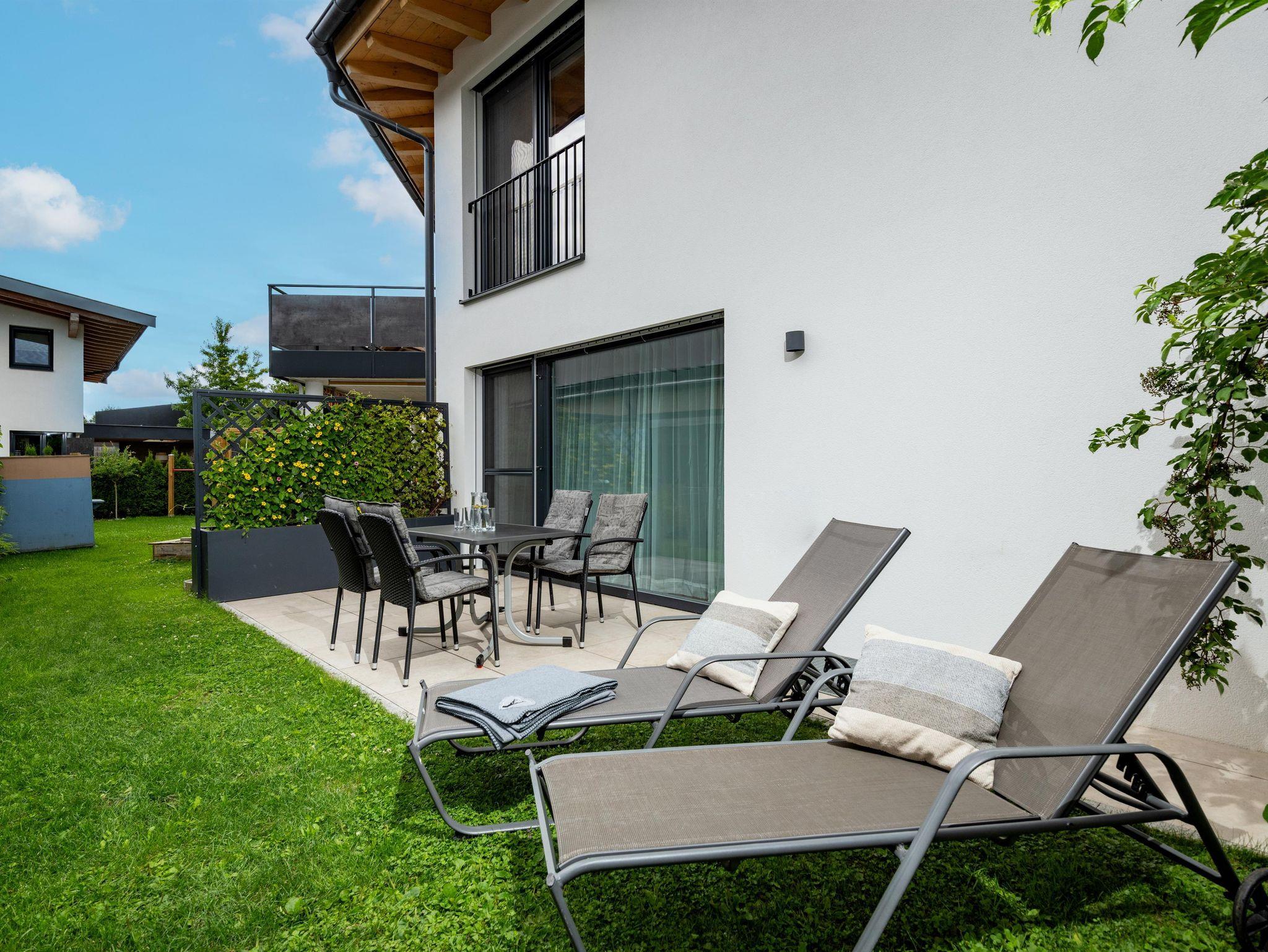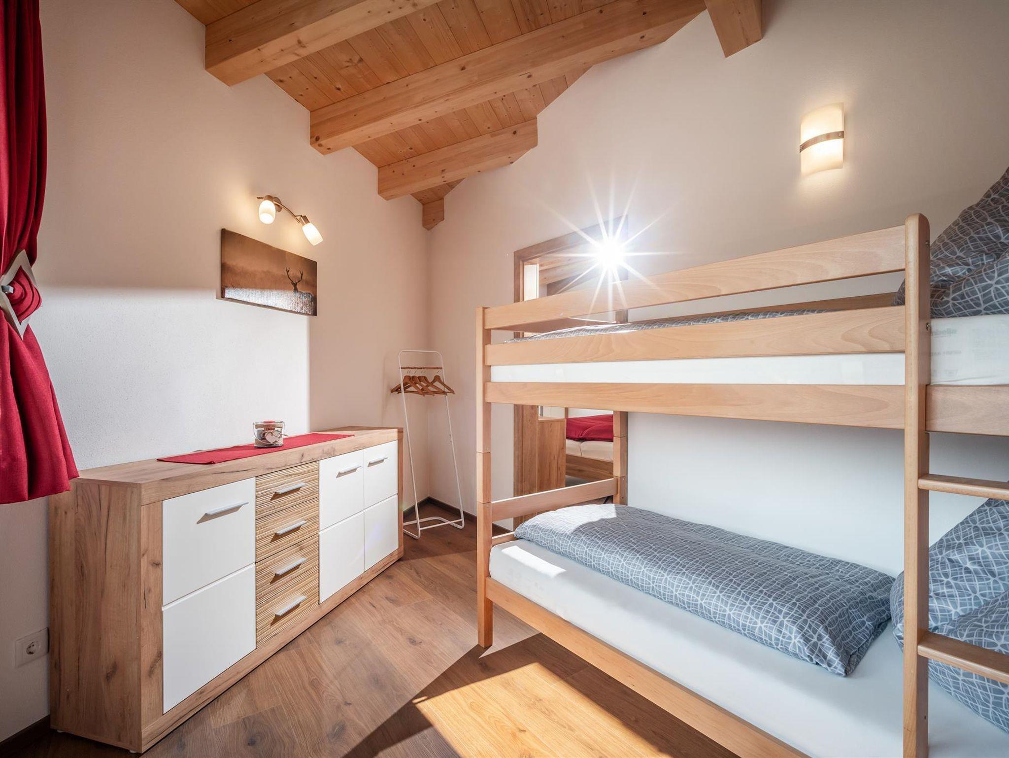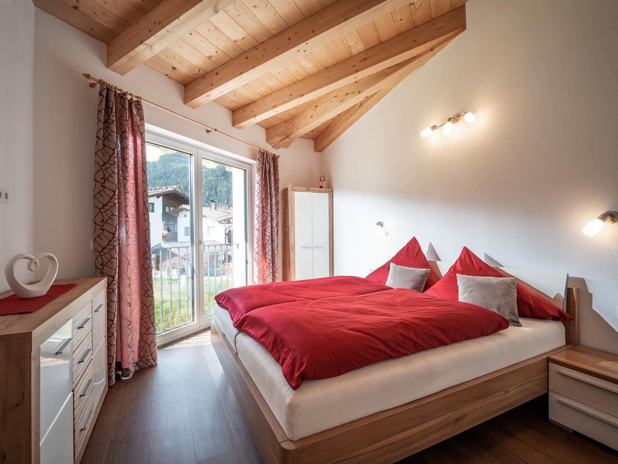 Unsere 2019 errichtete Ferienwohnung (ca. 62m²) besteht aus 2 Schlafzimmern (Doppelbett, 1,90 m Stockbetten), vollausgestattete Wohnküche, diese verfügt über ein gemütliches und ausziehbares Sofa, 2 Fernseher, Geschirrspüler, Kühl- und Gefrierschrank, Dusche/WC und separates WC, Garderobe, in der ganzen Wohnung Fußbodenheizung, (nachhaltiges Heizsystem), Balkon, eigene Terasse mit Garten. Gratis WLAN. Sie können einen wunderbaren Blick auf die umliegenden Berge und das Bergdoktorhaus genießen.