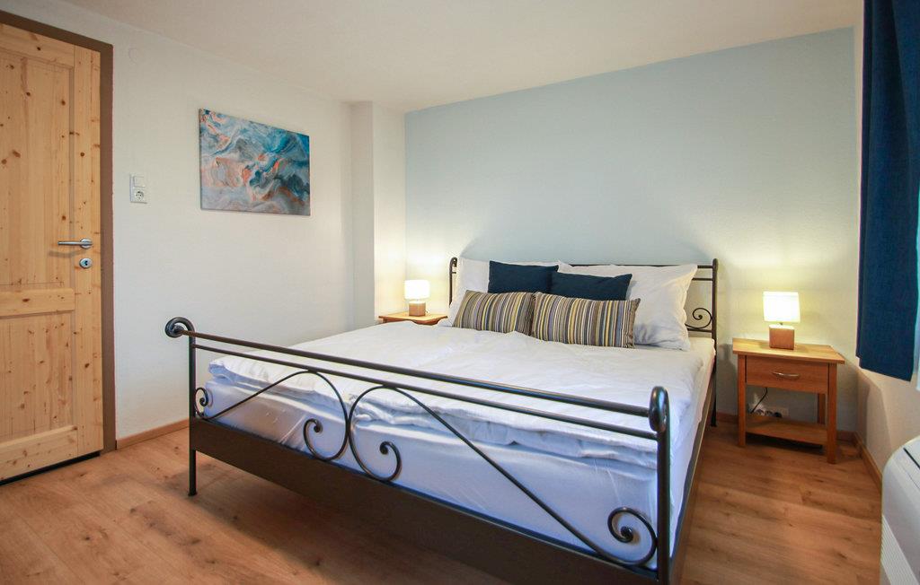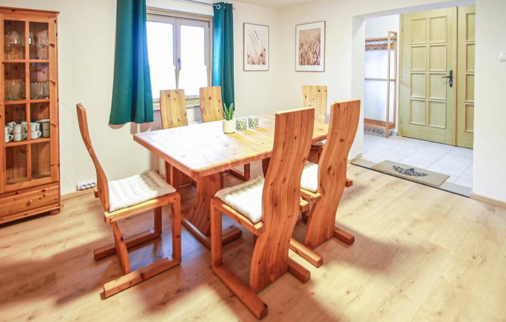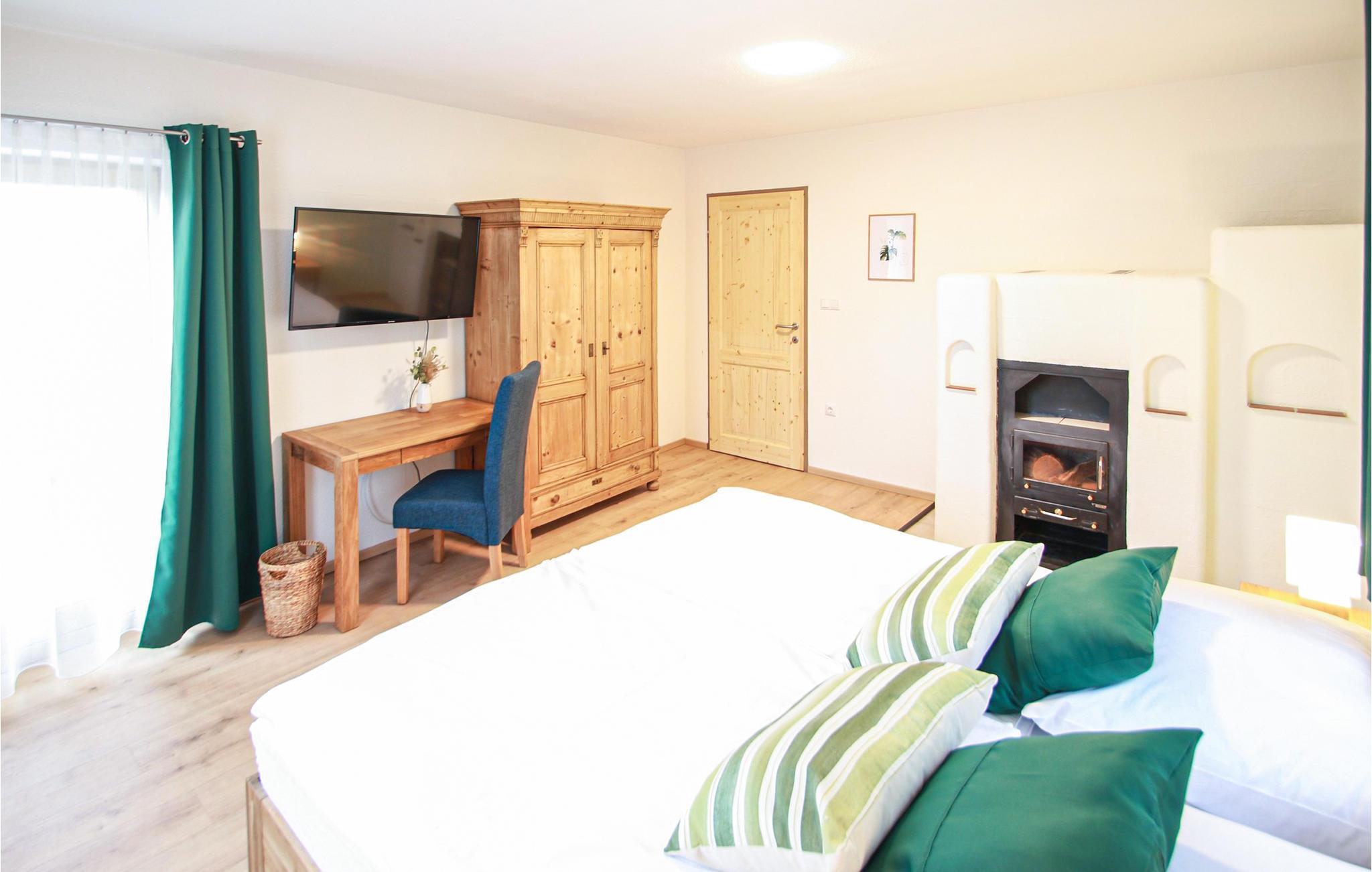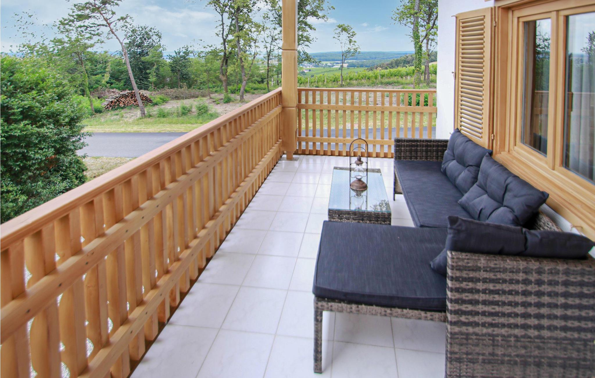 De tre soveværelser har plads til seks personer, og interiøret er hyggeligt i rolige farver og lyst træ. Køkkenet er udstyret med alt, hvad I behøver til jeres ferie i det sydlige Burgenland. Nyd lune aftener på jeres terrasse med et glas Eisenberg-vin. Jeres feriehus ligger på en stille gade med skov på den ene side og udsigt over vinmarkerne på den anden.