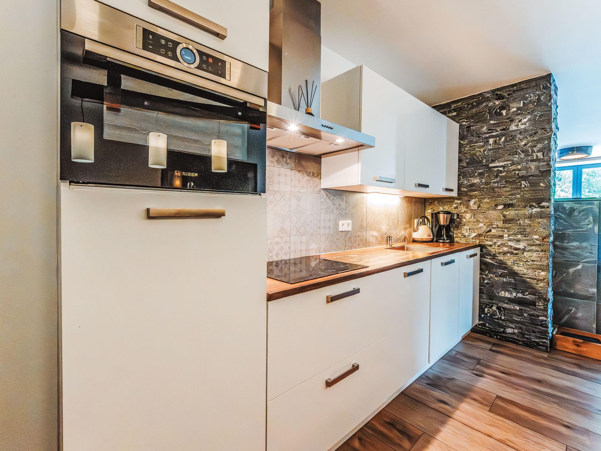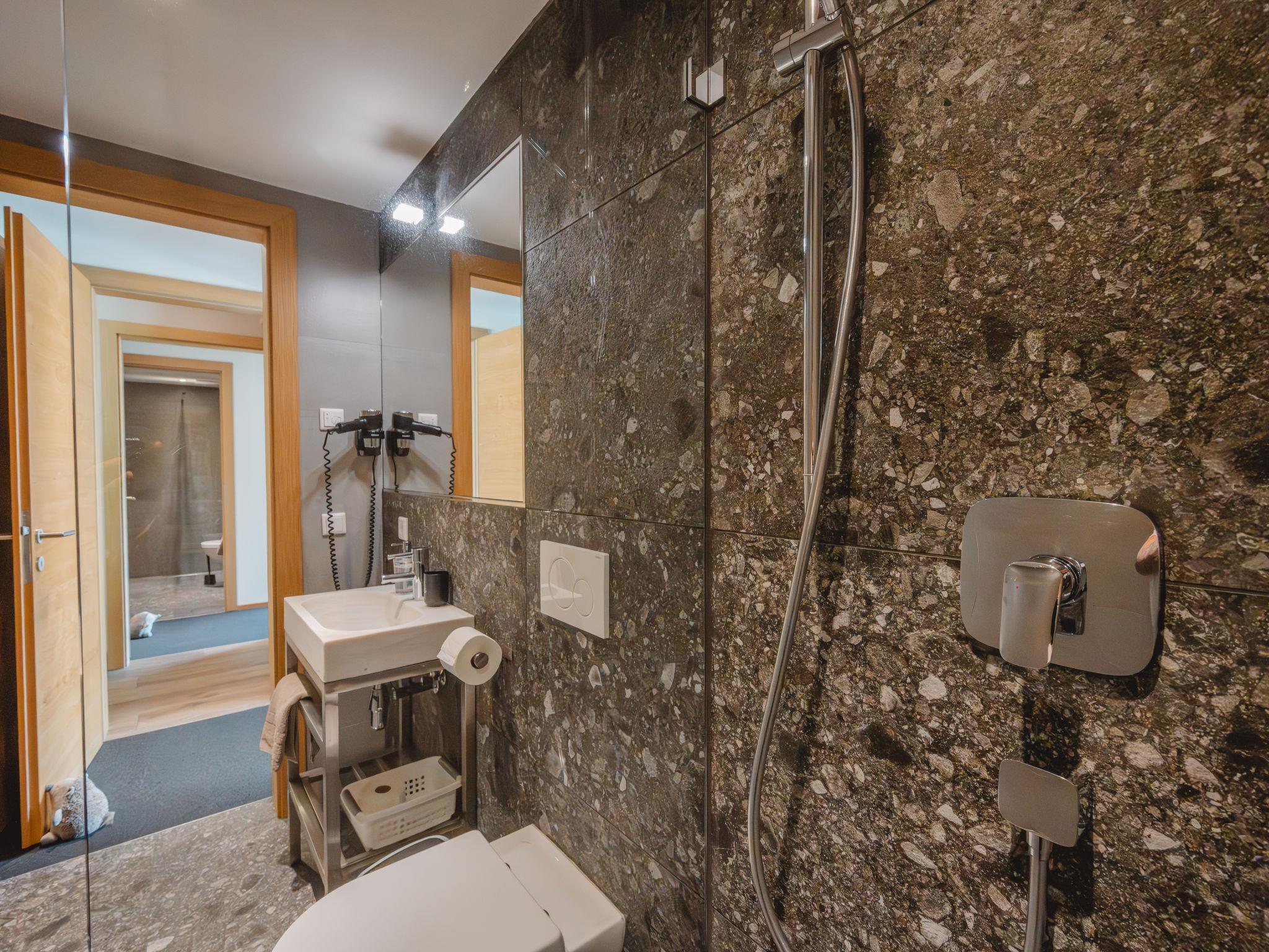 "Fassl 1", 5-room apartment 138 m2. Modern and luxurious furnishings: entrance hall. Living/dining room with Scandinavian wood stove, dining table, dining nook, bar, satellite TV and cable TV. Exit to the terrace. 4 double bedrooms, each room with shower/WC and electric heating. Large, open kitchen (oven, dishwasher, 4 induction hot plates, toaster, kettle, electric coffee machine, combination microwave). Underfloor heating. Natural stone floors. Large terrace. Terrace furniture, barbecue. Very beautiful view of the countryside. Facilities: Internet (WiFi). Please note: non-smokers only. Summercard included! Excellently equipped! Each double room has its own bathroom.