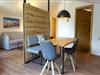Lejlighederne er stilfuldt og af høj kvalitet indrettet, kombinerer tradition med modernitet og tilbyder en helt igennem behagelig opholdsoplevelse. Den rummelige stue og spisestue med moderne køkken tilbyder gæsterne komfort. Lejligheden byder på en sofa, et fladskærms-tv, et fuldt udstyret køkken med højkvalitetsapparater og et komfortabelt opholdsområde, der kan rumme i alt 6 personer. Køkkenet er udstyret med induktionskomfur, ovn, køleskab med fryser, opvaskemaskine, elkedel, brødrister, filter og Nespresso kaffemaskine. Den hyggelige altan, med 2 siddepladser og et lille sidebord, kan nås enten gennem stue og spisestue eller gennem et af soveværelserne. Generelt er lejlighedshuset udstyret med elevator i opgangen, eget ski- og cykelrum samt el-ladestation. Om sommeren er Joker Card inkluderet gratis med adskillige tilbud og rabatter. Indkvarteringen er beliggende i centrum af Saalbach Hinterglemm og kun få meter fra "Kohlmaisbahn"-skistationen. Byens centrum med restauranter, barer og indkøbsmuligheder kan nås på få minutter til fods. Større skiområder kan nås på mindre end 10 km.