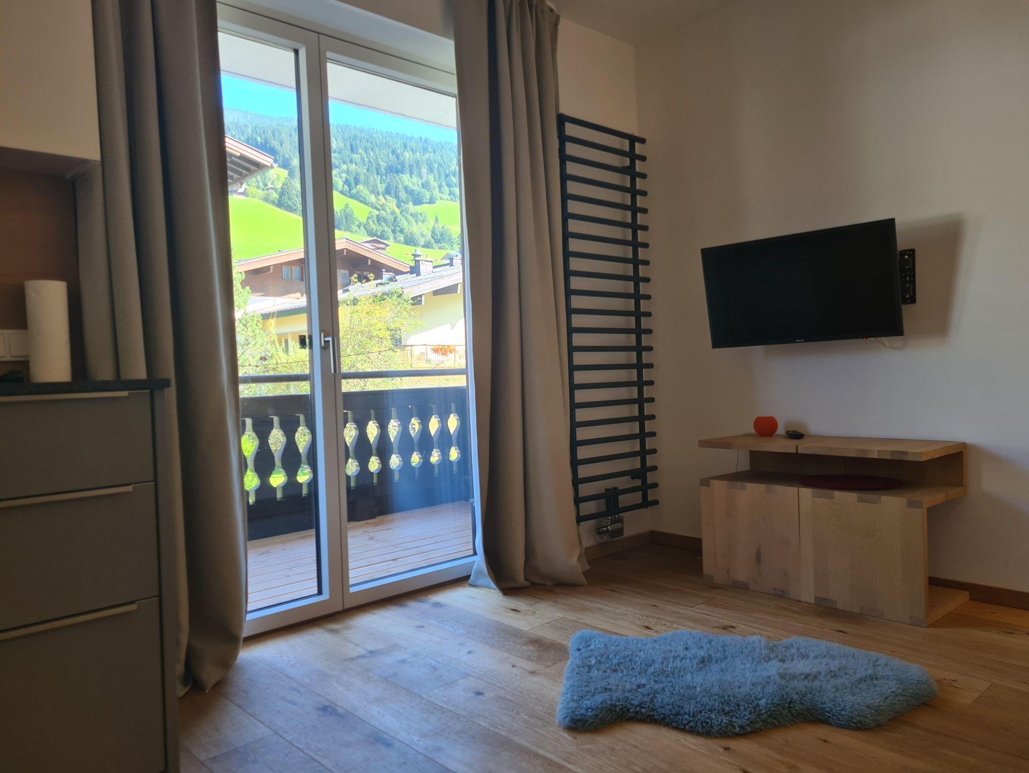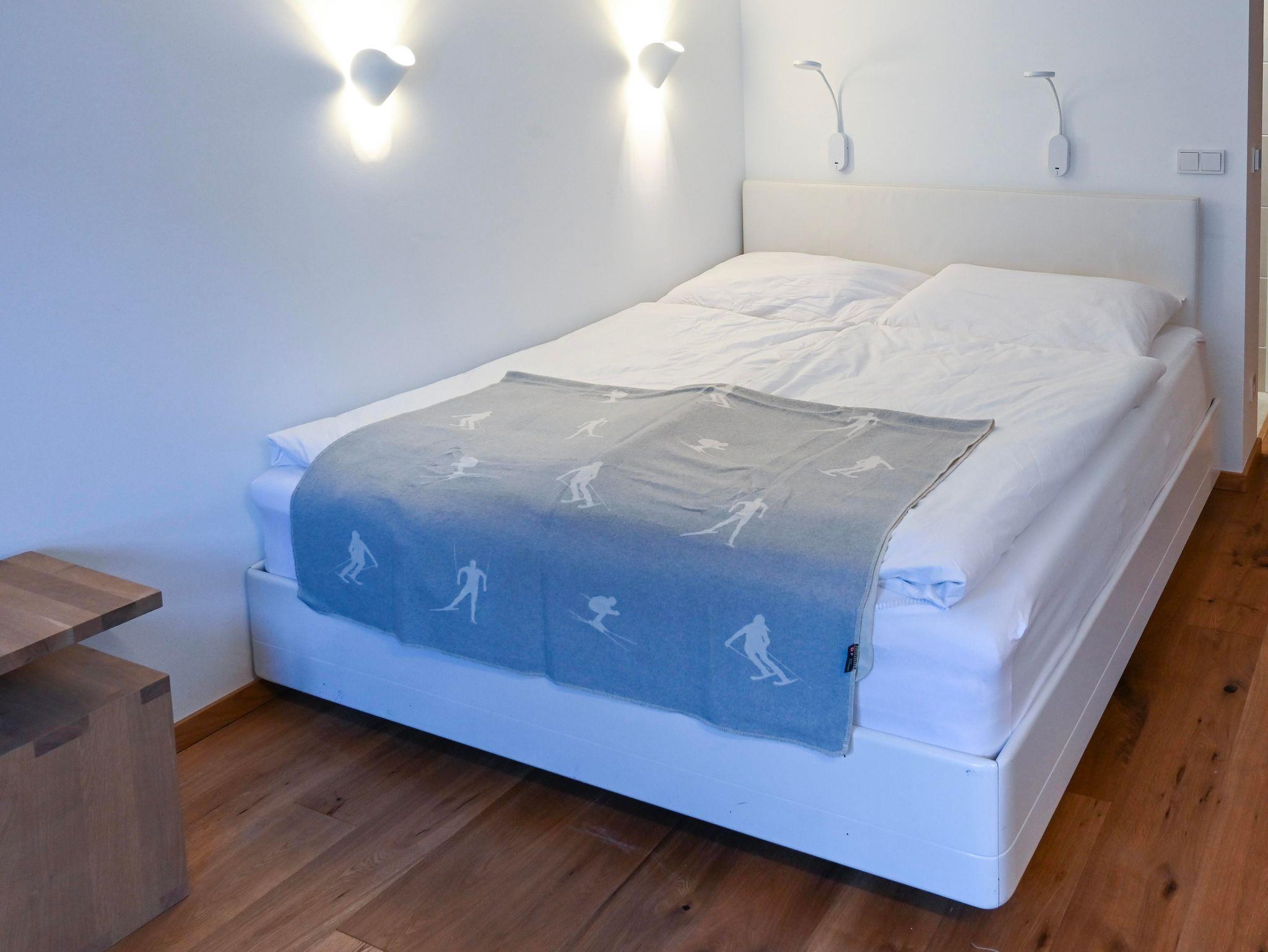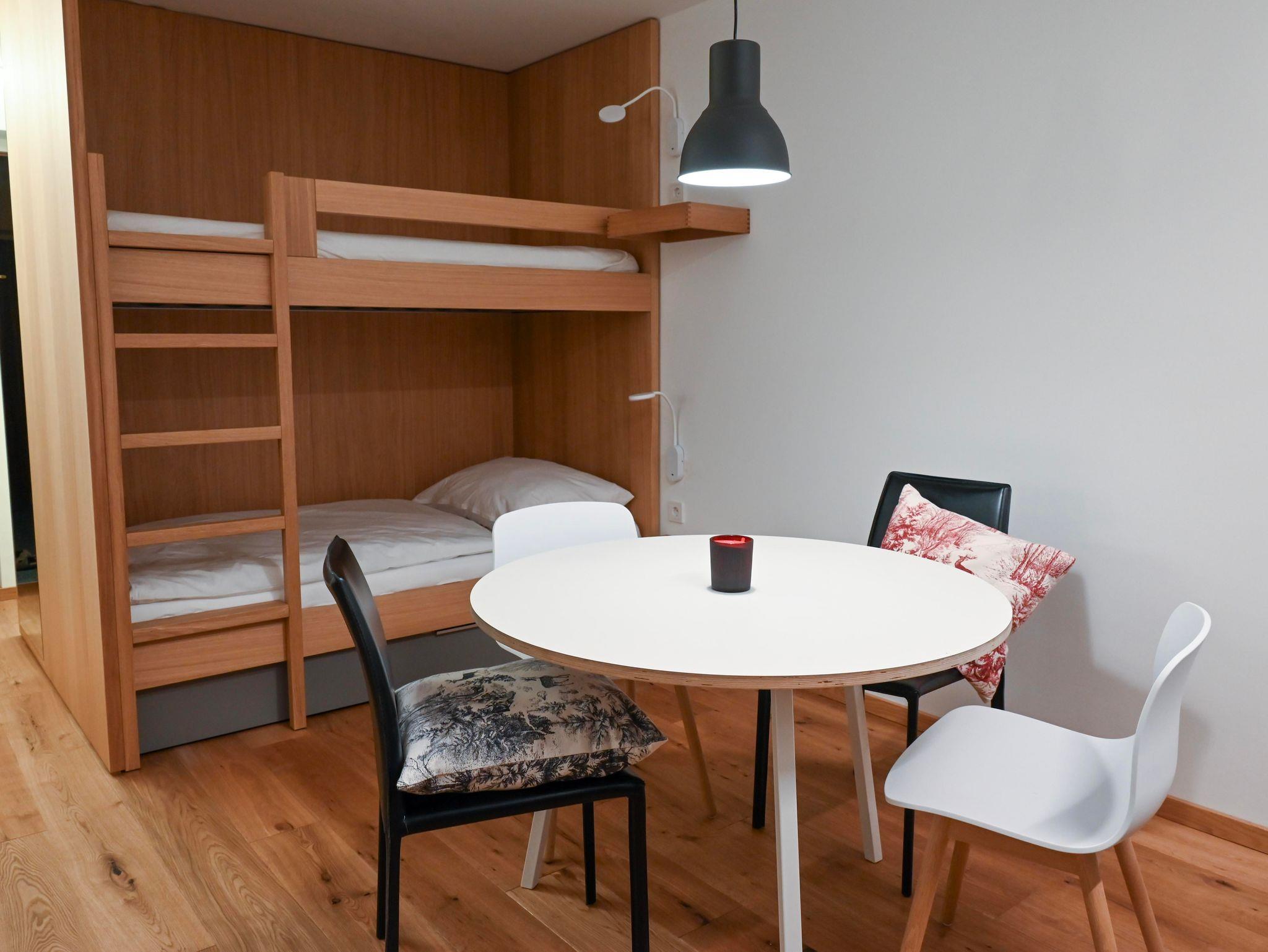 Das moderne Appartement mit Balkon ist 35 m² groß, verfügt über ein Doppelbett und zwei Einzelbetten und bietet Platz für bis zu 4 Personen. Genieße den tollen Blick auf die Berge. Der Skibus hält direkt vor der Tür, und in 5 Minuten erreichst du das Skigebiet Saalbach-Hinterglemm. Mit WLAN, Parkplatz (Ladesäule 500m entfernt), Skikeller mit Skischuh-Heizung und einem Kinderspielraum mit Tischtennis ist alles für deinen Urlaub vorbereitet.