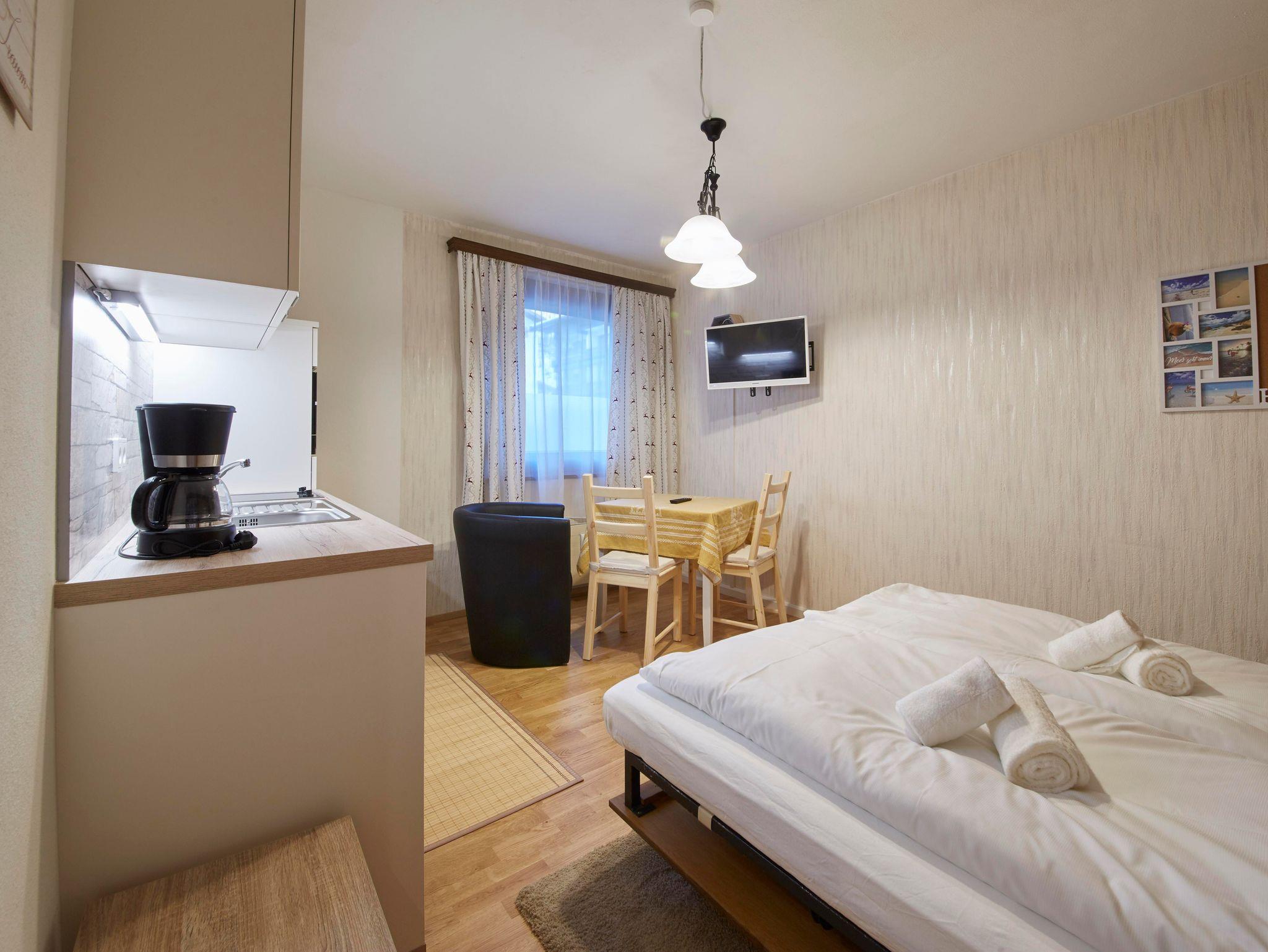 Unser Appartement Mamas Iglu stellt ein gemütliches, modernes 21m2 Studioappartement für zwei Personen in einem Wohnhaus in Saalbach in ruhiger und doch zentraler Lage dar. Die Wohnung verfügt über ein Badezimmer mit Dusche und Toilette sowie einen Wohnraum mit Küchenzeile und Doppelbett (Breite: 140 cm). WLAN sowie ein Parkplatz stehen allen Gästen kostenlos zur Verfügung.
