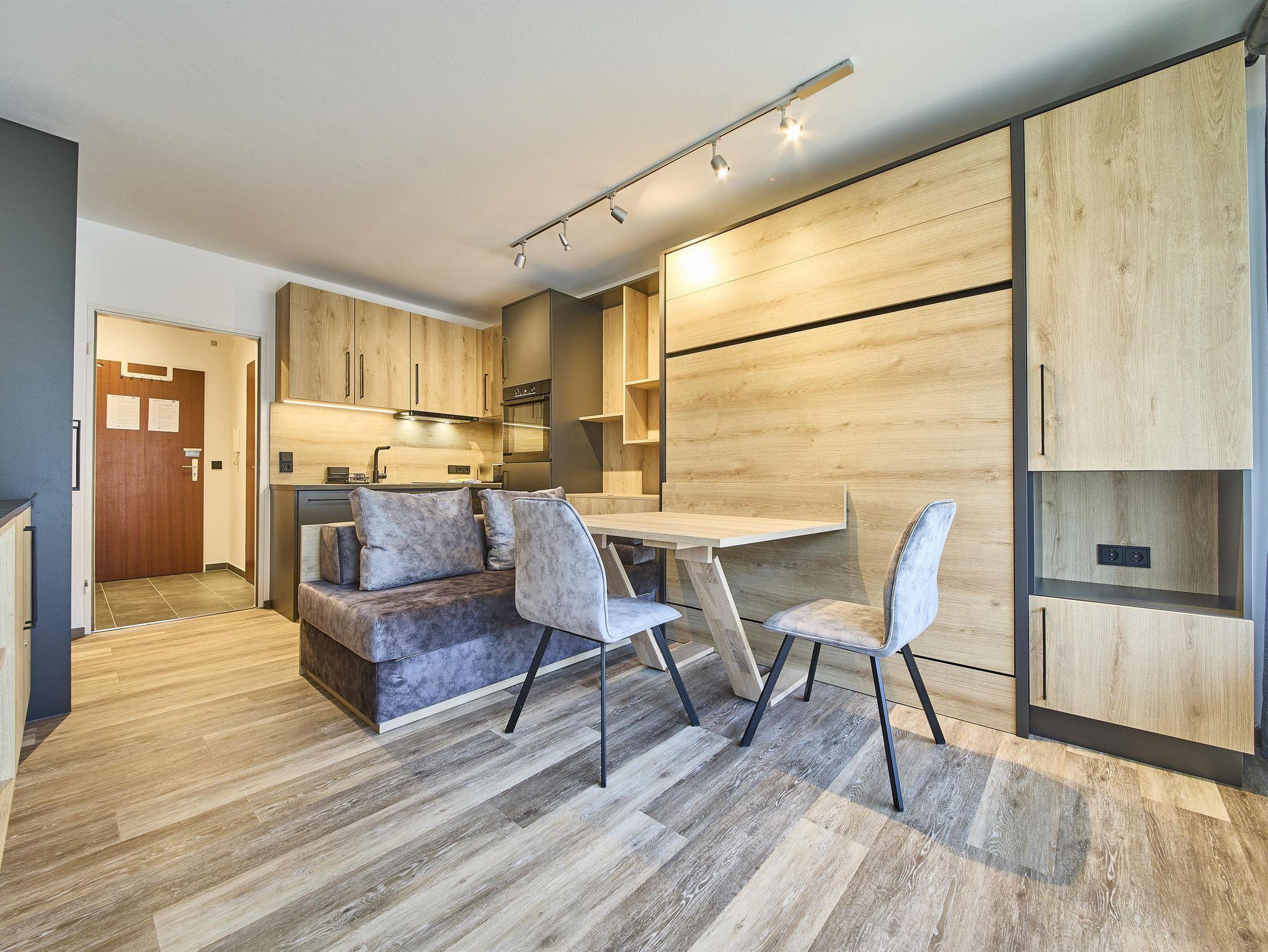 Gemütliches, modernes Studioappartement für zwei Personen in einem Wohnhaus in Saalbach in ruhiger und doch zentraler Lage. Die Wohnung bietet dir auf 30m² die optimale Unterkunft für deinen unvergesslichen Urlaub in einem der schönsten Wintergebiete des Landes und verfügt über ein Badezimmer mit Dusche und Toilette sowie einen Wohnraum mit Küchenzeile und Doppelbett sowie einen Balkon. Kostenloses WLAN, ein kostenfreier Parkplatz sowie ein Skiraum runden dieses hervorragende Gesamtpaket ideal ab und lassen dein Urlauberherz höher schlagen.