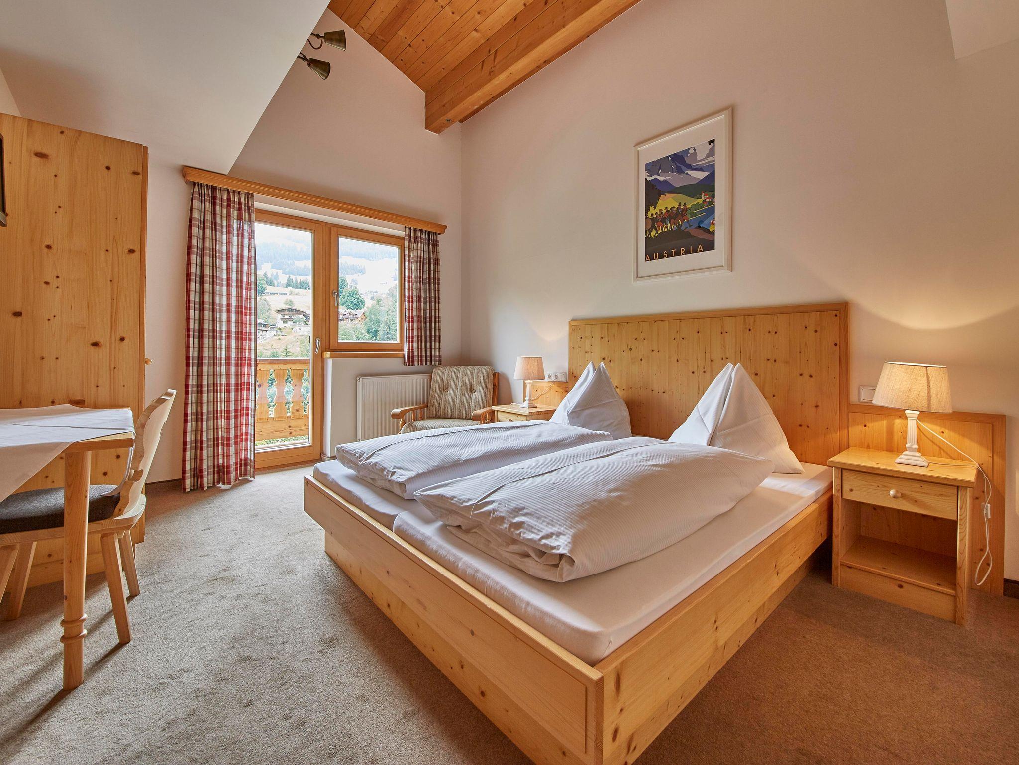 Unsere Frühstückspension offeriert insgesamt 10 Doppelzimmer, 2 Einzelzimmer, 1 Vierbettzimmer und 1 Dreibettzimmer. Alle Räumlichkeiten sind vollständig renoviert und mit Bad und WC ausgestattet. Die Balkone sind nach Süden oder Norden gerichtet und bieten einen herrlichen Ausblick auf Schattberg oder Bernkogel sowie die umliegenden Almwiesen. Durch ruhige Lage ist ein erholsamer Schlaf garantiert. Das komfortable Urlaubspaket wird durch die Holzsauna und kostenloses WLAN im jedem Raum abgerundet.