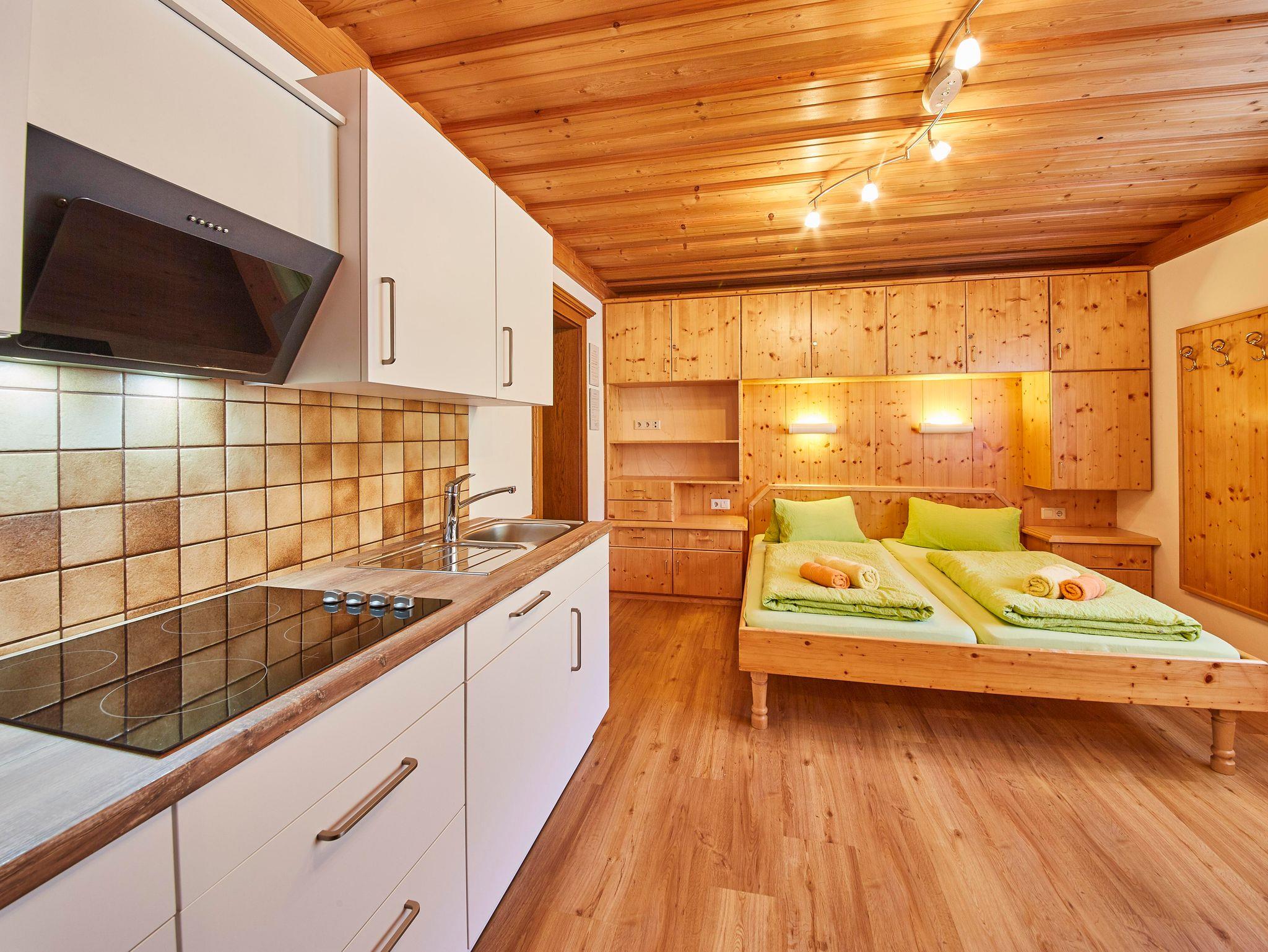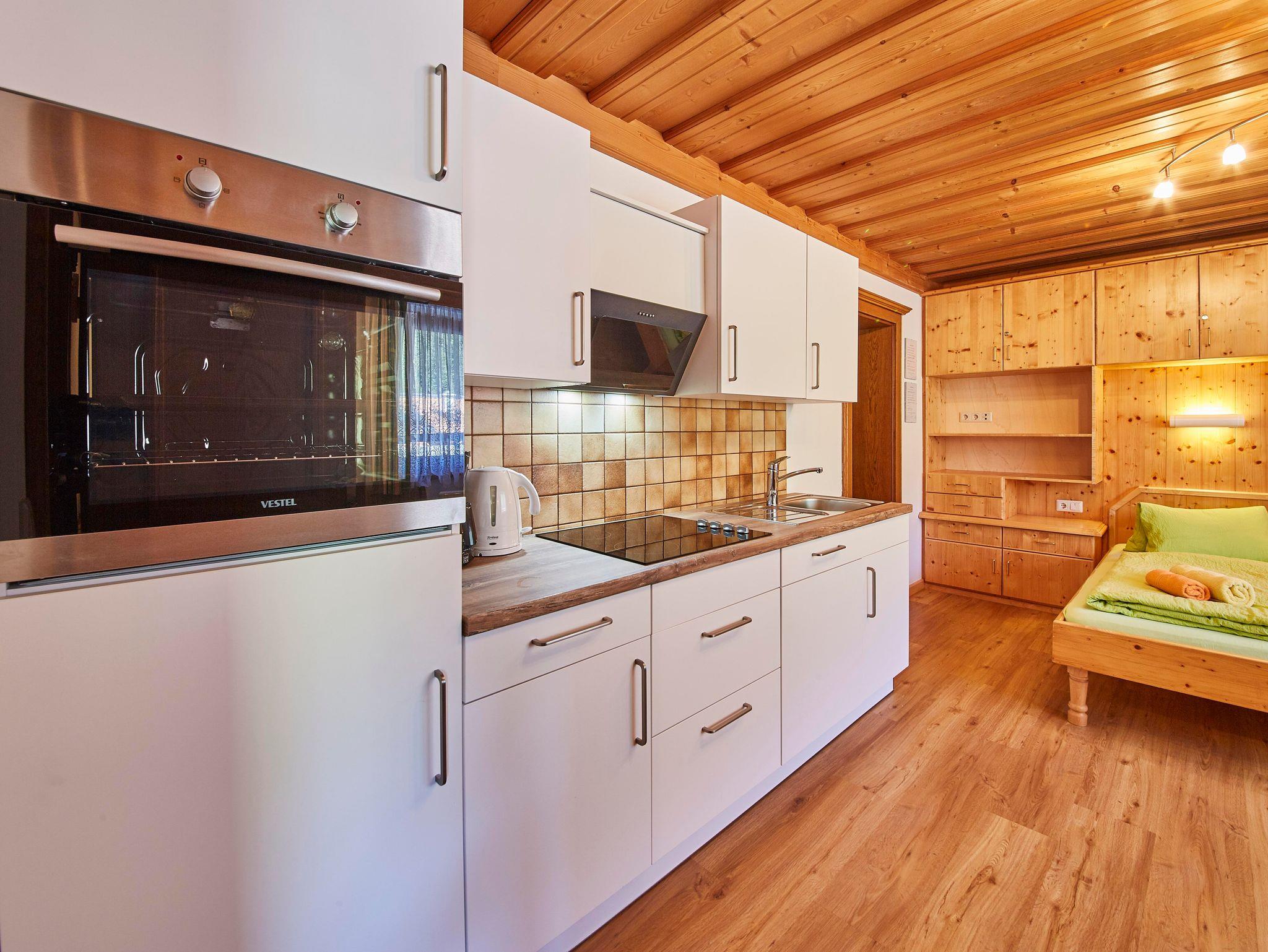 Unsere Appartements Taxach bieten 2 gemütliche Wohnungen im alpinen Stil für 2 sowie 3 Personen in etwas erhöhter Lage im Ortsteil Jausern (Saalbach). Das Top 1 stellt auf 25 m² ein gemütliches Studio-Appartement für 2 Personen dar & bietet einen Wohn-Schlafbereich mit Doppelbett, offener Küche & Essbereich sowie ein Badezimmer mit Badewanne & separater Toilette. WLAN, ein kostenloser Parkplatz direkt vor dem Haus sowie ein Skiraum komplettieren das Urlaubsangebot.
