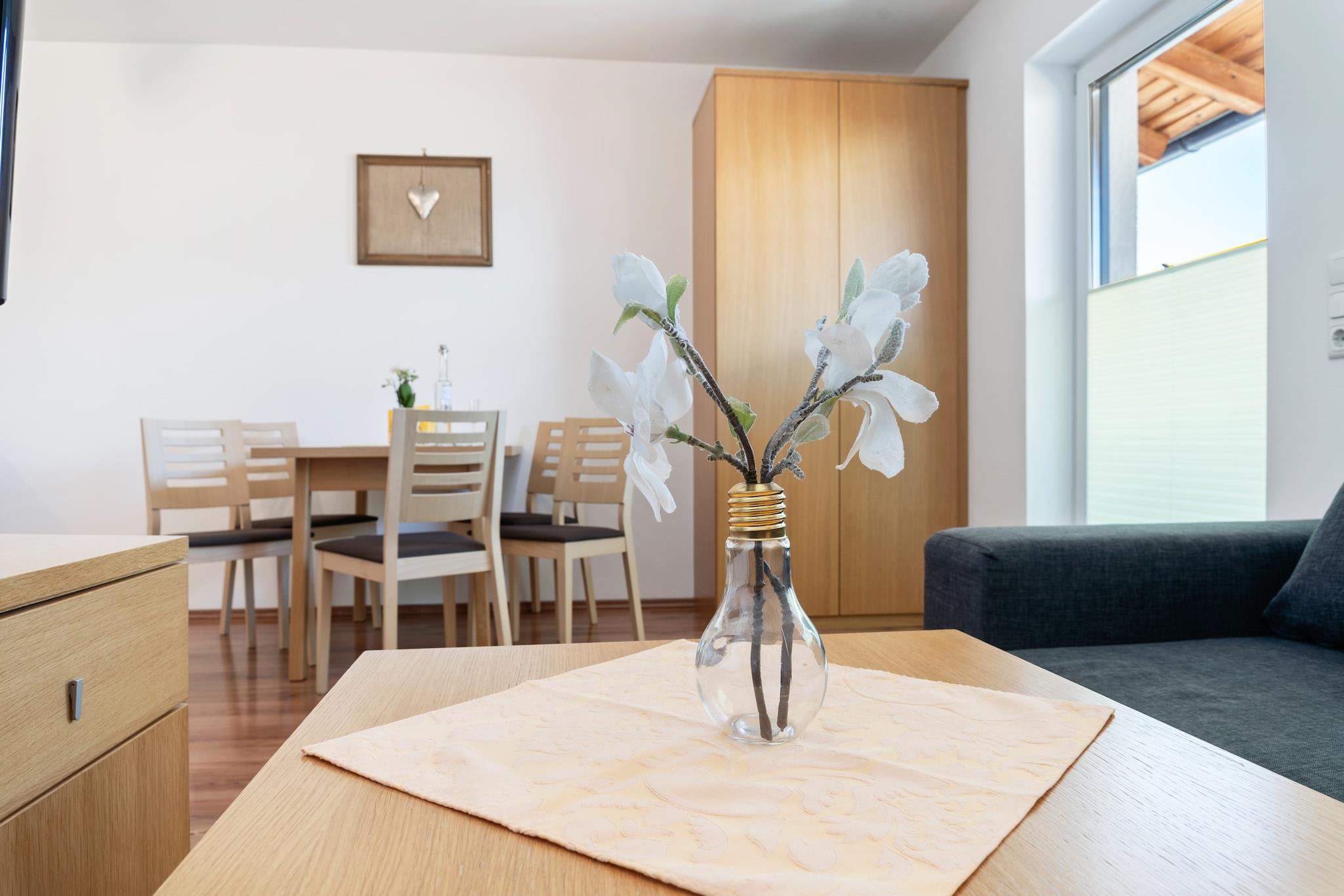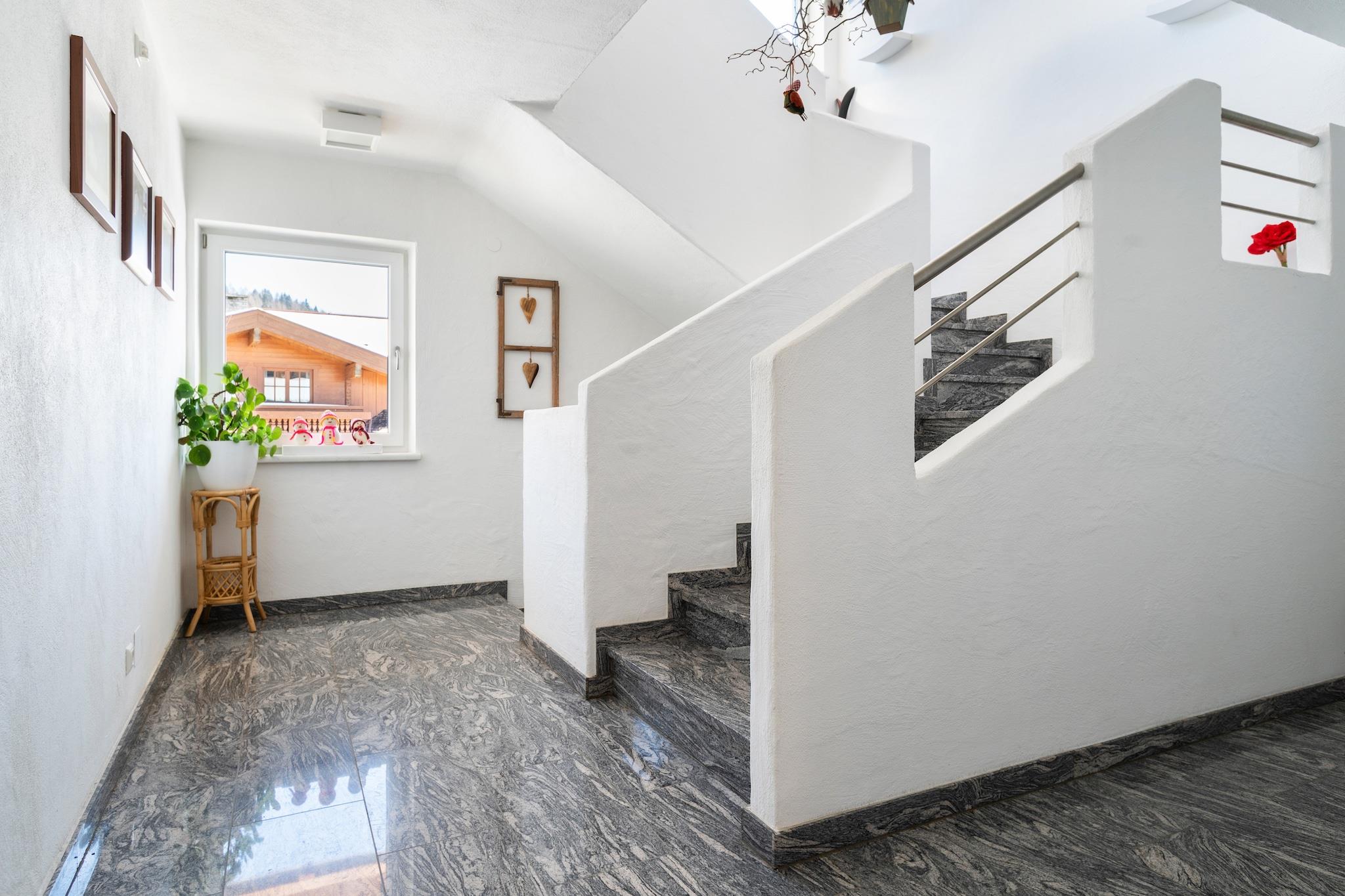 Ferielejligheden ligger i Saalfelden og er designet til at være moderne og indbydende på samme tid, så du føler dig hjemme fra første øjeblik. Altanen med sin vidunderlige udsigt indbyder til at hilse på dagen med en kop kaffe eller afslutte aftenen med et glas vin, mens naturen viser sig fra sin bedste side. Saalfelden am Steinernen Meer er et ideelt udgangspunkt for adskillige aktiviteter, uanset hvornår på året. Om vinteren ligger det nærliggende skiområde Saalbach-Hinterglemm-Leogang-Fieberbrunn kun få minutter væk. Med over 270 kilometer pister er det et af de bedste skiområder i Østrig og byder på perfekte forhold for skiløbere og snowboardere. Men der er også meget at opdage væk fra pisterne: Langrendsløjper, vintervandrestier og kælkebakker giver variation, mens sneskovandringer giver dig mulighed for at opleve den snedækkede bjergverden fra et helt nyt perspektiv. Om sommeren forvandles regionen til et paradis for naturelskere og aktive feriegæster. Vandrere og klatrere vil finde et væld af ture gennem det imponerende landskab i Steinernes Meer, mens mountainbikere vil få noget for pengene på stierne i Leogang Bike Park. Stille timer kan tilbringes på den nærliggende Ritzensee, som giver en forfriskning på varme dage. Golfspillere kan også glæde sig: Urslautal-golfbanen ligger kun få minutter væk og byder på en fantastisk udsigt, mens de spiller.