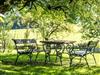 • Terrasse und Grünfläche vorm Haus mit gemütlichen Sitzgelegenheiten