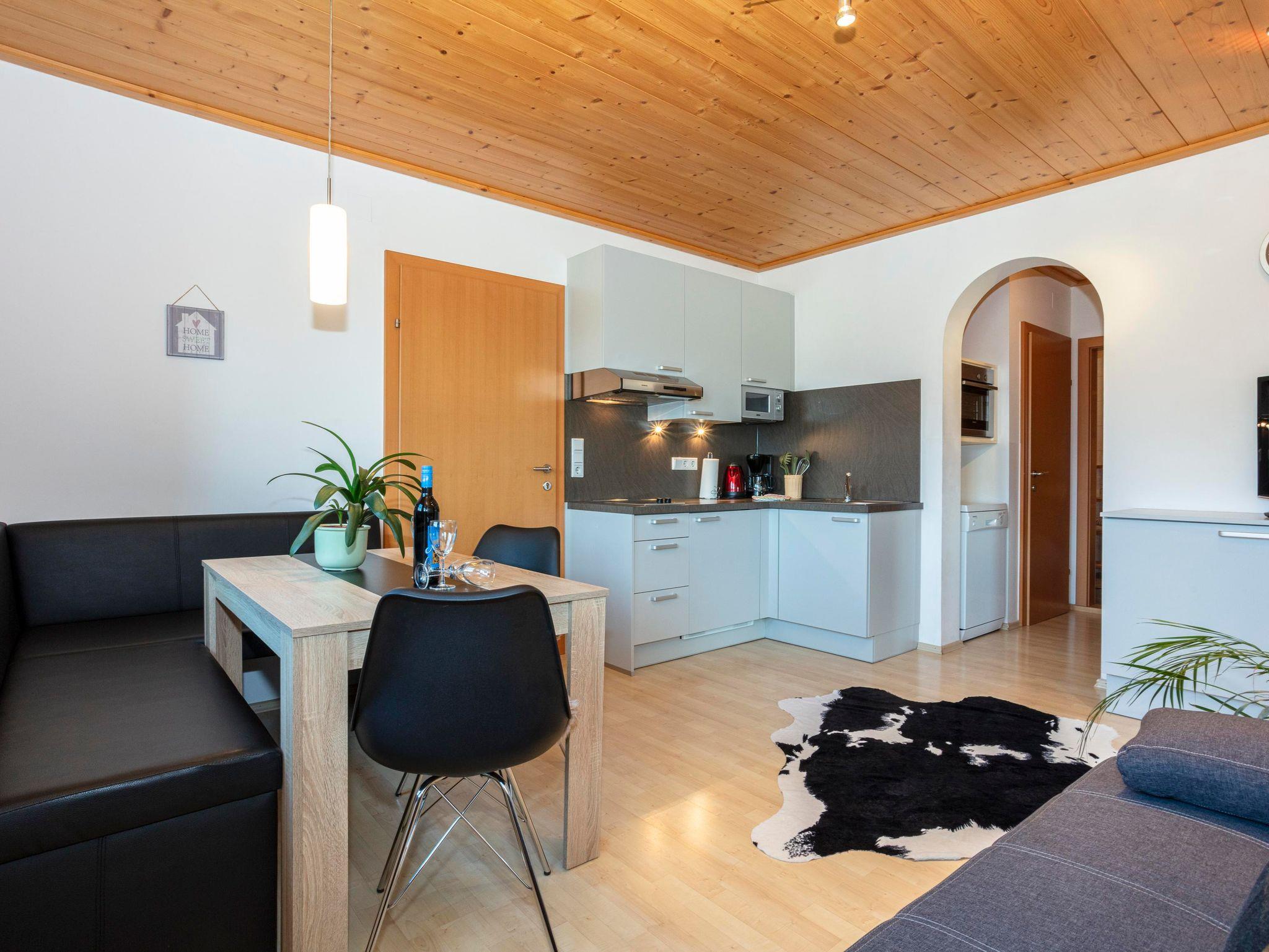 Komfortables Appartement Das Appartement Edelweiß verfügt über zwei getrennte Schlafzimmer, eine gut ausgestattete Küche mit Essecke und gemütlichem Sofa, ein Badezimmer und ein WC.