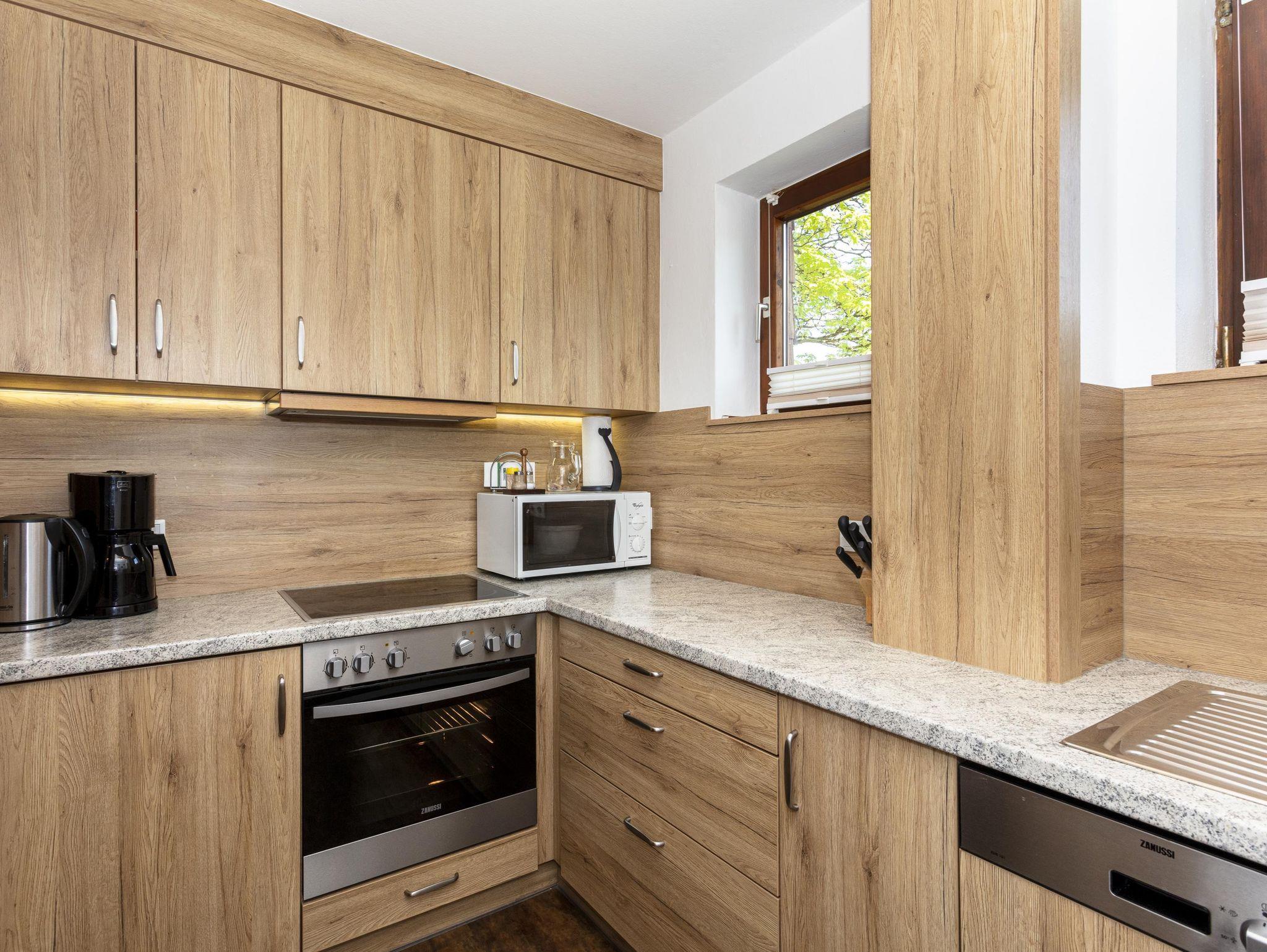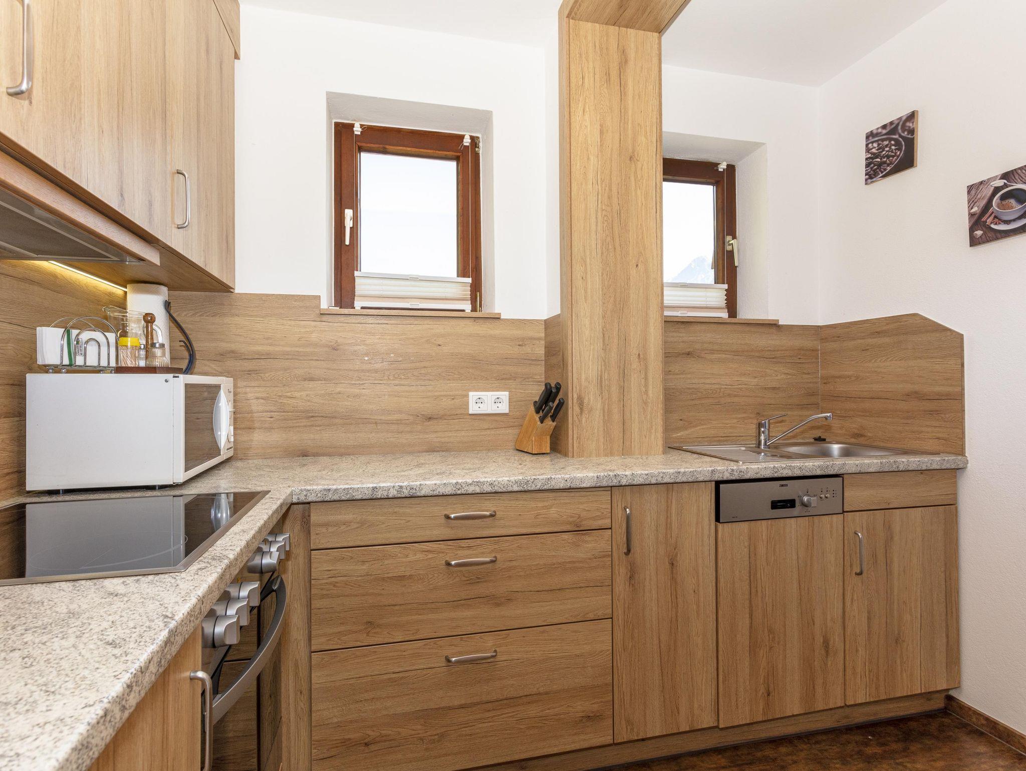 2 - 5 Personen (60 m2): 1 Dreibettzimmer mit Balkon und Dusche/WC, 1 Doppelzimmer mit Dusche/WC, Balkon, Radio und Kabel-TV, 1 großes Wohnzimmer mit Balkon, Kabel-TV, Radio, Couch, großem (ausziehbarem) Tisch mit Eckbank und großer Balkon. Wohnküche vollausgestattet mit Ceranfeld und Backofen, Kühlschrank, Mikrowelle, Kaffeemaschine, Wasserkocher, Geschirrspülmaschine im 1. Stock unseres Hauses.