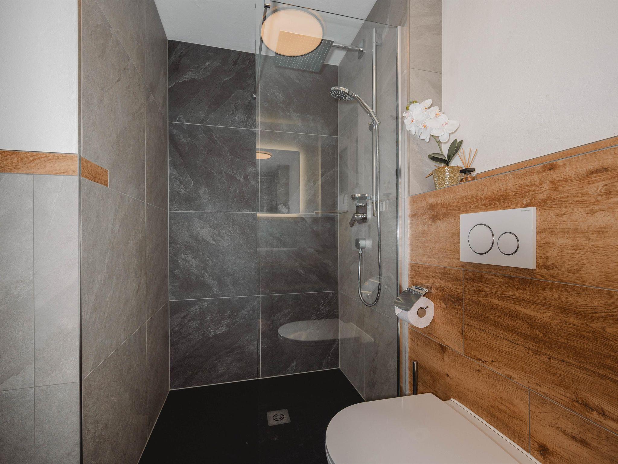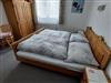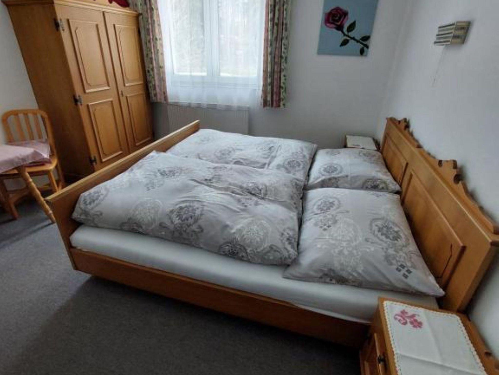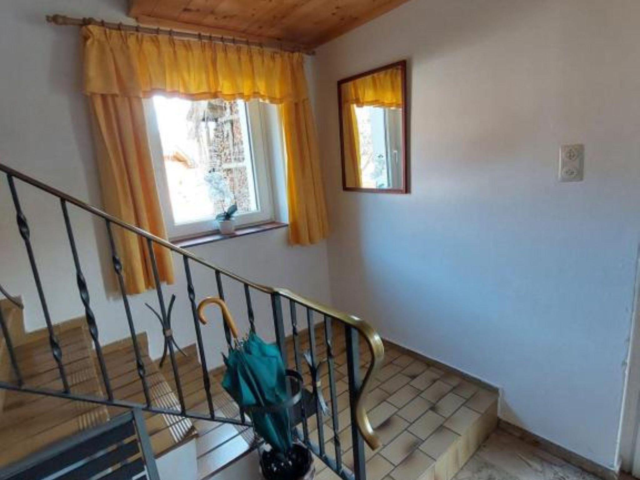Das Ferienhaus ist gemütlich eingerichtet, insbesondere die Schlafzimmer mit ihren dekorativen Holzelementen fallen auf. Im Erdgeschoss befindet sich ein freundlicher Aufenthaltsraum, im ersten Stock sind die Küche und die Schlafzimmer. Angrenzend an den gepflegten Garten befindet sich eine überdachte Terrasse mit Tischen und Bänken. Hier kannst du die Natur bei entspannten Grillabenden inmitten einer einzigartigen Landschaft genießen und den atemberaubenden Blick bis zu den schneebedeckten Bergen erleben.