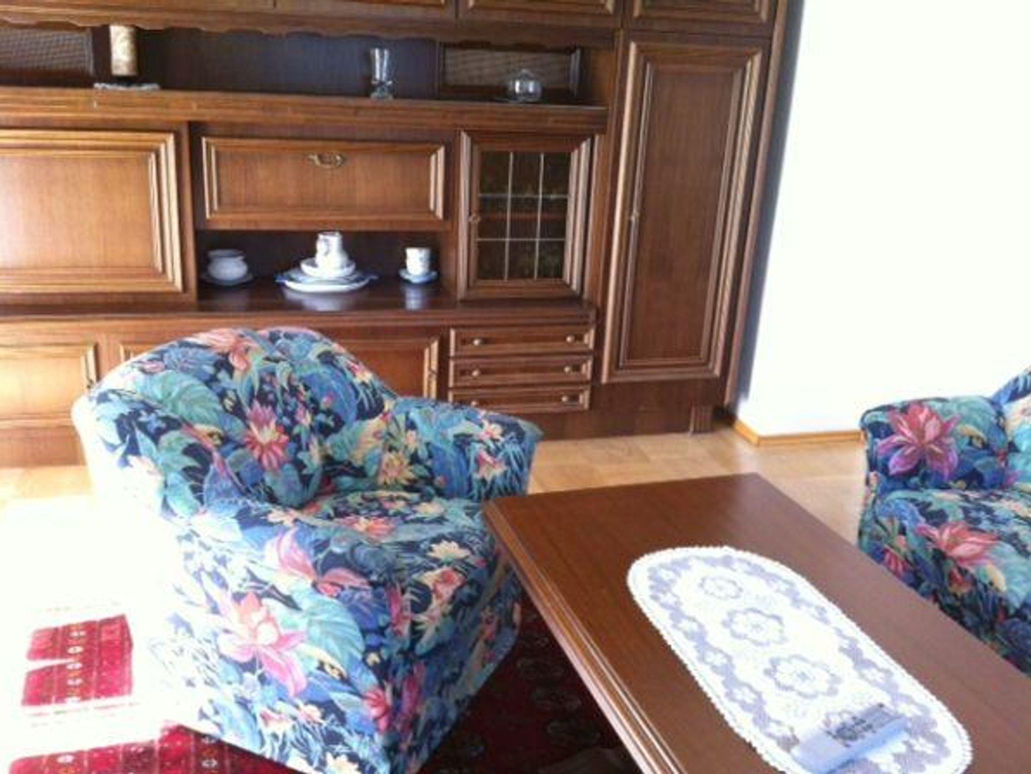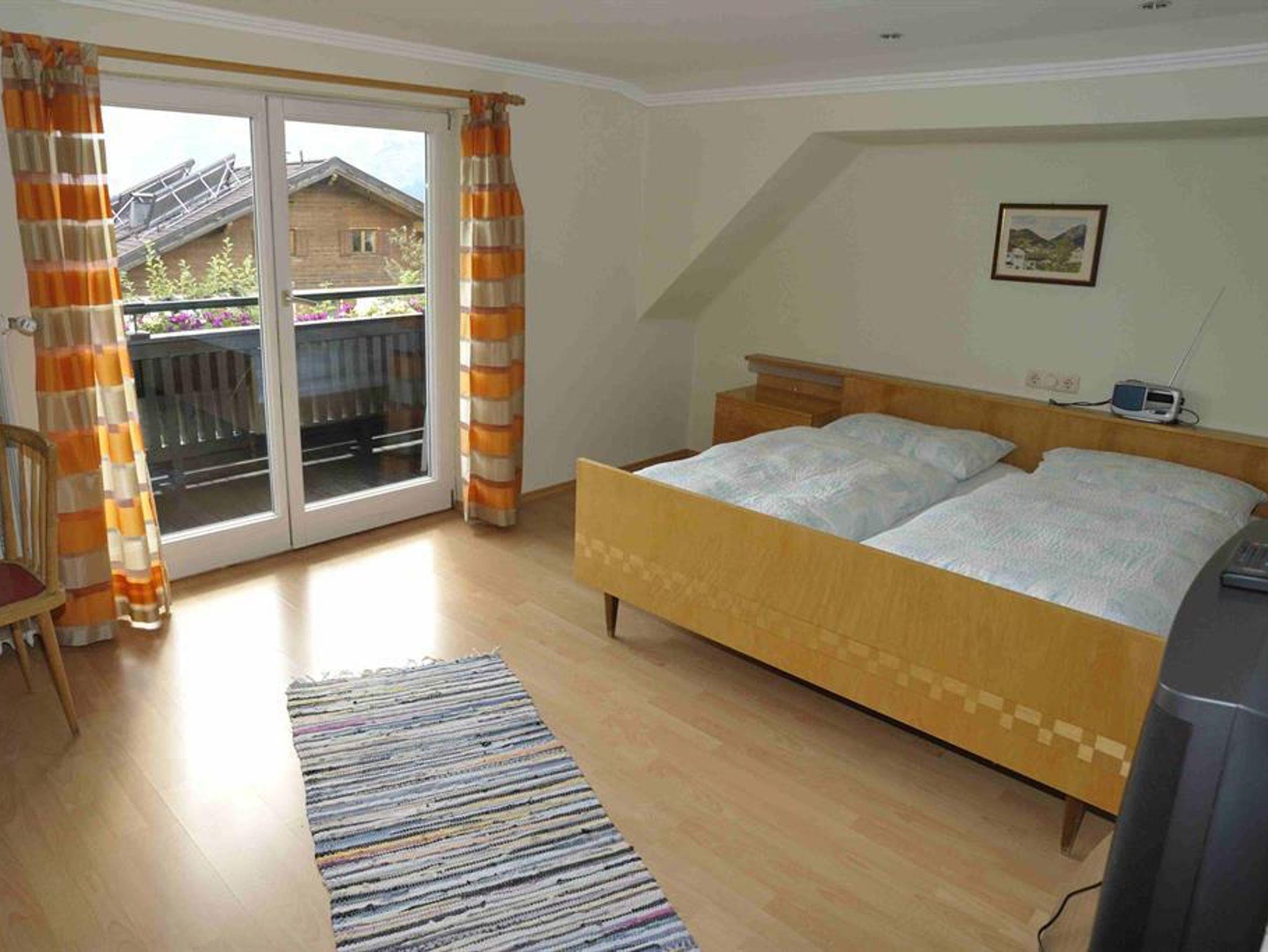 Sie bewohnen eine schöne und gut ausgestattete Ferienwohnung im 1. Stock. Der große Balkon bietet eine wunderschöne Aussicht auf die umliegenden Berge.Im 1. Stock: Wohnküche (Herd, Backofen, Geschirrspüler, Essecke), separates Schlafzimmer (Doppelbett, Schrank, Kinderbett auf Anfrage), Wohnzimmer (ausziehbares Doppelsofa, TV), Badezimmer mit WC, Balkon. Im 2. Stock: Dreibettzimmer mit Balkon - 1 Doppelbett und ein kleiners Einzelbett für Jugendliche/Kinder -, WC mit kleinem Waschbecken. Gratis WLAN.