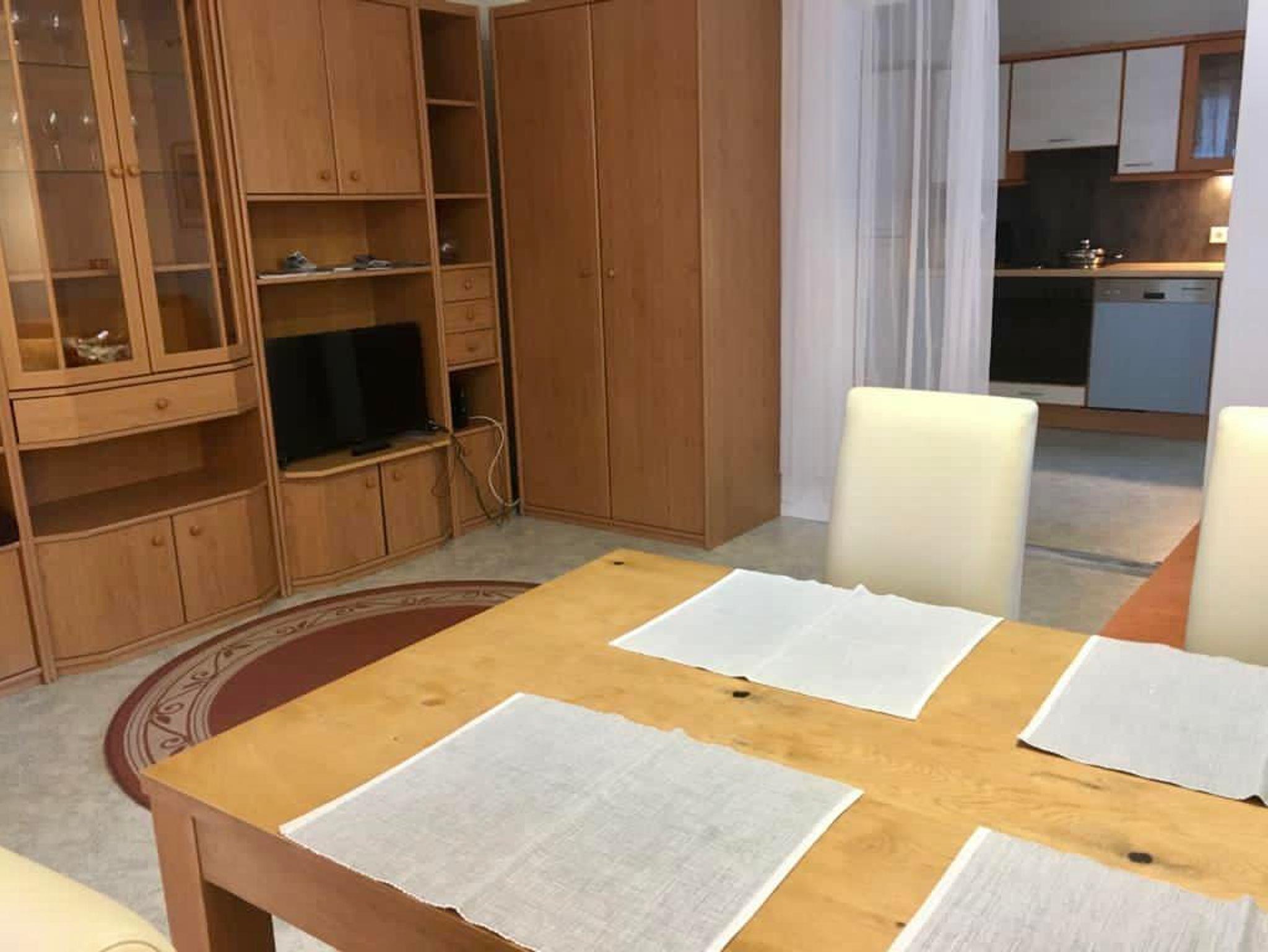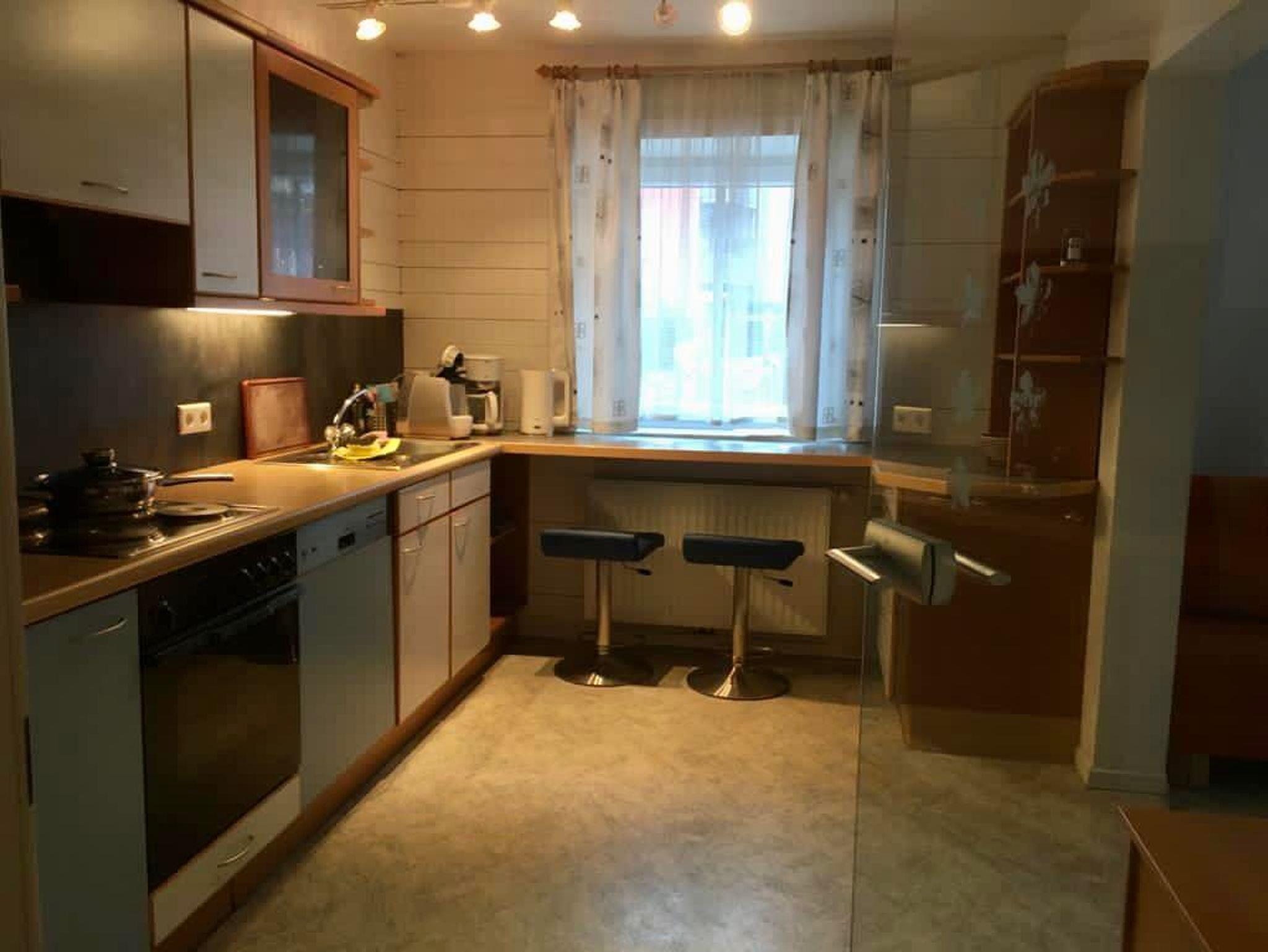 Ferienwohnung bestehend aus: Vorraum, Küche mit kleiner Essbar, Wohnschlafzimmer ( ausziehbare Jokasofas ), Schlafzimmer, WC, Bad mit Wanne, pass. Geschirr, 2 Cafemaschinen, Spüler, Wasserkocher, Kabel TV, Wlan, komplette Bett- Badwäsche, etc