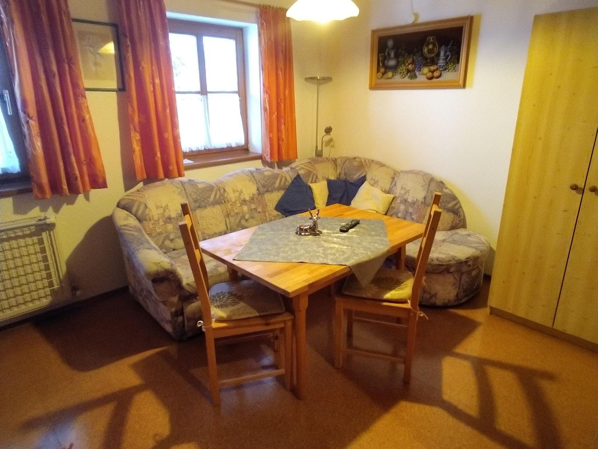 Ruhige Ferienwohnung mit 2 Schlafräumen, davon 1 über Galerie. Wohnküche mit Sitzgruppe und Küchenzeile. Absolut ruhige Lage mit Aussicht zum Steinernen Meer. Liegewiese und Grillplatz. Carport auf Anfrage.