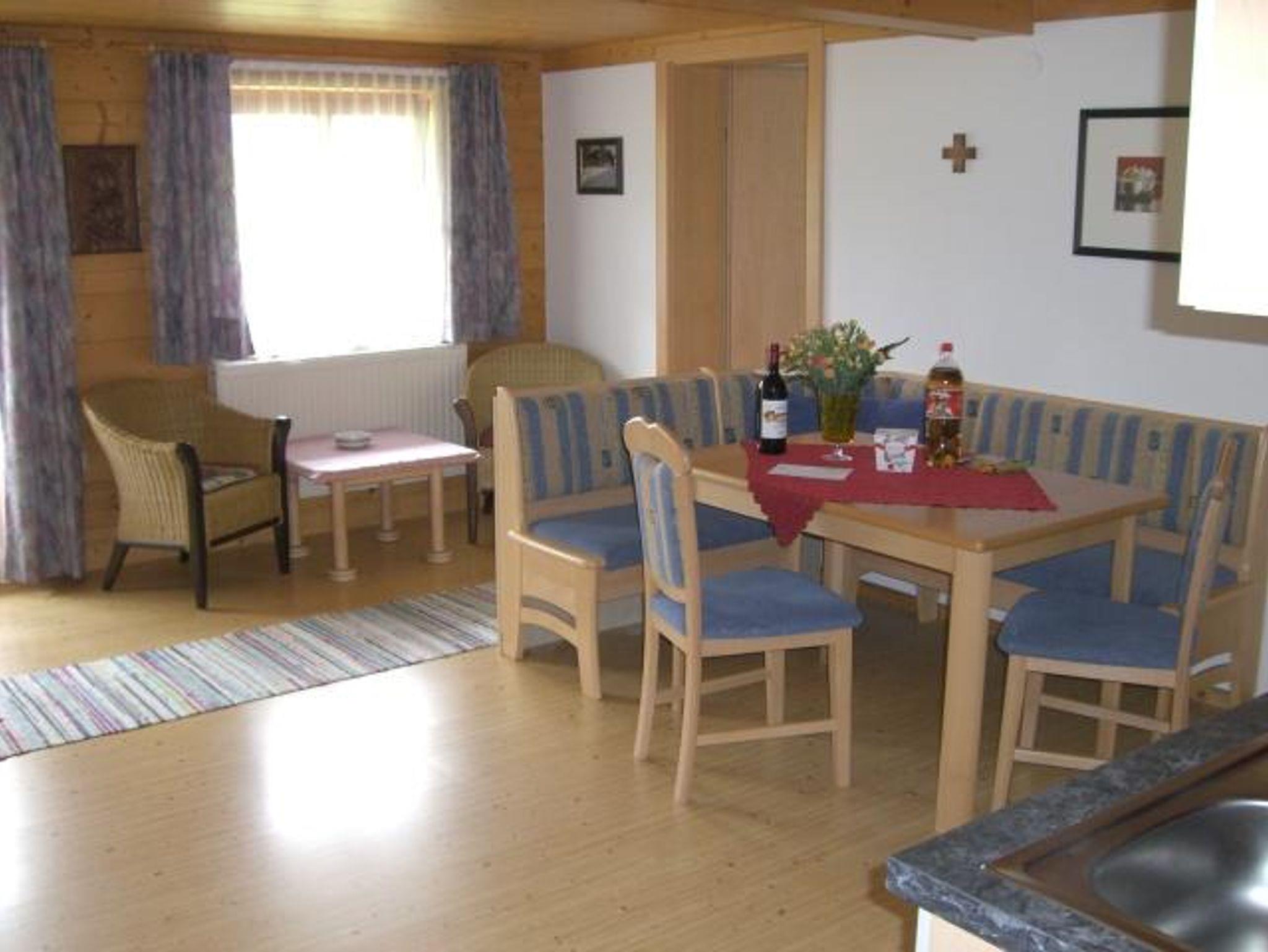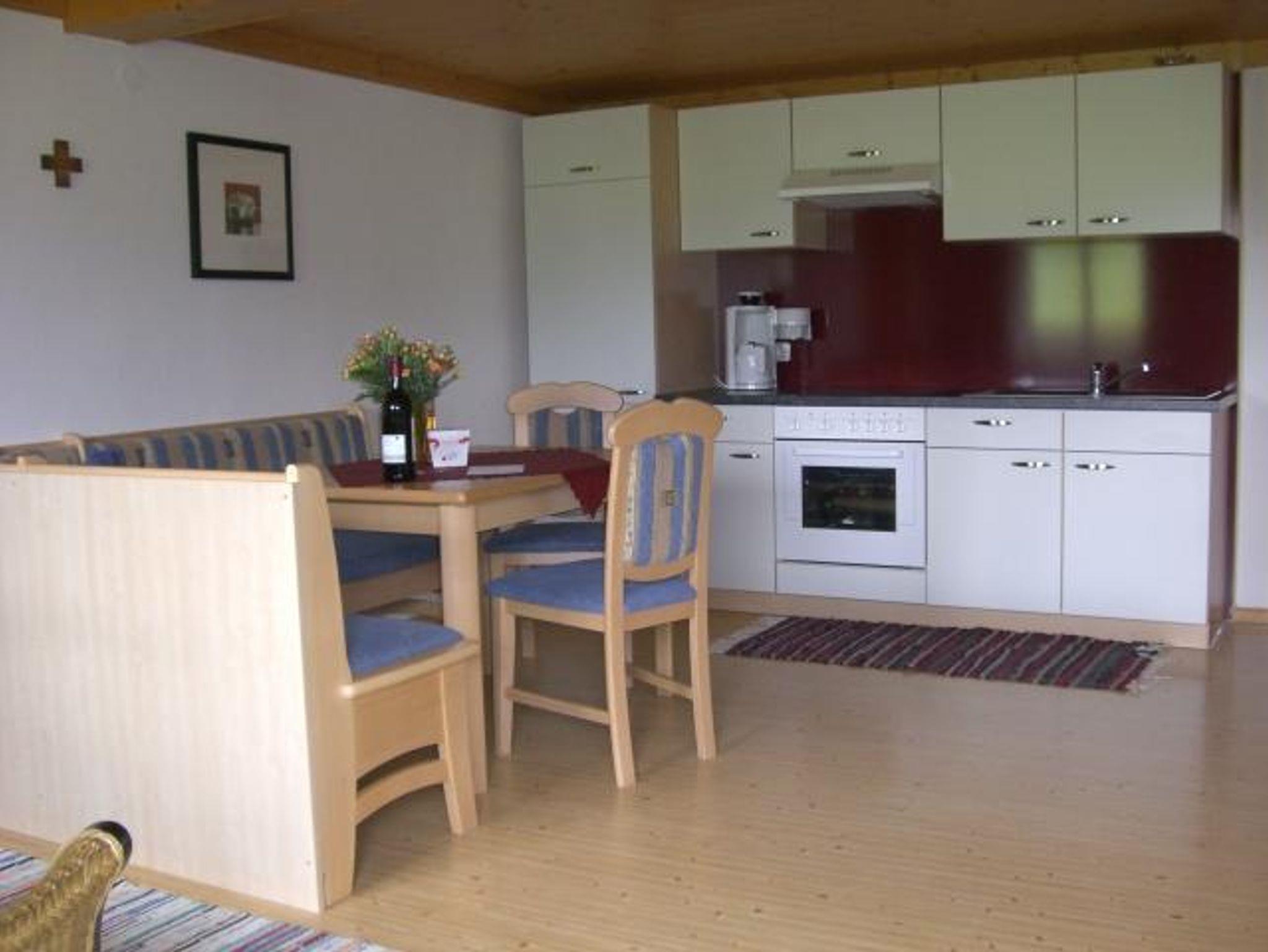 Ferienwohnung mit großer Wohnküche und 2 getrennten Schlafzimmern. Balkon südseitig. Herrliche Aussicht zu den Hohen Tauern mit Kitzsteinhorn,