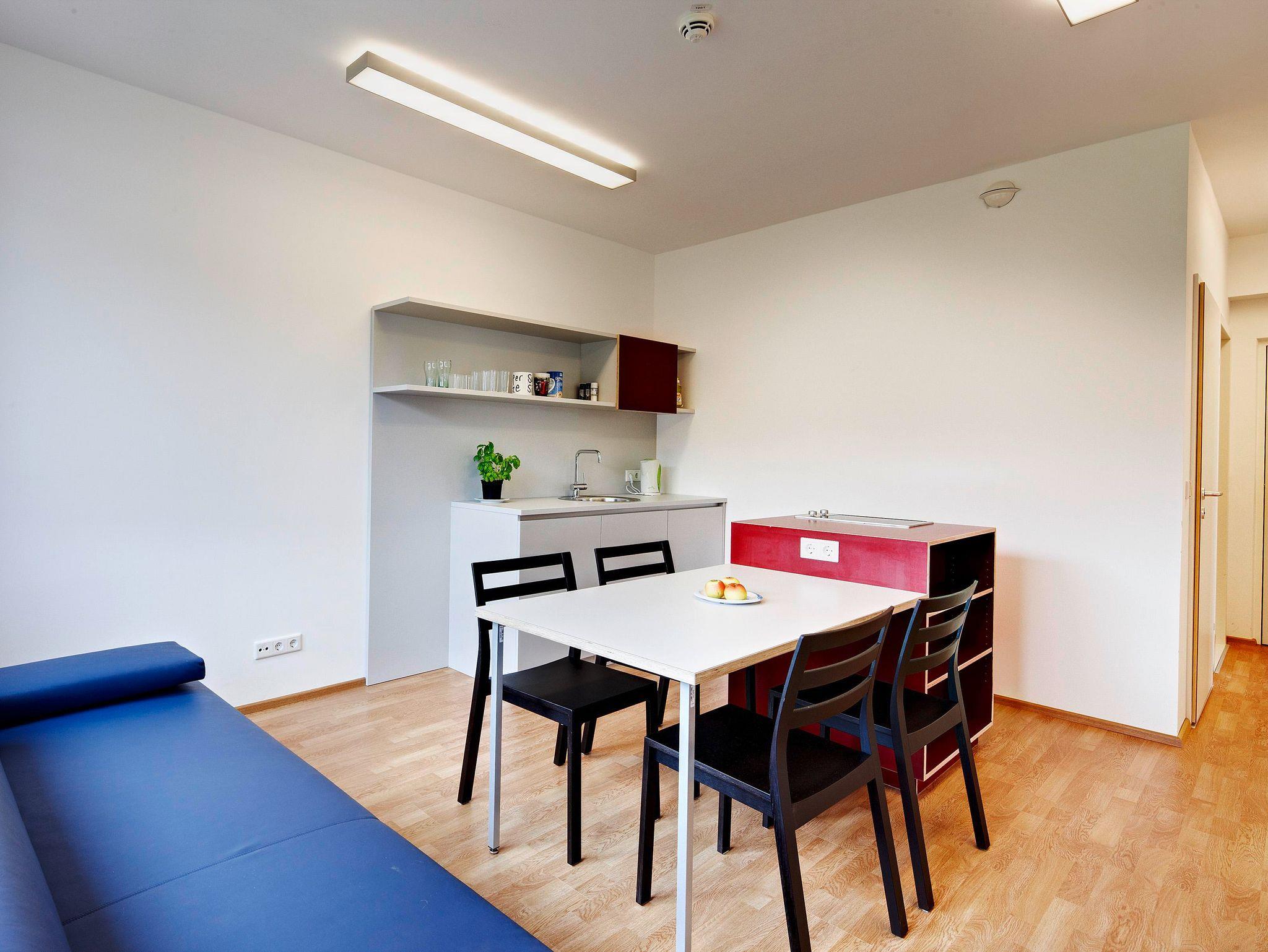 Die 6 Appartements für 2-4 Personen bestehen aus 3 Schlafzimmern (Einzelzimmer), einem Wohnzimmer (mit ausziehbarer Couch), sowie einer Küche und einem Badezimmer mit Dusche und WC.