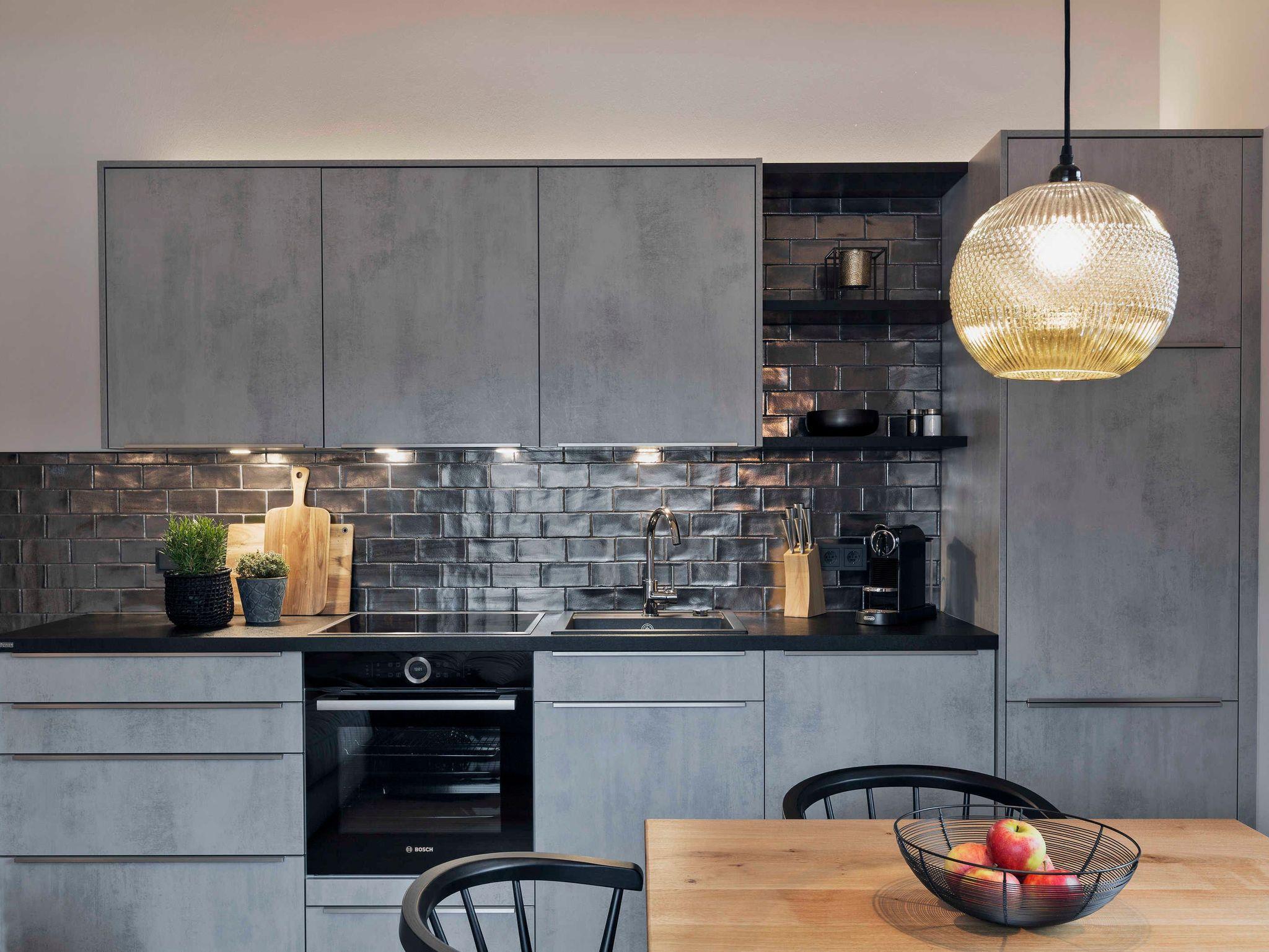 • Gemütliche Wohnküche mit Ecksofa und angenehmem Eiche-Holzboden