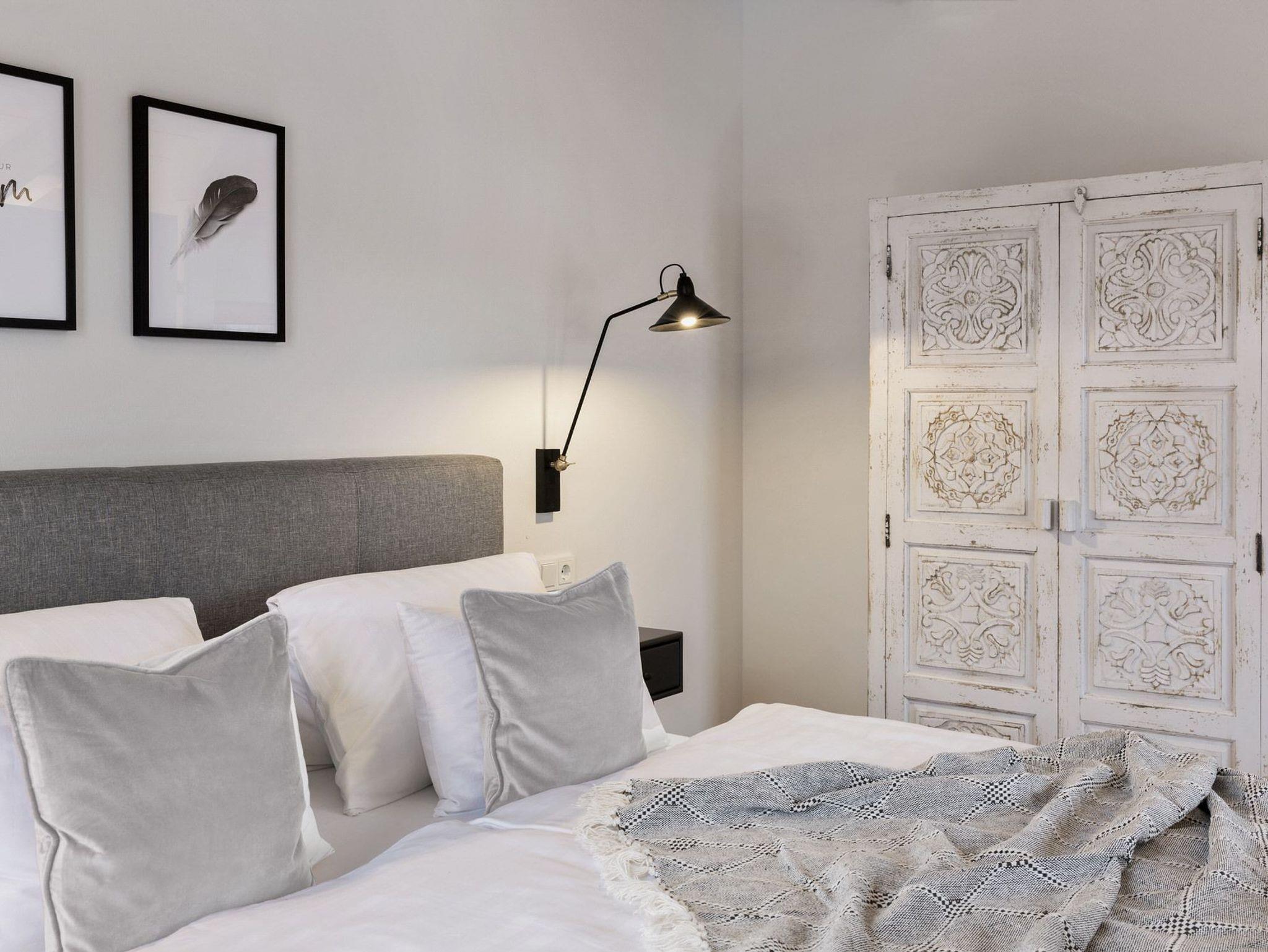 • Ein Doppelzimmer mit Boxspringbett (180/200 cm)