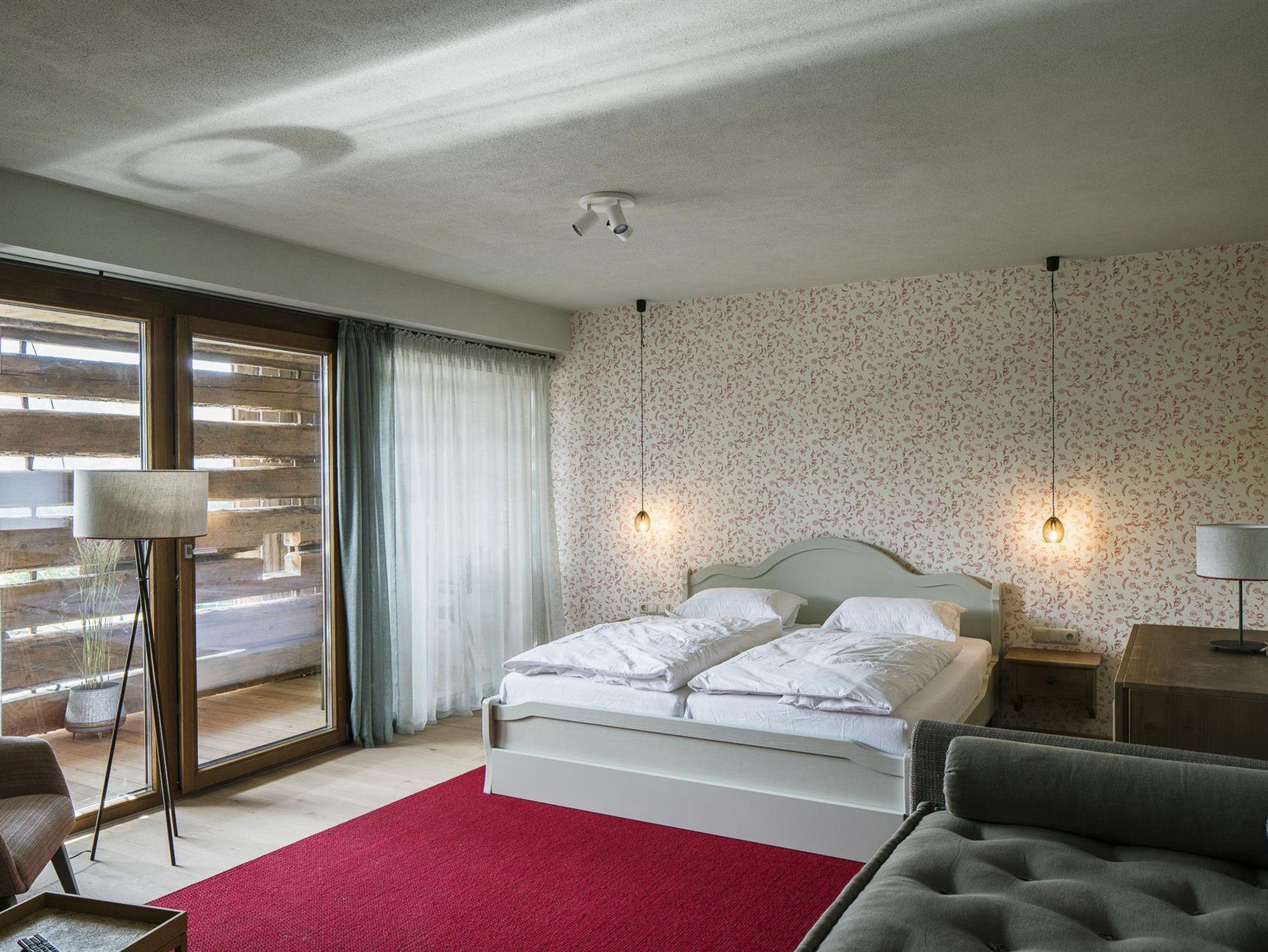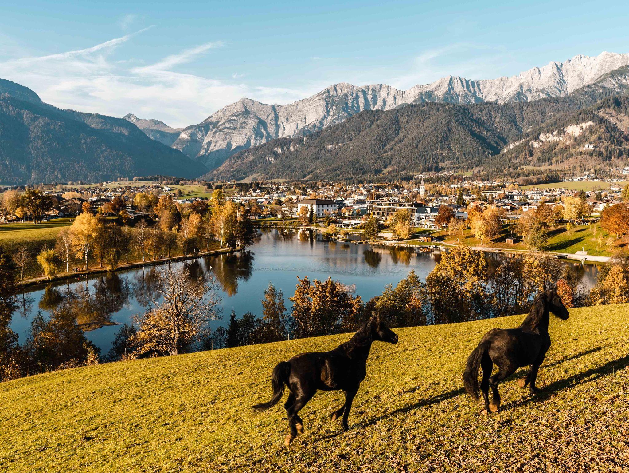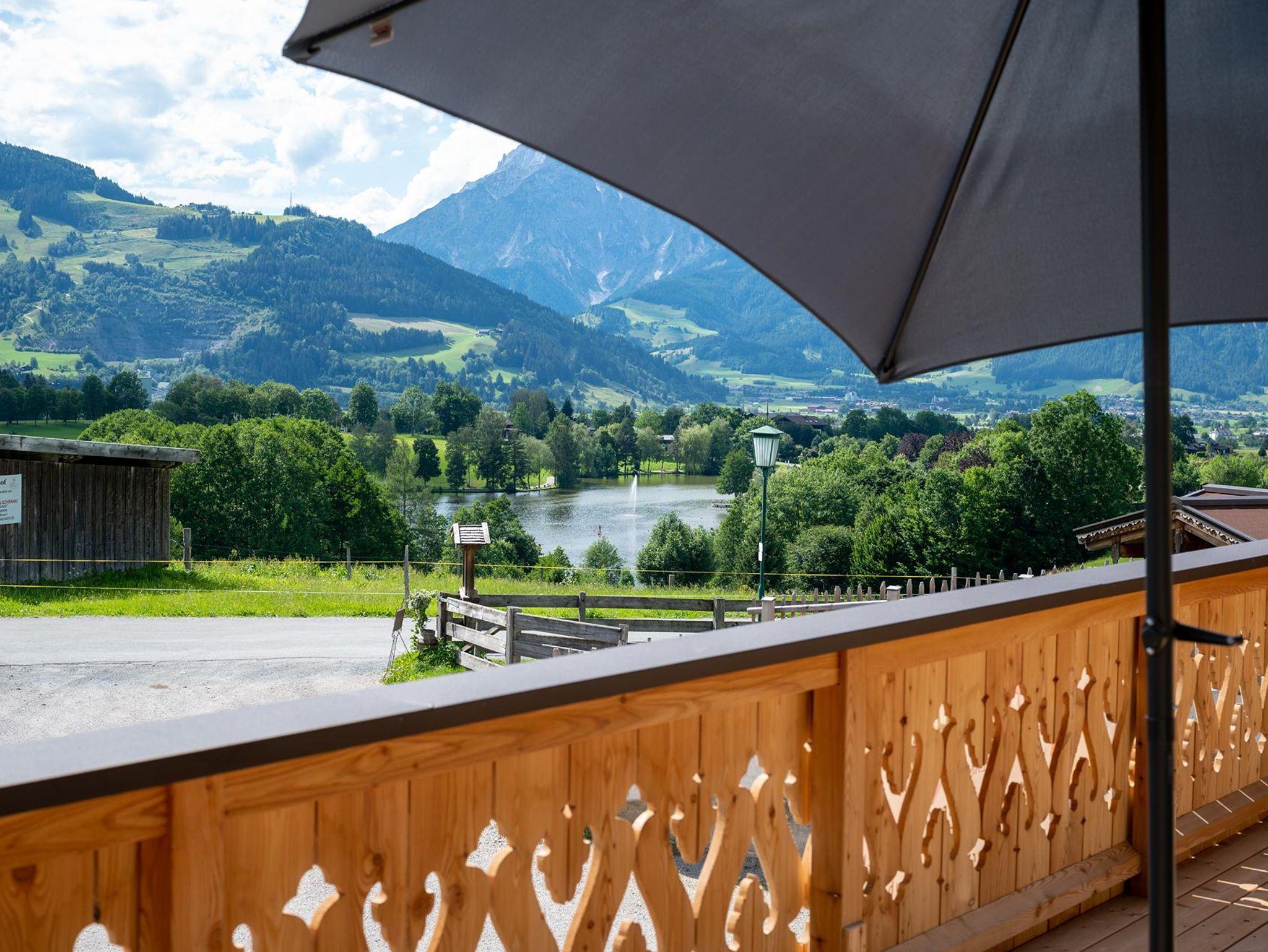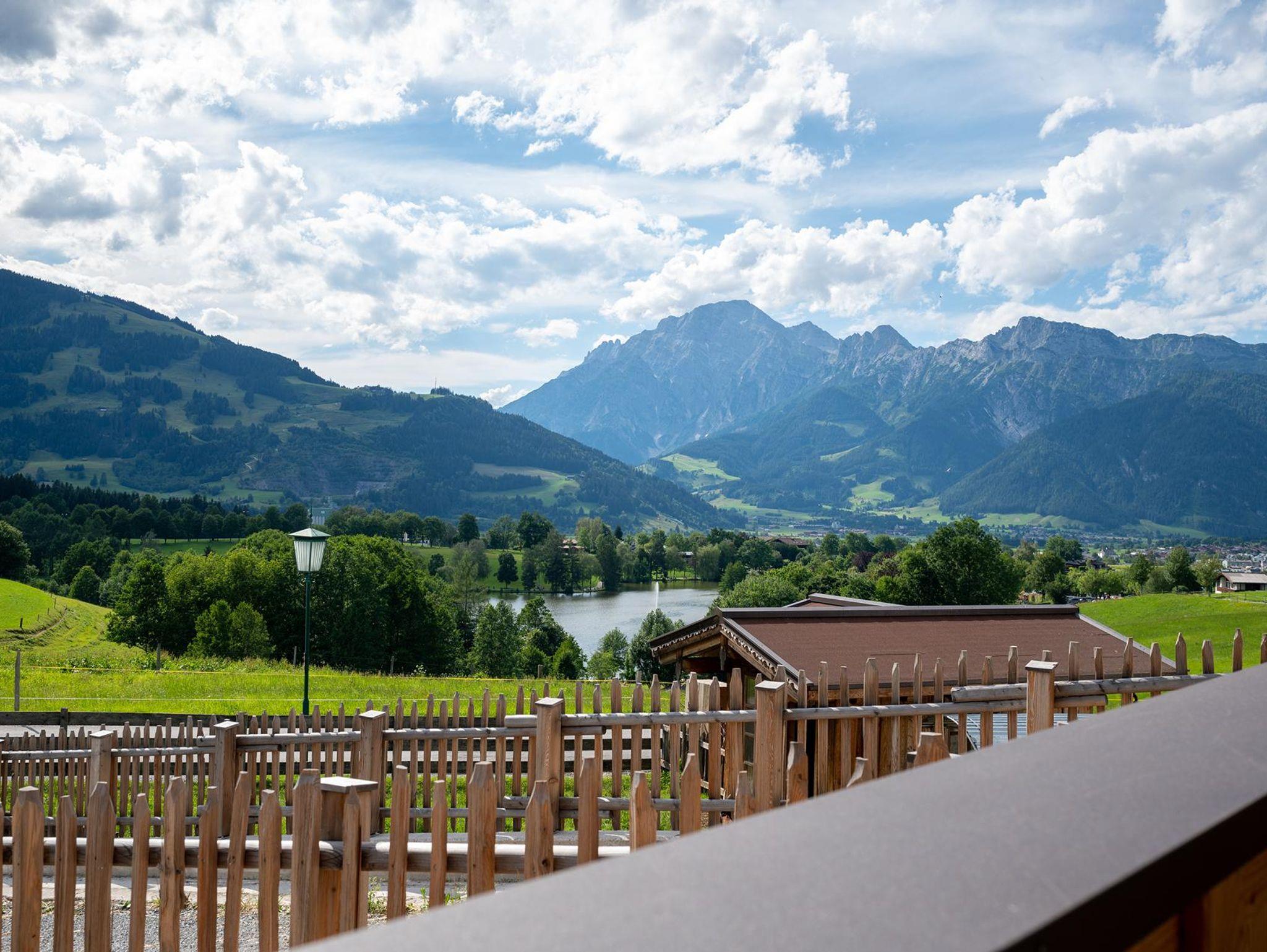 Er befindet sich auf einem der schönsten Plätze in Saalfelden: auf einem kleinen Plateau nur ein paar Gehminuten vom Stadtzentrum entfernt. Zu Füßen des Hofes liegen Wiesen und der Ritzensee. Der Ausblick auf die Gebirgszüge der Leoganger und Loferer Steinberge und das Steinerne Meer ist einfach atemberaubend!