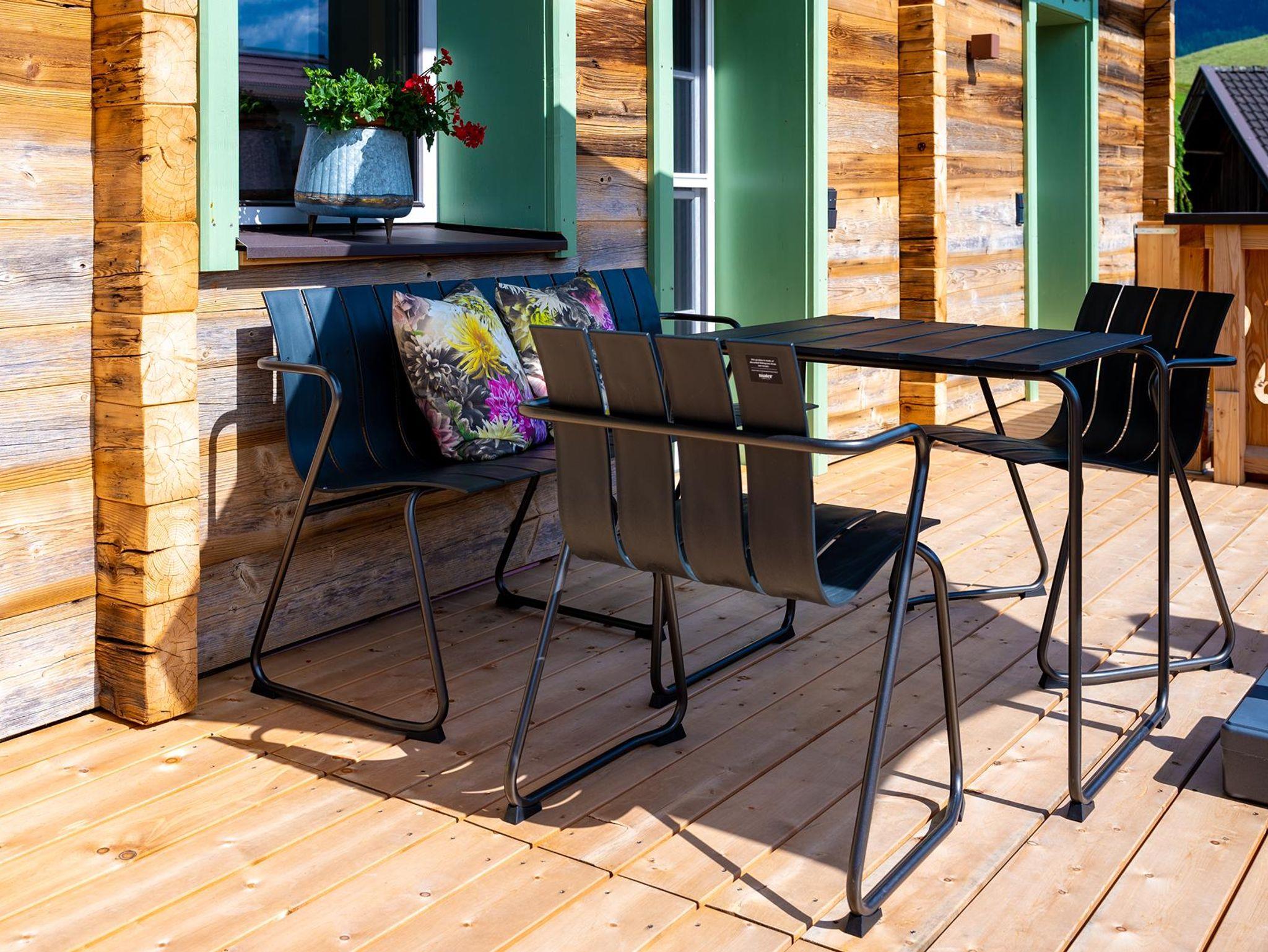 • Wohnraum mit ausziehbarer Couch für 2 Personen, eigener Balkon und Terrasse