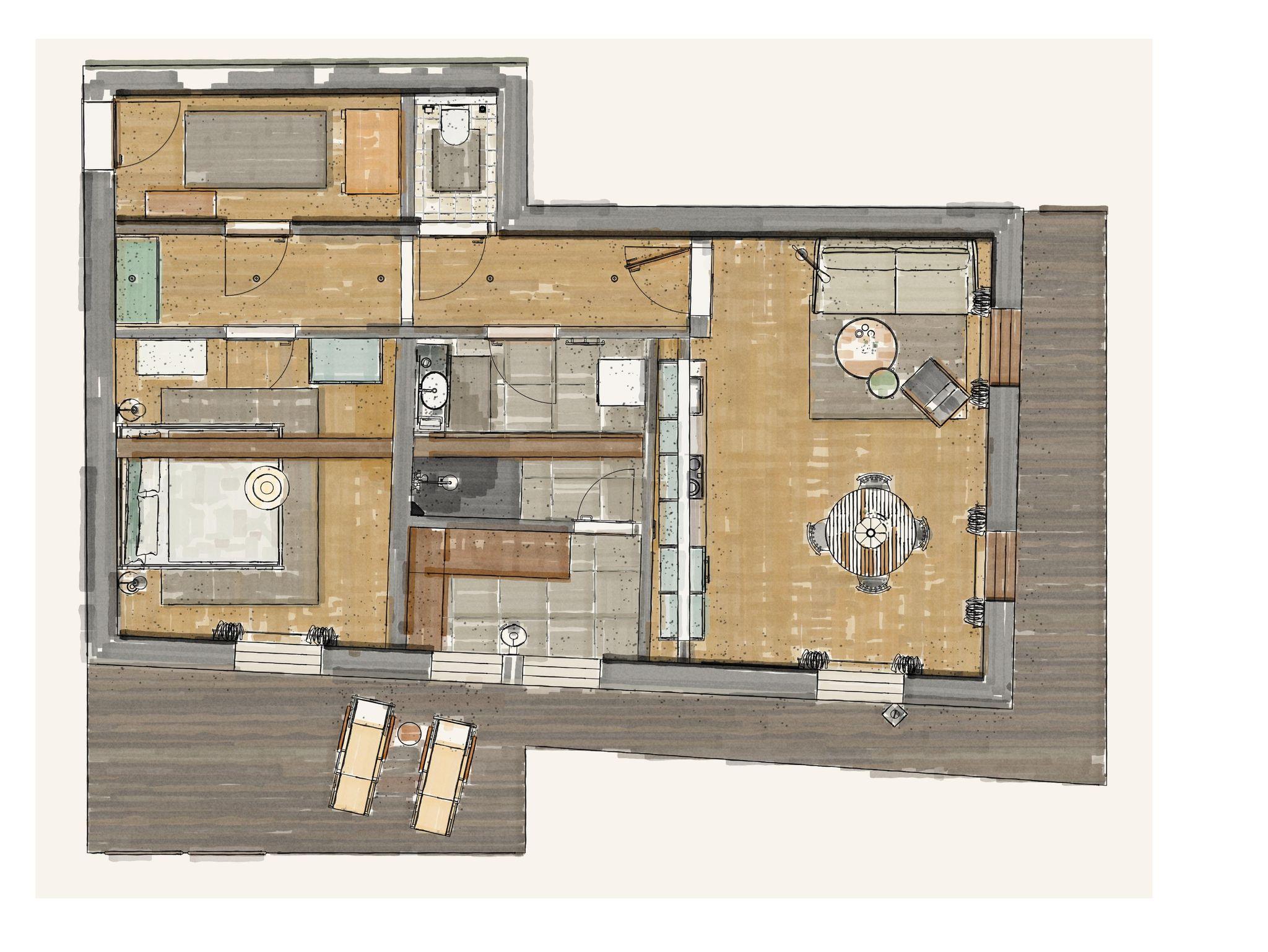 • Wohnküche, mit vollausgestattete Küche (Geschirrspüler, Kühlschrank, Kaffeemaschine mit Tabs, Herd mit Ceranfeld und Backrohr, Spüle, Toaster, Geschirrtücher, Kochgeschirr & Essgeschirr, Besteck, Gläser usw.)
