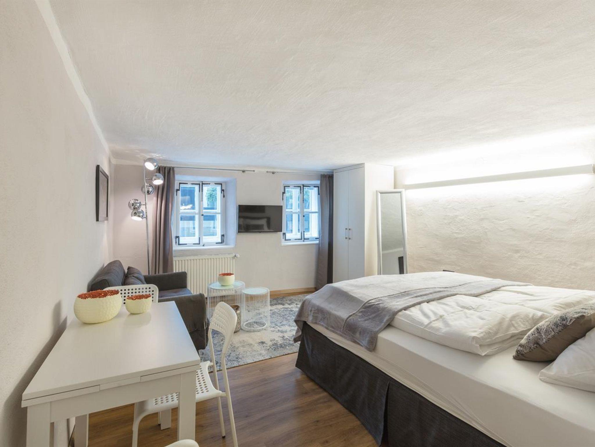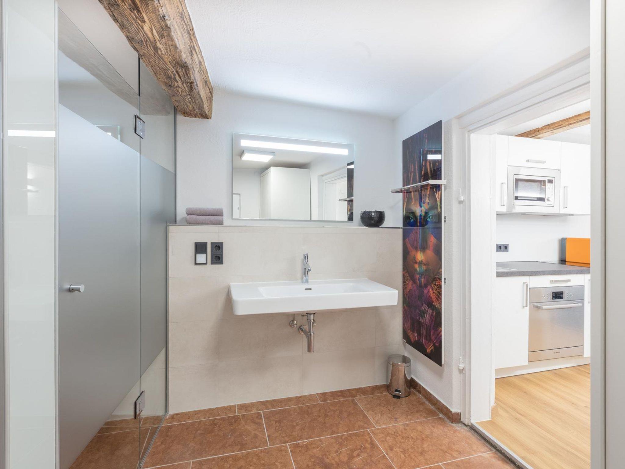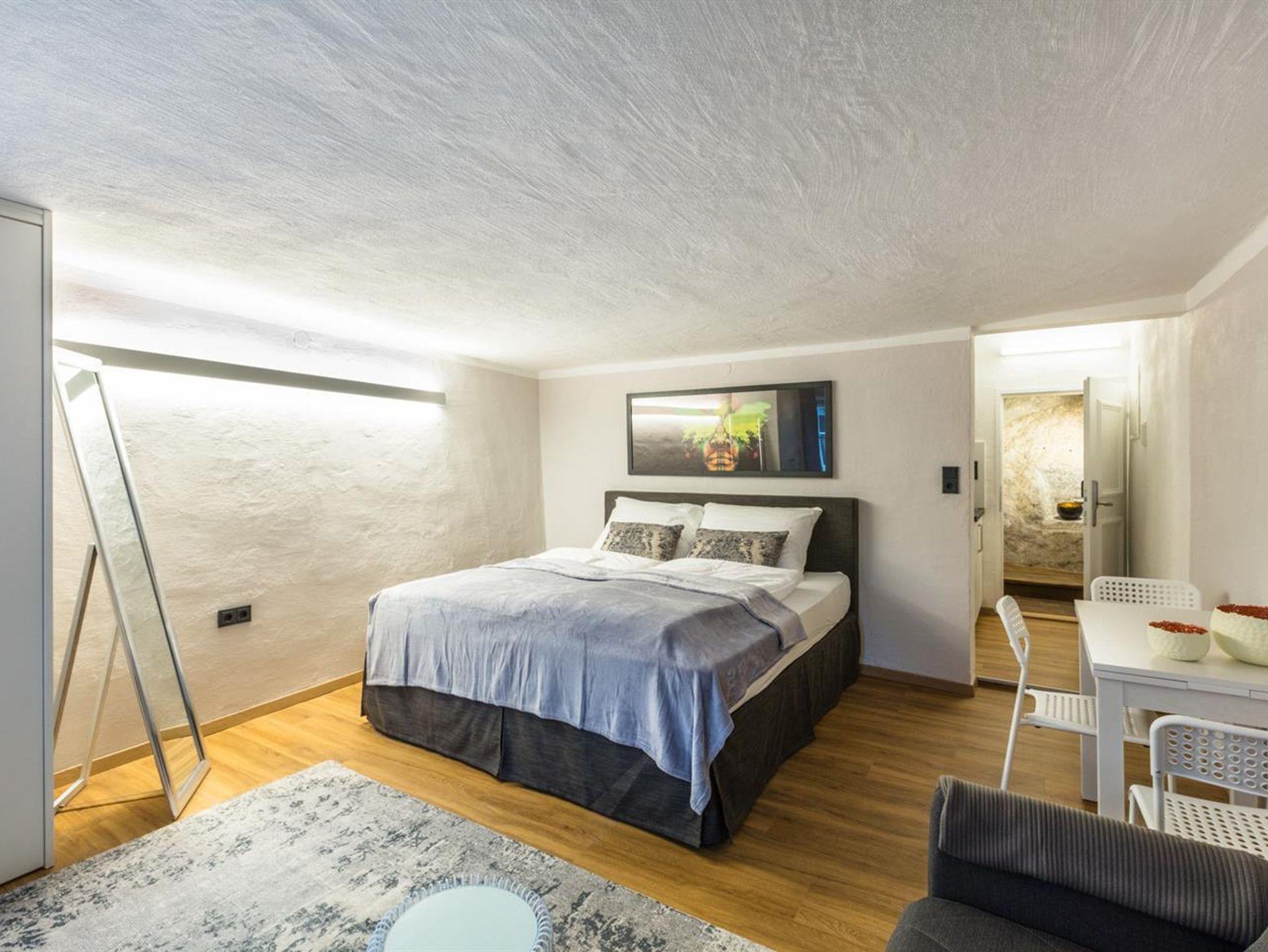 Das 1540 erbaute, historische und denkmalgeschützte Haus besteht aus 5 komplett renovierten und liebevoll gestalteten Apartments und einer für alle frei zugänglichen Dachterrasse und bietet einen traumhaften Blick direkt auf die Festung und über die Salzburger Altstadt. Dank der zentralen Lage liegt die Stein-Lodge nur wenige Schritte von den meisten Sehenswürdigkeiten wie Festung, Salzburger Dom, Mozarts Geburtshaus, Mirabellplatz, Festspielhaus, sowie der Getreidegasse entfernt. Die Stein Lodge liegt in der historischen Steingasse und verbindet historisches Ambiente mit modernem Design, unterstützt durch 25 Kunstdrucke des zeitgenössischen Künstlers Jürgen Fux, die das denkmalgeschützte Haus schmücken. Aufgrund der historischen Struktur des Hauses hat die Stein-Lodge keinen Lift, variierende Raumhöhen und ist mit denkmalgeschützten historischen Türen und Fenstern ausgestattet. Die modern renovierten Räume, direkt am Felsen des Kapuzinerberges, die zum Teil auch im Gebäude sichtbar sind, sowie die Kunstwerke, geben den Apartments ihren einzigartigen Charme. Die für alle Gäste frei zugängliche Dachterrasse, mit dem einzigartigen Ausblick auf die Festung und die Altstadt rundet das außergewöhnliche Ambiente der Stein-Lodge ab. Die Steingasse liegt mitten in der Salzburger Altstadt und ist der perfekte Ausgangspunkt für Sightseeing, Restaurants, Shoppingmöglichkeiten und vieles mehr. Die Unterkunft eignet sich besonders gut für Paare, Alleinreisende, Geschäftsreisende, Familien und Gruppen. Durch die zentrale Lage erreichen Sie den Salzburger Dom nach 400m, das Mozarts Geburtshaus nach 500 m, die Getreidegasse nach 600 m und die Festung nach 800 m. Einfach und schnell zu Fuß. Die Apartments der Stein-Lodge bieten: Kostenlose Handtücher und Bettwäsche Kompakte Küche mit Mikrowelle mit Grillfunktion, Toaster, Ceran-Herd, Kühlschrank, Cremesso Espressomaschine, Geschirr, Besteck, Gläser und Töpfe Haartrockner Kostenloses Highspeed Internet Kabel-TV sowie Lautsprecher mit Dockingstation Bügeleisen (auf Anfrage) Kostenloser Hochstuhl (auf Anfrage) Kostenloses Babybett (auf Anfrage) Alle unsere Gäste haben Zugang zur: Dachterrasse inklusive einzigartigem Ausblick Kostenlosen Benutzung der Waschmaschine und des Trockners Kostenlosen Benutzung der Fahrräder