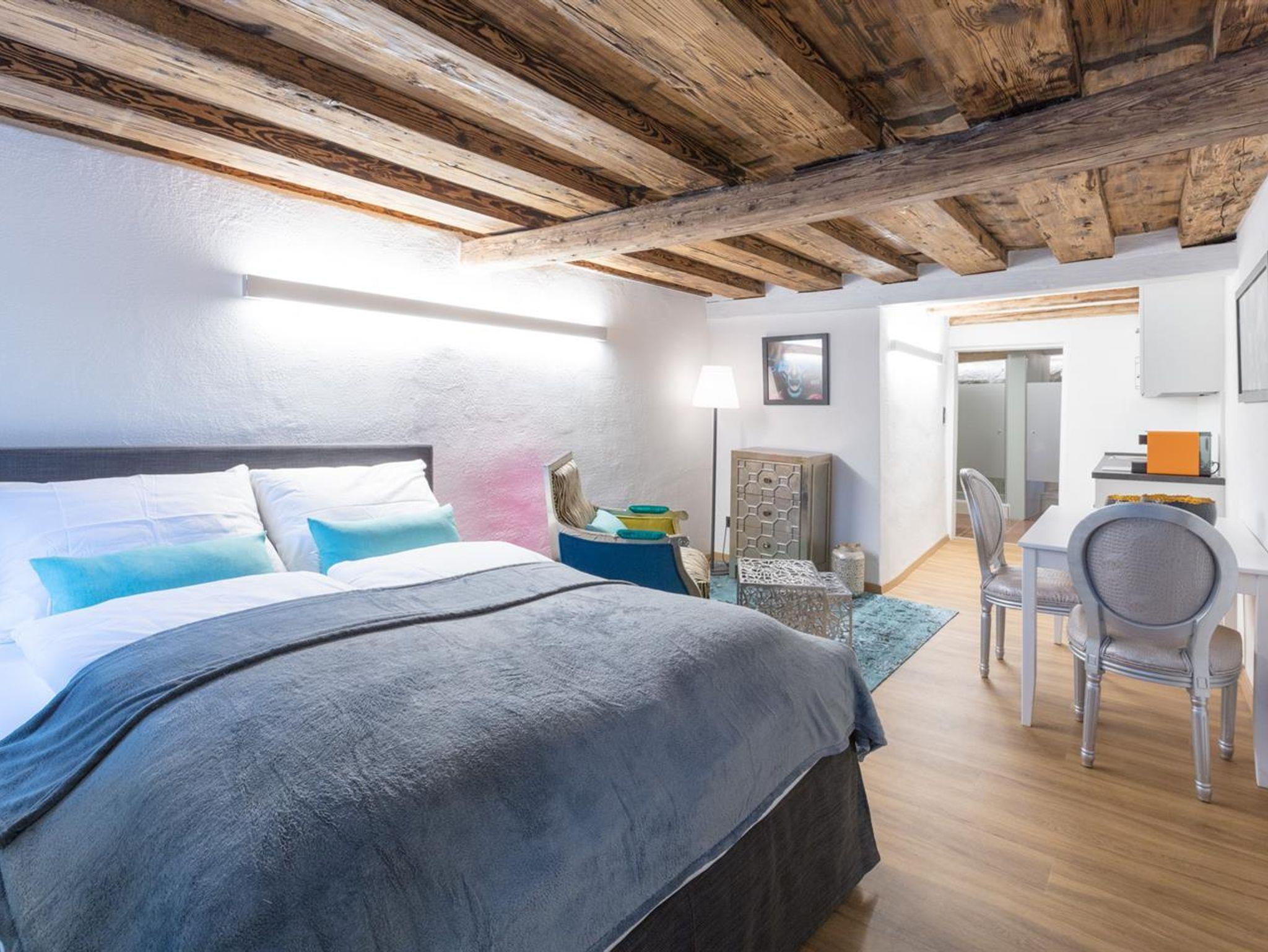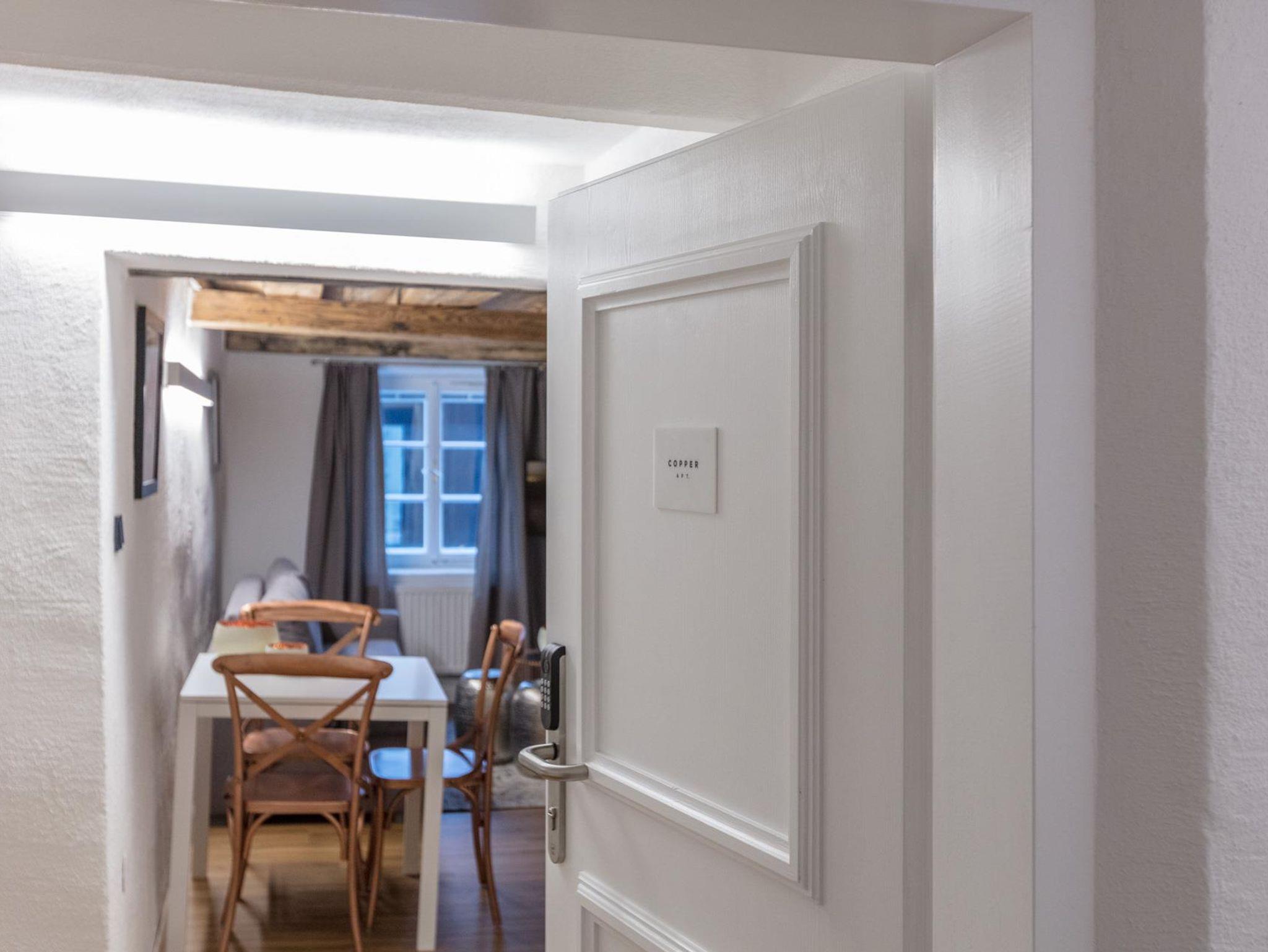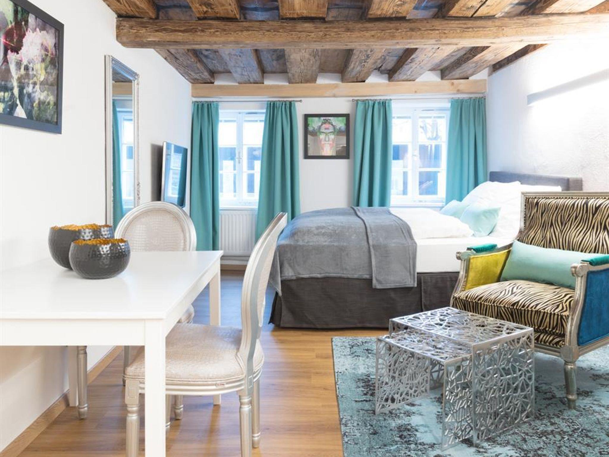 Das 1540 erbaute, historische und denkmalgeschützte Haus besteht aus 5 komplett renovierten und liebevoll gestalteten Apartments und einer für alle frei zugänglichen Dachterrasse und bietet einen traumhaften Blick direkt auf die Festung und über die Salzburger Altstadt. Dank der zentralen Lage liegt die Stein-Lodge nur wenige Schritte von den meisten Sehenswürdigkeiten wie Festung, Salzburger Dom, Mozarts Geburtshaus, Mirabellplatz, Festspielhaus, sowie der Getreidegasse entfernt. Die Stein Lodge liegt in der historischen Steingasse und verbindet historisches Ambiente mit modernem Design, unterstützt durch 25 Kunstdrucke des zeitgenössischen Künstlers Jürgen Fux, die das denkmalgeschützte Haus schmücken. Aufgrund der historischen Struktur des Hauses hat die Stein-Lodge keinen Lift, variierende Raumhöhen und ist mit denkmalgeschützten historischen Türen und Fenstern ausgestattet. Die modern renovierten Räume, direkt am Felsen des Kapuzinerberges, die zum Teil auch im Gebäude sichtbar sind, sowie die Kunstwerke, geben den Apartments ihren einzigartigen Charme. Die für alle Gäste frei zugängliche Dachterrasse, mit dem einzigartigen Ausblick auf die Festung und die Altstadt rundet das außergewöhnliche Ambiente der Stein-Lodge ab. Die Steingasse liegt mitten in der Salzburger Altstadt und ist der perfekte Ausgangspunkt für Sightseeing, Restaurants, Shoppingmöglichkeiten und vieles mehr. Die Unterkunft eignet sich besonders gut für Paare, Alleinreisende, Geschäftsreisende, Familien und Gruppen. Durch die zentrale Lage erreichen Sie den Salzburger Dom nach 400m, das Mozarts Geburtshaus nach 500 m, die Getreidegasse nach 600 m und die Festung nach 800 m. Einfach und schnell zu Fuß. Die Apartments der Stein-Lodge bieten: Kostenlose Handtücher und Bettwäsche Kompakte Küche mit Mikrowelle mit Grillfunktion, Toaster, Ceran-Herd, Kühlschrank, Cremesso Espressomaschine, Geschirr, Besteck, Gläser und Töpfe Haartrockner Kostenloses Highspeed Internet Kabel-TV sowie Lautsprecher mit Dockingstation Bügeleisen (auf Anfrage) Kostenloser Hochstuhl (auf Anfrage) Kostenloses Babybett (auf Anfrage) Alle unsere Gäste haben Zugang zur: Dachterrasse inklusive einzigartigem Ausblick Kostenlosen Benutzung der Waschmaschine und des Trockners Kostenlosen Benutzung der Fahrräder