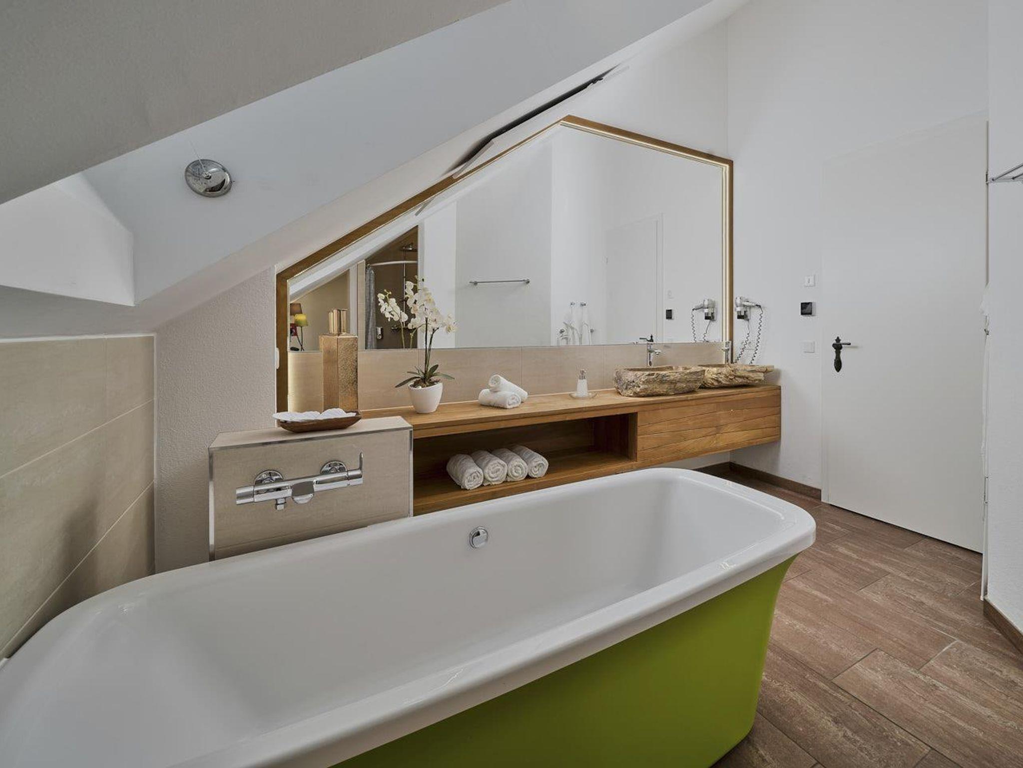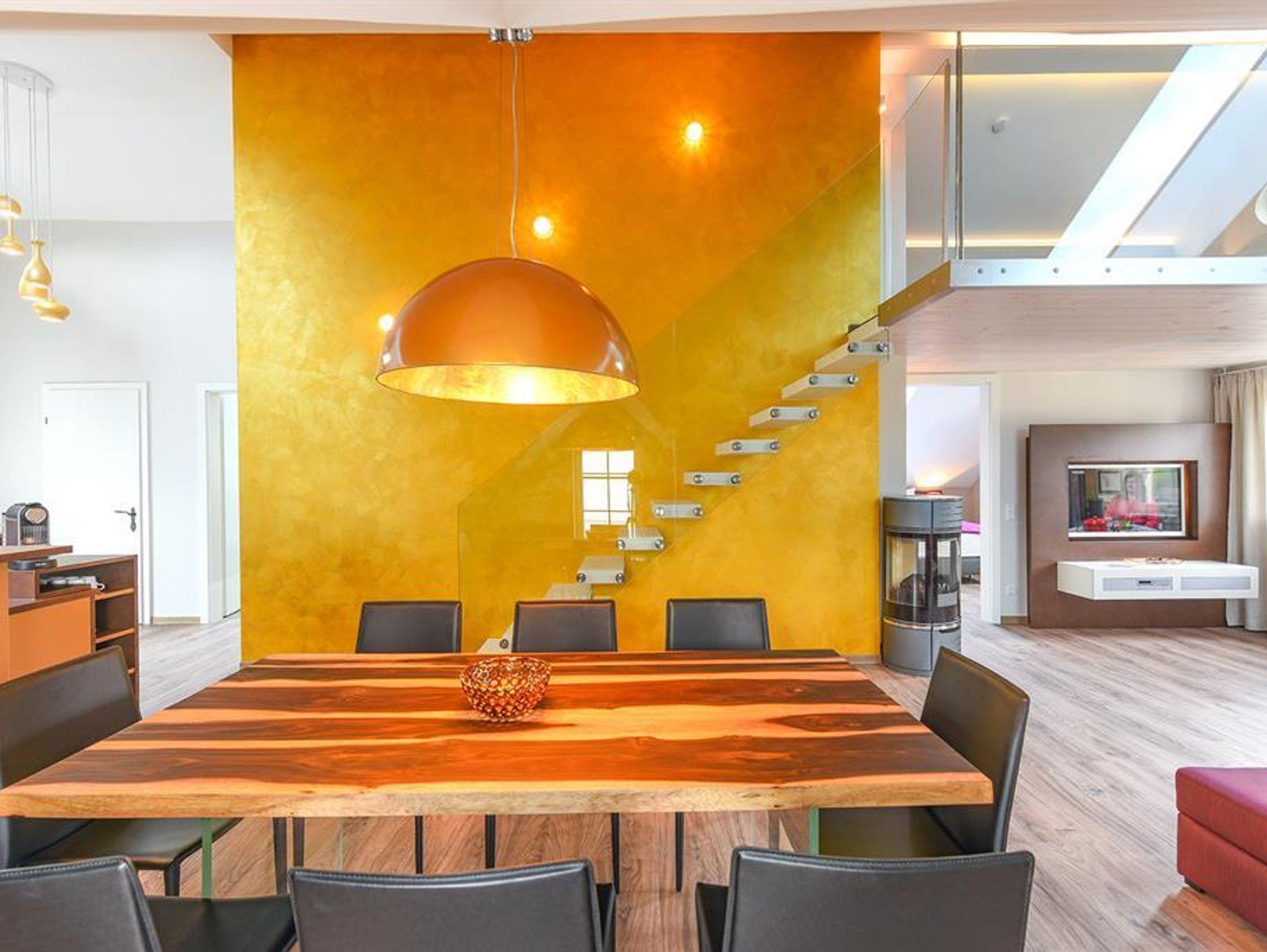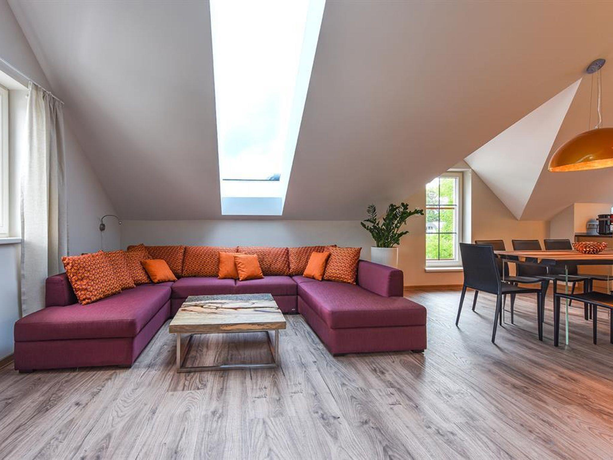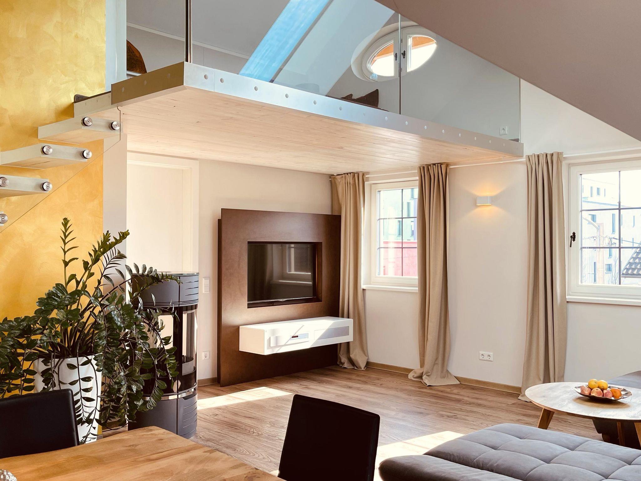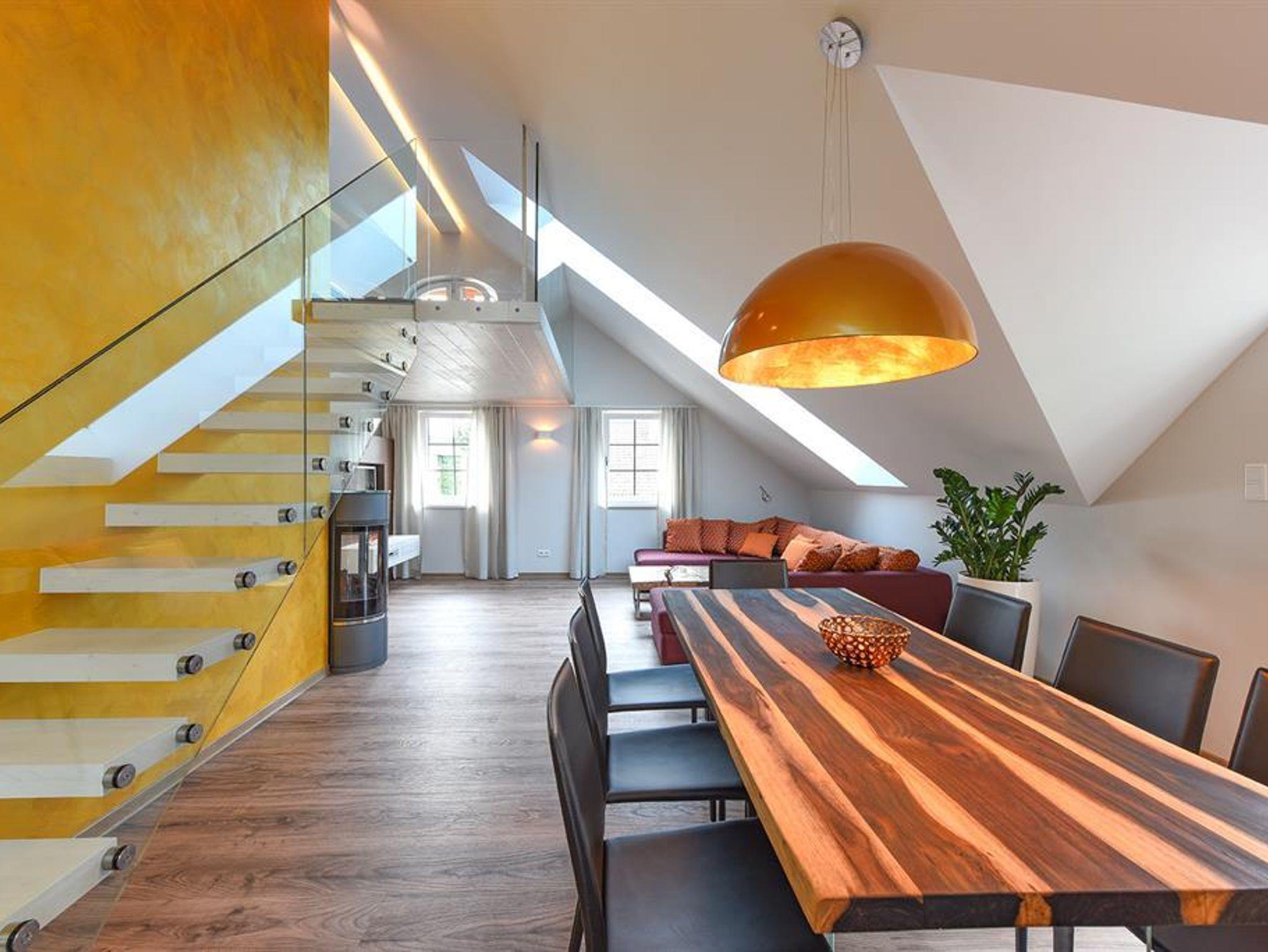 Penthouse Festung Unser Penthouse Festung gehört wohl zu den schönsten und luxuriösesten Möglichkeiten den Urlaub in der Stadt Salzburg zu verbringen. Das Penthouse umfasst das gesamte Dachgeschoss der Villa Salzburg und verfügt über bis zu 5 m hohe Räume. Eingerichtet wurde die Wohnung mit Designermöbeln. Die verwendeten Materialien sind von höchster Qualität. Das Symposium von herrschaftlicher Architektur und modernem, extravagantem Design verleiht dem Penthouse ein einzigartiges Ambiente. Auf ca. 120 m² verfügt das Penthouse über 2 Schlafzimmer mit großen Doppelbetten. Das helle, lichtdurchflutete Wohnzimmer bietet dank der großen Fensterflächen wunderbare Ausblicke. Für gemütliche Abende steht der dänische Kamin im Wohn-Essbereich für Sie bereit. Das Highlight im Badezimmer ist die freistehende Badewanne, die sich direkt unter einem 3,5 m² großen Dachfenster befindet. Das Penthouse verfügt zudem über eine 10 m² großen Chill-Out Empore mit tollem Ausblick auf den Untersberg. Hier können Sie die Seele baumeln lassen und den Urlaub in Salzburg in vollen Zügen genießen. Das Penthouse im Überblick ca. 120 m² mit bis zu 5 m hohen Räumen für 4-8 Personen 2 Schlafzimmer mit Luxus-Boxspring-Doppelbetten 1 zusätzliches Doppelbett auf der Empore Die hochwertige Hotelcouch im Wohnzimmer kann zu einem zusätzlichen Bett für 2 Personen umfunktioniert werden. Wohnzimmer mit großen Dachfenstern und dänischen Kamin Entertainmentcenter mit HIFI-Anlage und DVD & Blu-ray Player UHD Flat TV im internationalen Sendern über Satellit (Astra) 10 m² große Chill-Out Empore komplett ausgestattete Küche Badezimmer mit Dusche und freistehender Badewanne, 3,5 m² Dachfenster, 2 Waschbecken, Haarfön, zuschaltbare Infrarotheizung und Handtüchern separat angelegte Toilette und Pissoir Safe Benützung der allgemein zugänglichen, sonnigen 70 m² großen Dachterrasse mit Liegestühlen und Lounge-Möbeln kostenloses W-Lan kostenloser Parkplatz Die Küchenausstattung im Detail WMF Töpfe Berndorf Besteck Design Porzellan Nespresso Kaffeemaschine Melitta Toaster, Kaffeemaschine, Stabmixer und Wasserkocher Siemens Küchengeräte - wie beispielsweise Herd, Geschirrspüler, Mikrowelle, Hochkühlschrank mit Tiefkühlfach etc. Babystuhl und Flaschenwärmer