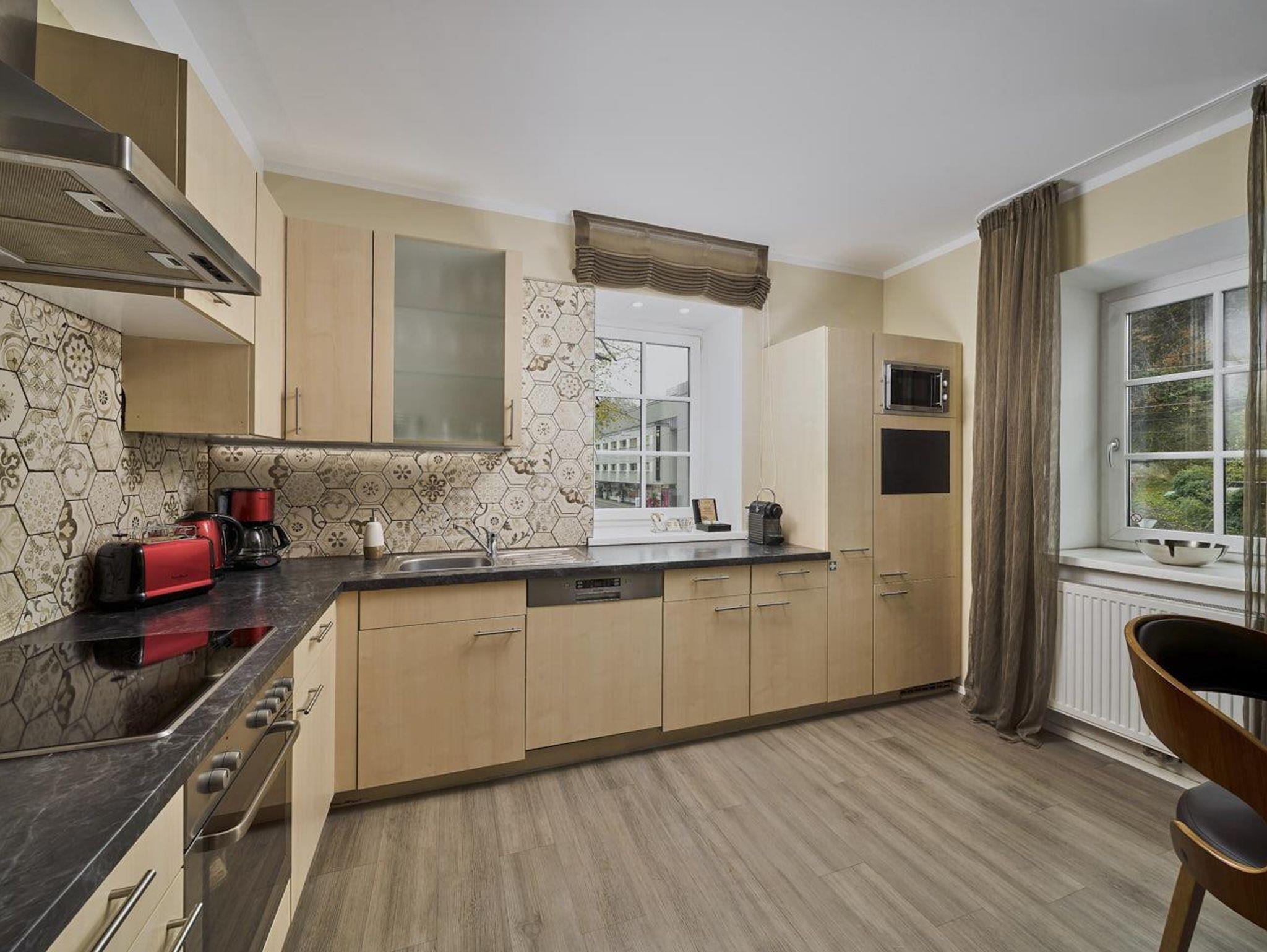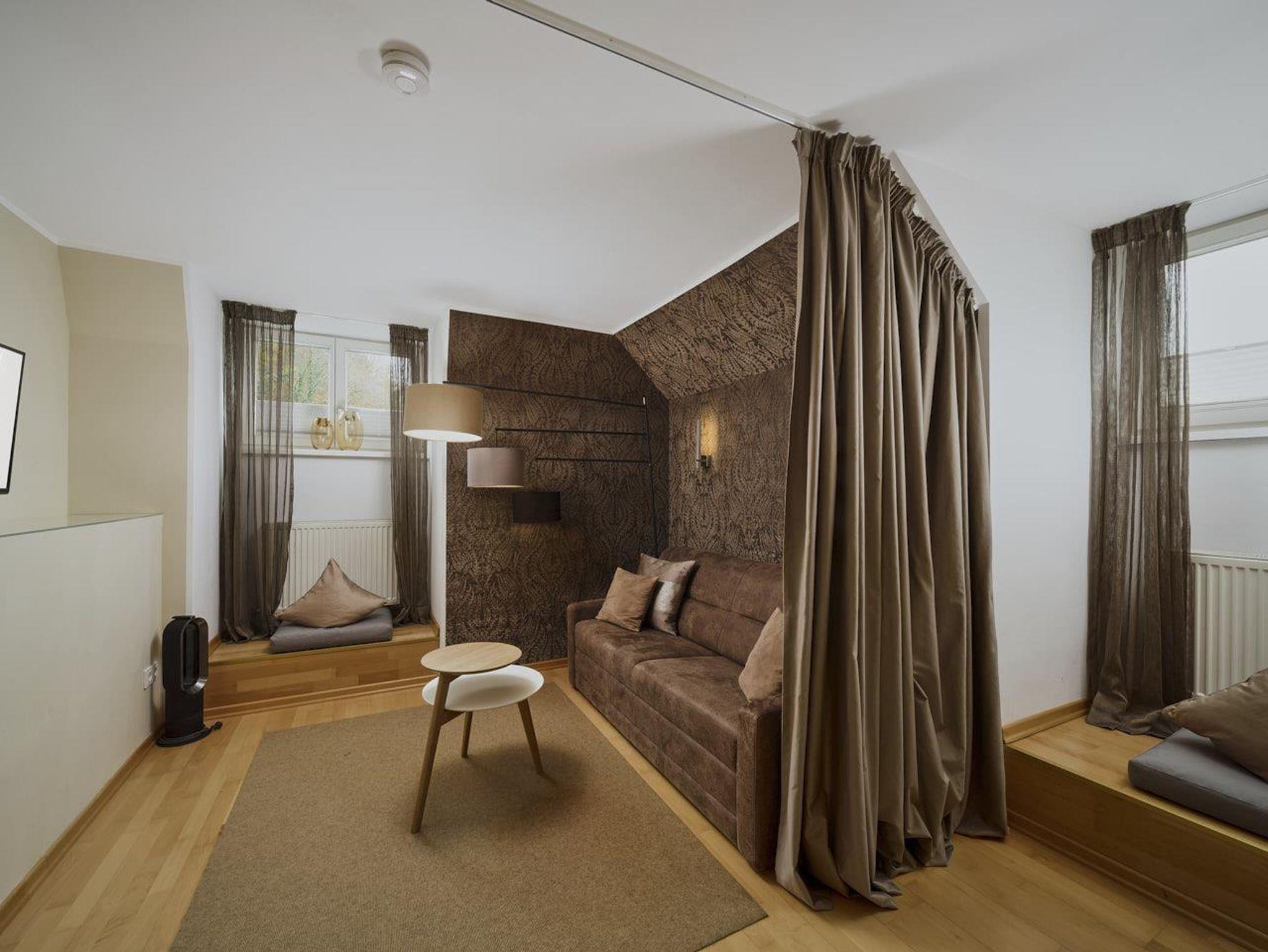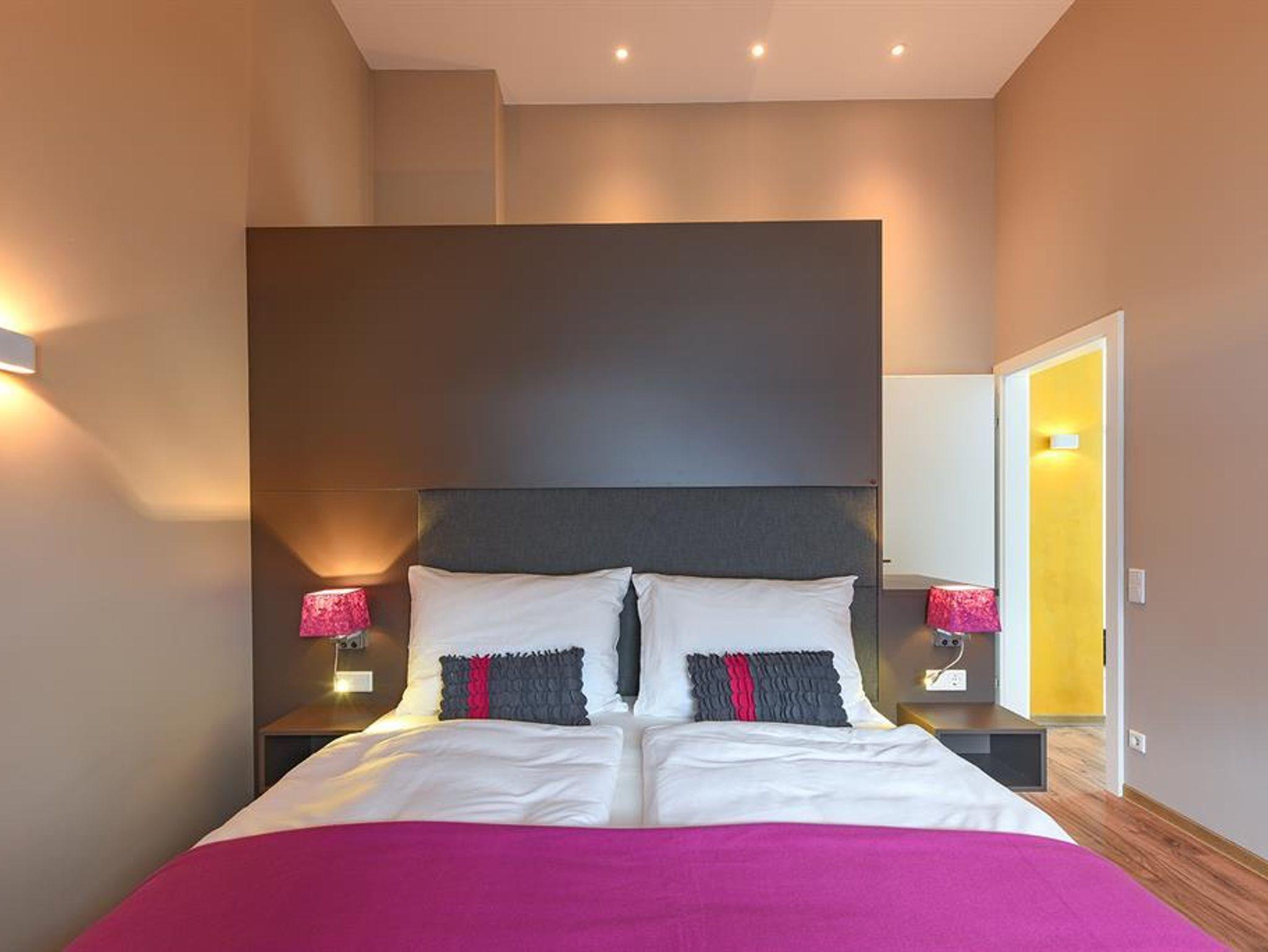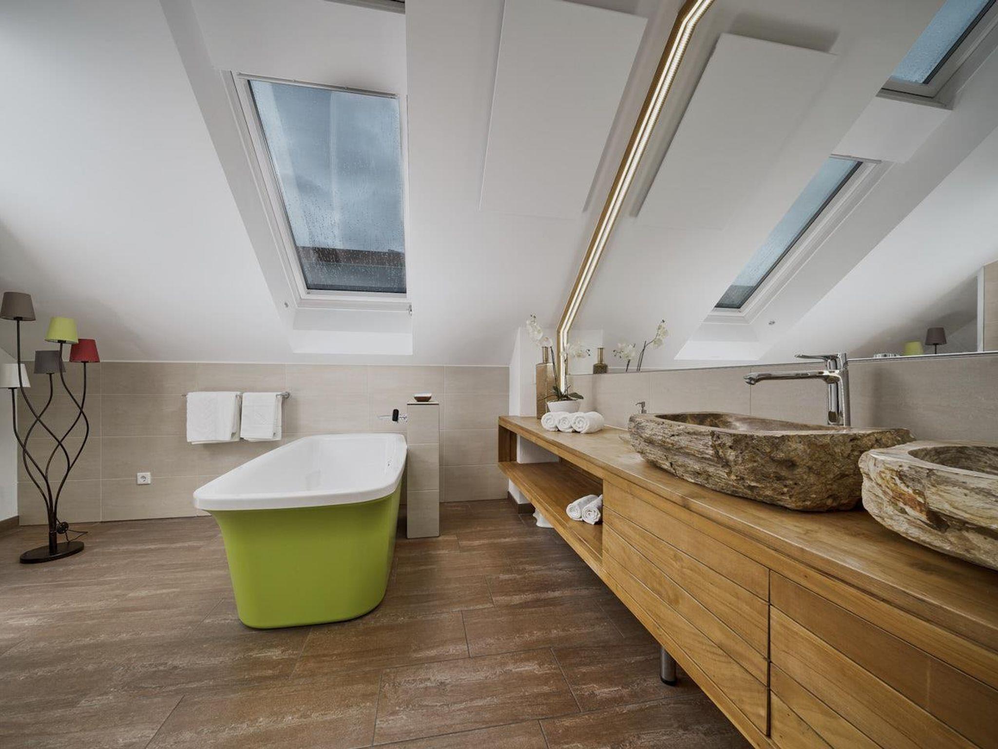 Penthouse Festung Unser Penthouse Festung gehört wohl zu den schönsten und luxuriösesten Möglichkeiten den Urlaub in der Stadt Salzburg zu verbringen. Das Penthouse umfasst das gesamte Dachgeschoss der Villa Salzburg und verfügt über bis zu 5 m hohe Räume. Eingerichtet wurde die Wohnung mit Designermöbeln. Die verwendeten Materialien sind von höchster Qualität. Das Symposium von herrschaftlicher Architektur und modernem, extravagantem Design verleiht dem Penthouse ein einzigartiges Ambiente. Auf ca. 120 m² verfügt das Penthouse über 2 Schlafzimmer mit großen Doppelbetten. Das helle, lichtdurchflutete Wohnzimmer bietet dank der großen Fensterflächen wunderbare Ausblicke. Für gemütliche Abende steht der dänische Kamin im Wohn-Essbereich für Sie bereit. Das Highlight im Badezimmer ist die freistehende Badewanne, die sich direkt unter einem 3,5 m² großen Dachfenster befindet. Das Penthouse verfügt zudem über eine 10 m² großen Chill-Out Empore mit tollem Ausblick auf den Untersberg. Hier können Sie die Seele baumeln lassen und den Urlaub in Salzburg in vollen Zügen genießen. Das Penthouse im Überblick ca. 120 m² mit bis zu 5 m hohen Räumen für 4-8 Personen 2 Schlafzimmer mit Luxus-Boxspring-Doppelbetten 1 zusätzliches Doppelbett auf der Empore Die hochwertige Hotelcouch im Wohnzimmer kann zu einem zusätzlichen Bett für 2 Personen umfunktioniert werden. Wohnzimmer mit großen Dachfenstern und dänischen Kamin Entertainmentcenter mit HIFI-Anlage und DVD & Blu-ray Player UHD Flat TV im internationalen Sendern über Satellit (Astra) 10 m² große Chill-Out Empore komplett ausgestattete Küche Badezimmer mit Dusche und freistehender Badewanne, 3,5 m² Dachfenster, 2 Waschbecken, Haarfön, zuschaltbare Infrarotheizung und Handtüchern separat angelegte Toilette und Pissoir Safe Benützung der allgemein zugänglichen, sonnigen 70 m² großen Dachterrasse mit Liegestühlen und Lounge-Möbeln kostenloses W-Lan kostenloser Parkplatz Die Küchenausstattung im Detail WMF Töpfe Berndorf Besteck Design Porzellan Nespresso Kaffeemaschine Melitta Toaster, Kaffeemaschine, Stabmixer und Wasserkocher Siemens Küchengeräte - wie beispielsweise Herd, Geschirrspüler, Mikrowelle, Hochkühlschrank mit Tiefkühlfach etc. Babystuhl und Flaschenwärmer