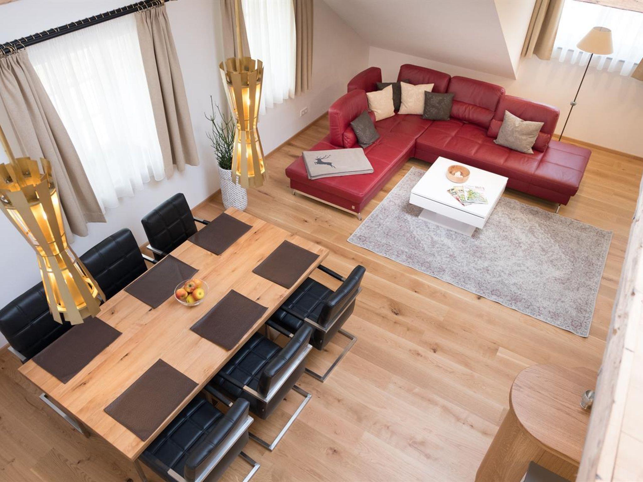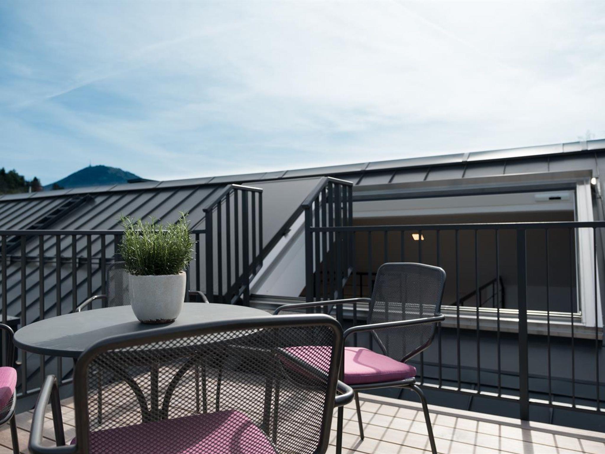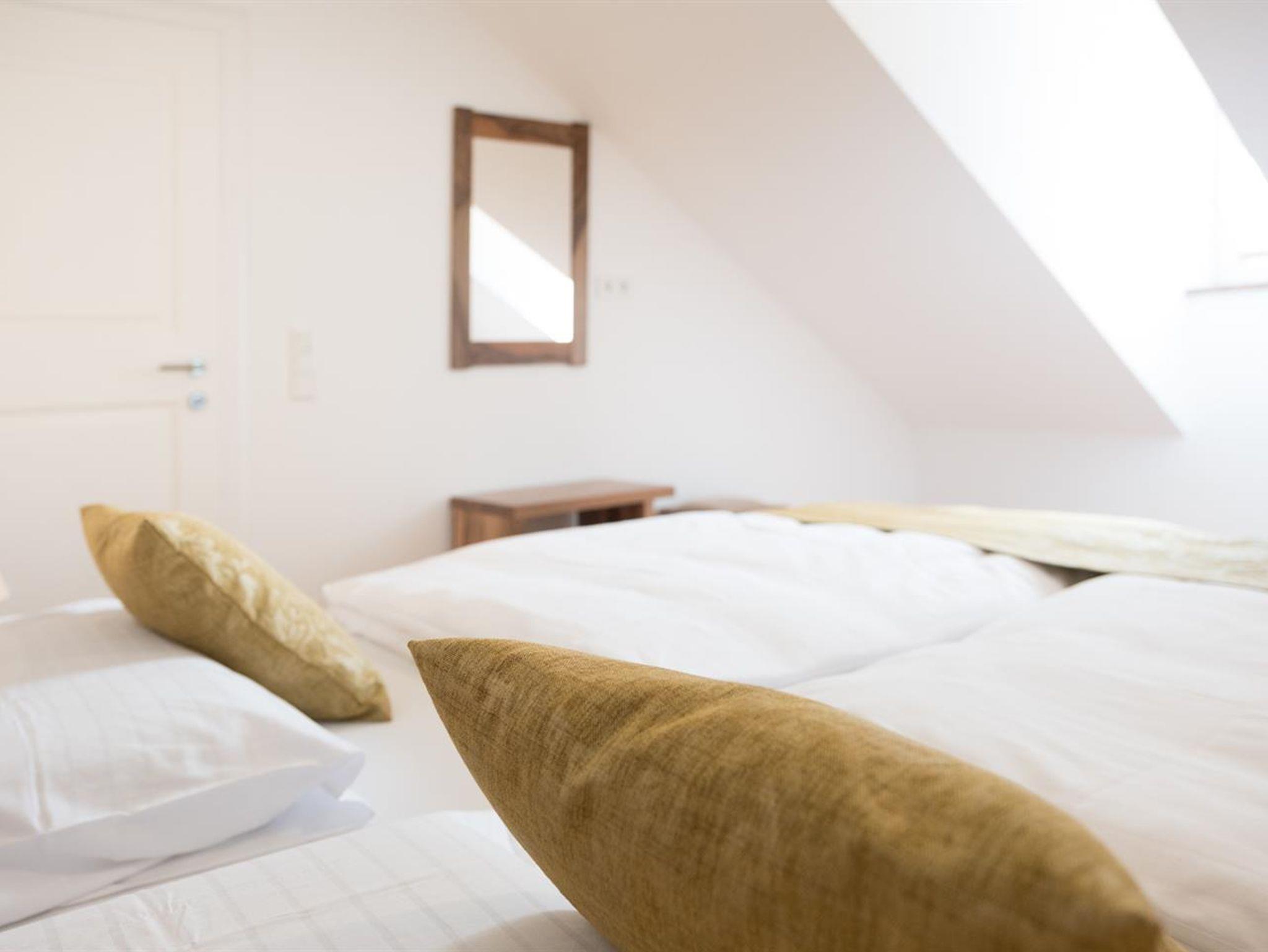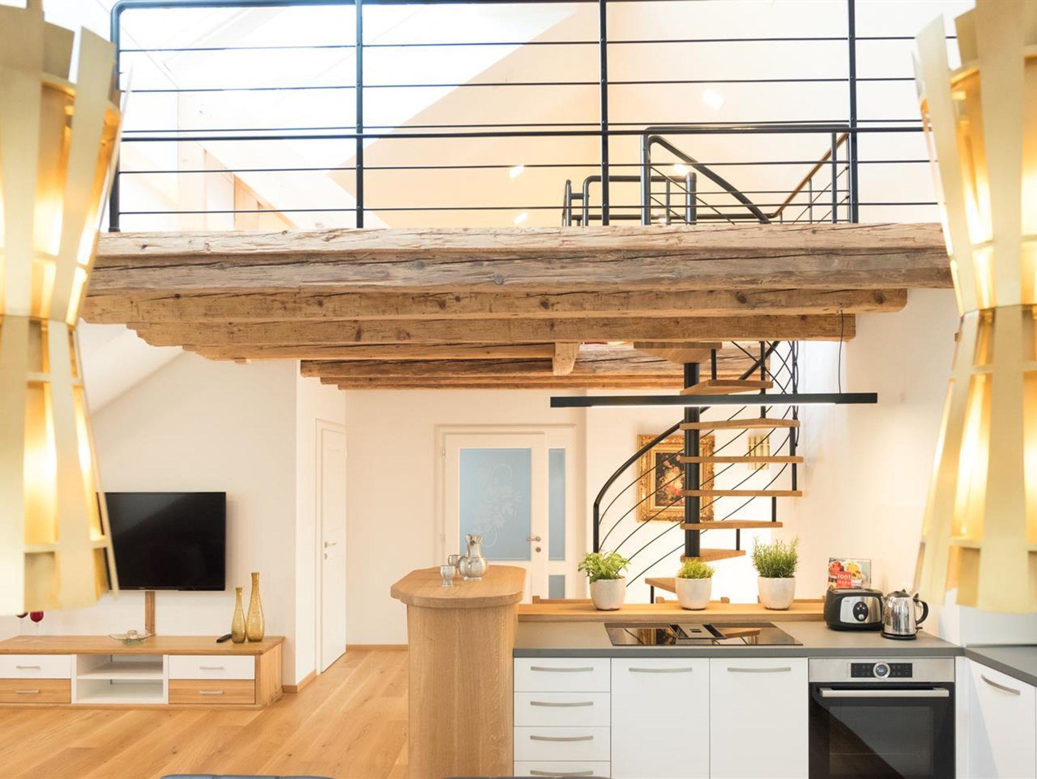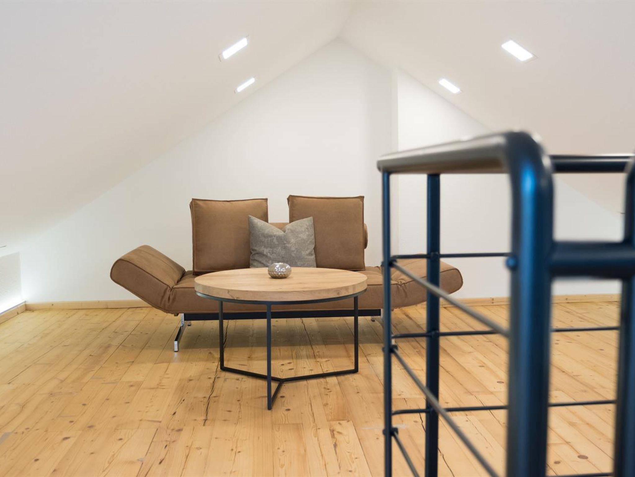 Diese Loft ähnliche Suite befindet sich im zweiten Obergeschoß und bietet zwei geräumige Schlafzimmer mit Vollholz-Doppelbetten. Neben einem geräumigen Wohnzimmer mit Essbereich finden Sie eine komplett ausgestattete Küche. Über eine Wendeltreppe gelangen Sie in das Atelier, das zum Lesen einlädt. Über das Atelier erreichen Sie die Dachterrasse, die Ihnen einen atemberaubenden Blick zur Festung und den Salzburger Hausbergen bietet. Badezimmer mit Badewanne, Dusche, WC.