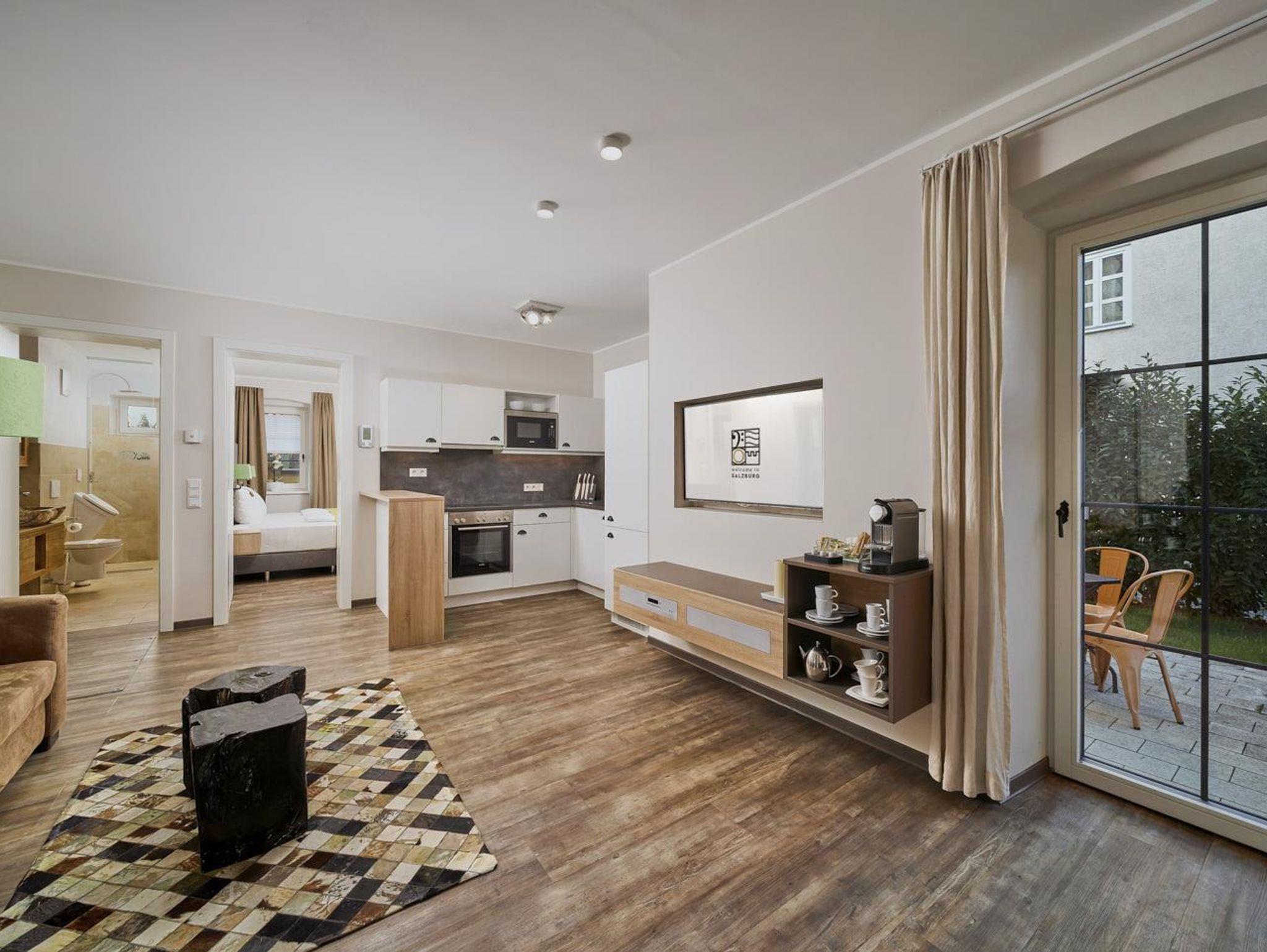 Ferienwohnung Hellbrunn In der Ferienwohnung Hellbrunn verbringen Sie Ihren Urlaub auf ca. 70 m². Die Wohnung bietet zwei Schlafzimmer mit Doppelbetten und ein gemütliches Wohnzimmer, in dem sich eine hochwertige, ausziehbare und bequeme Hotelcouch befindet. Die Ferienwohnung bietet zusätzlich einen Gartenzugang oder Balkon. Für kulinarische Genüsse steht Ihnen die komplett ausgestattete Küche zur Verfügung. Das hat die Ferienwohnung zu bieten ca. 70 m² für 4-6 Personen 2 Schlafzimmer mit Luxus-Boxspring-Doppelbetten gemütliches Wohnzimmer mit hochwertiger, ausziehbarer Hotelcouch für 2 Personen Entertainmentcenter mit HIFI-Anlage und DVD & Blu-ray Player UHD Flat TV im internationalen Sendern über Satellit (Astra) komplett ausgestattete Küche Badezimmer mit Dusche, Haarfön, zuschaltbare Infrarotheizung und Handtüchern separat angelegte Toilette und Pissoir Safe Gartenzugang oder Terrasse Benützung der allgemein zugänglichen, sonnigen 70 m² großen Dachterrasse mit Liegestühlen und Lounge-Möbeln kostenloses W-Lan kostenloser Parkplatz Die Küchenausstattung im Detail WMF Töpfe Berndorf Besteck Design Porzellan Nespresso Kaffeemaschine Melitta Toaster, Kaffeemaschine, Stabmixer und Wasserkocher Siemens Küchengeräte - wie beispielsweise Herd, Mikrowelle, Geschirrspüler, Hochkühlschrank mit Tiefkühlfach etc. Babystuhl und Flaschenwärmer