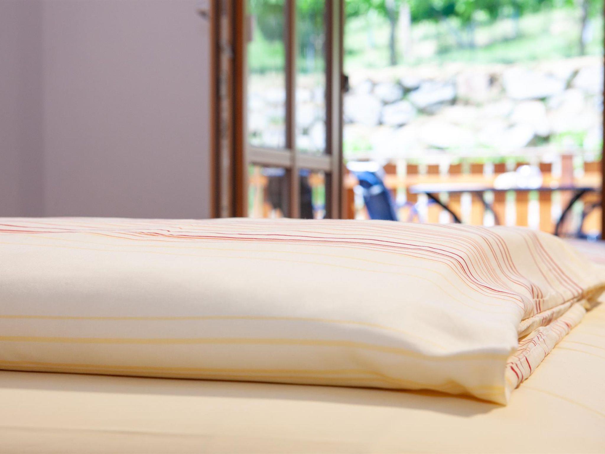 Doppelbettzimmer mit Badezimmer, WC und Terrasse. Die große Holzterrasse direkt vor unseren Weingärten lädt zum Entspannen sein.