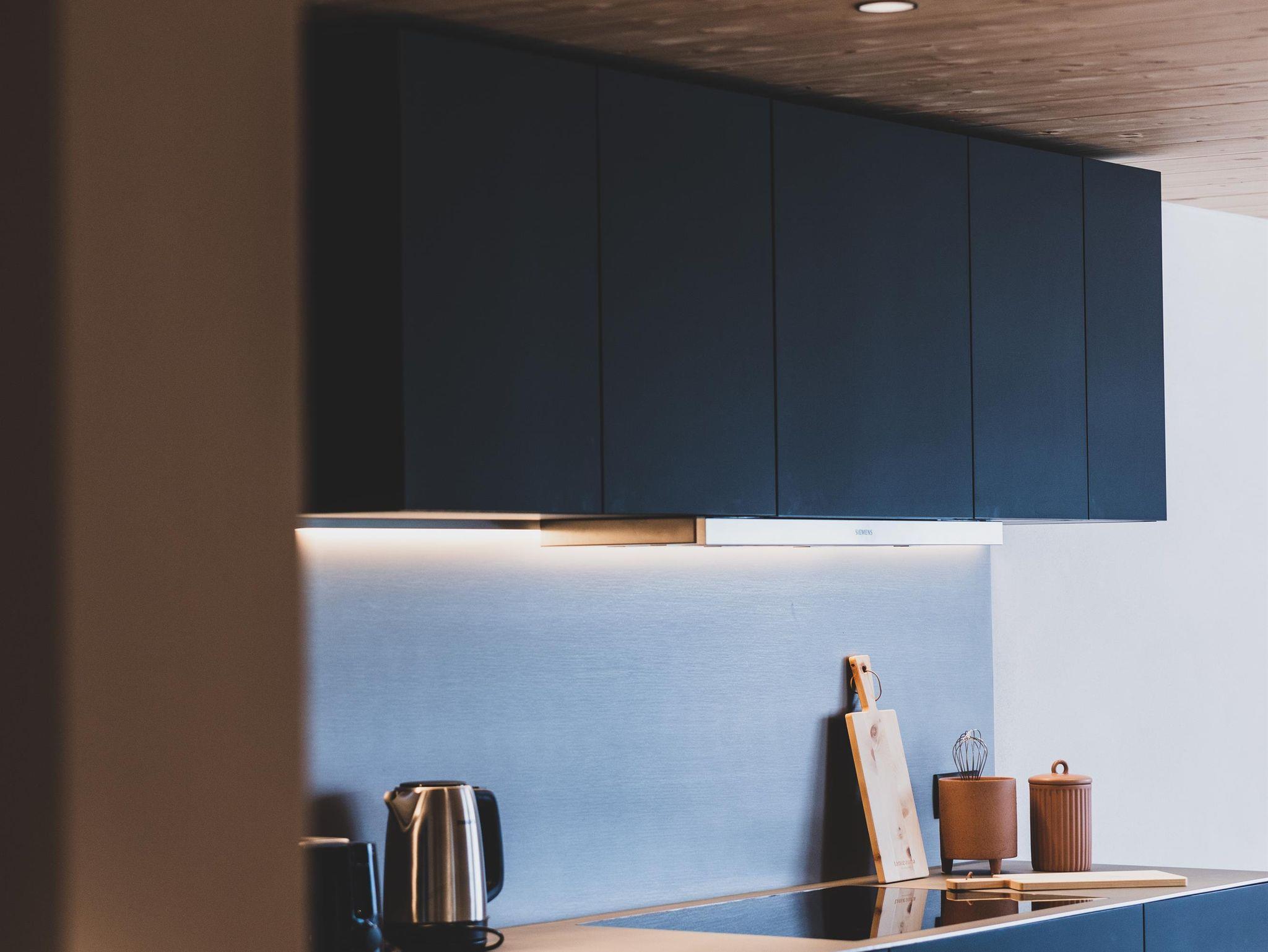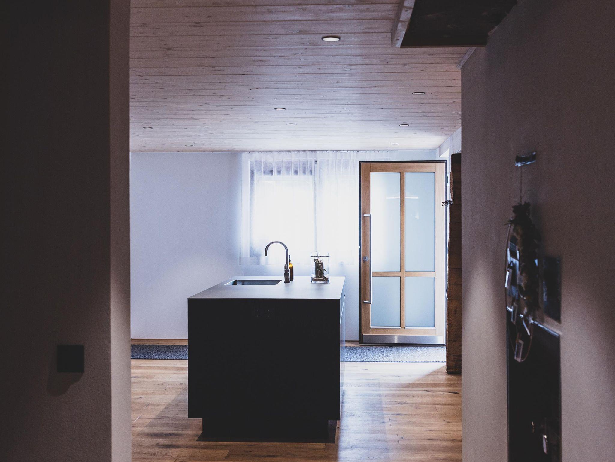 Im Montafonerhaus wurden in Wohn- und Schlafzimmern der ursprüngliche Stil des Hauses erhalten und revitalisiert, Küche und Badezimmer wurden modern und hochwertig gestaltet. Dadurch entstand ein interessanter Kontrast zwischen Alt und Neu.