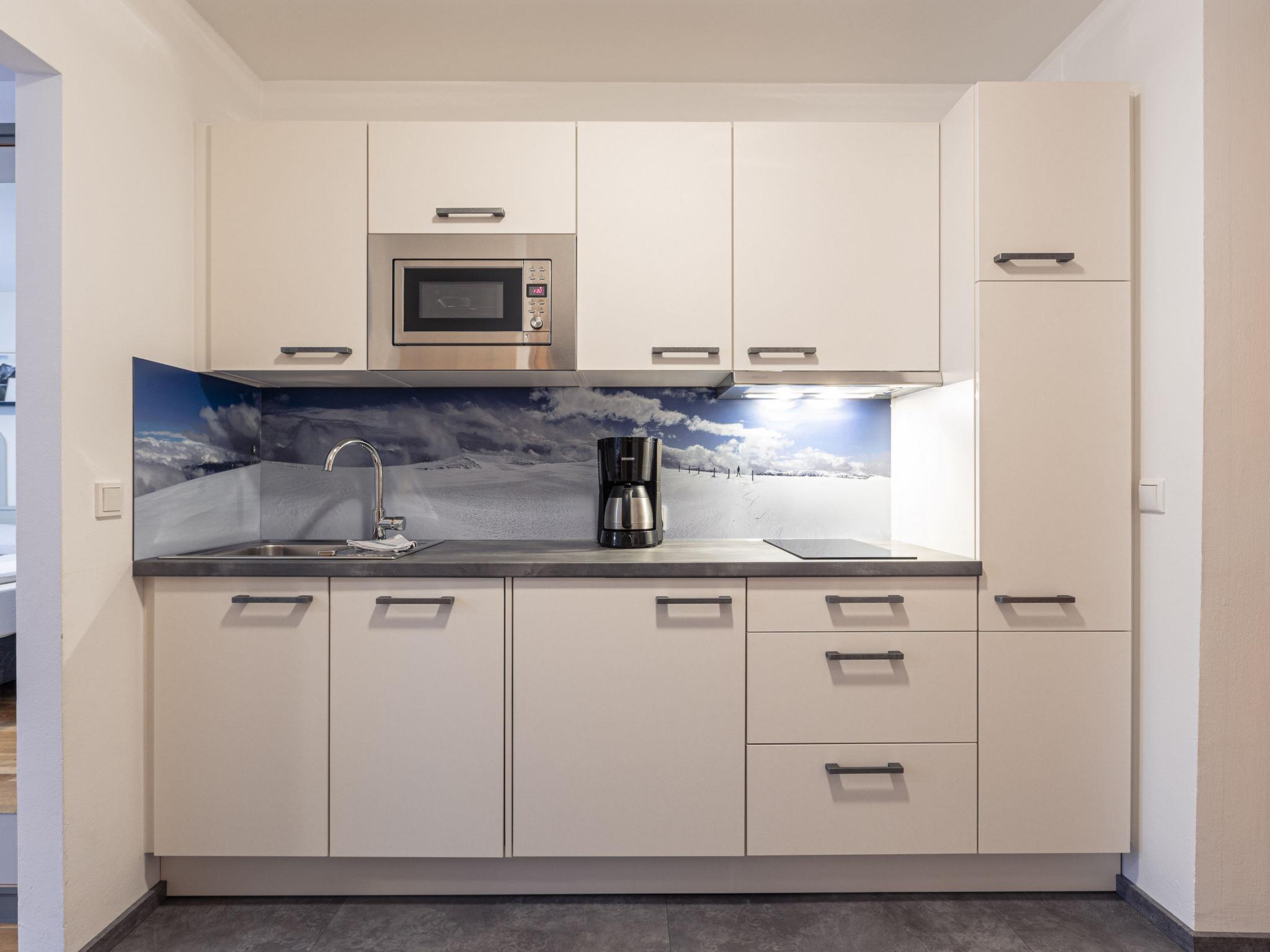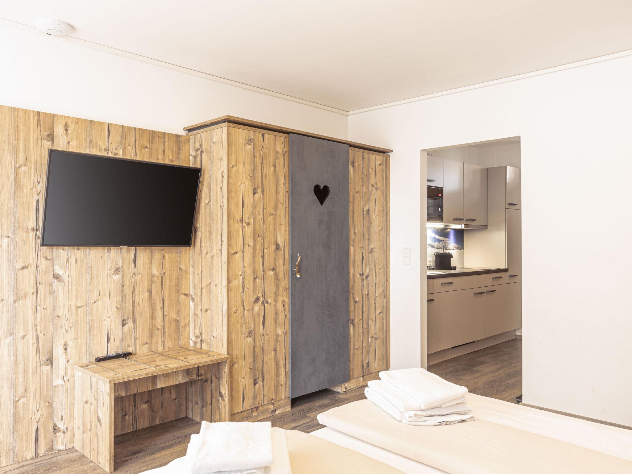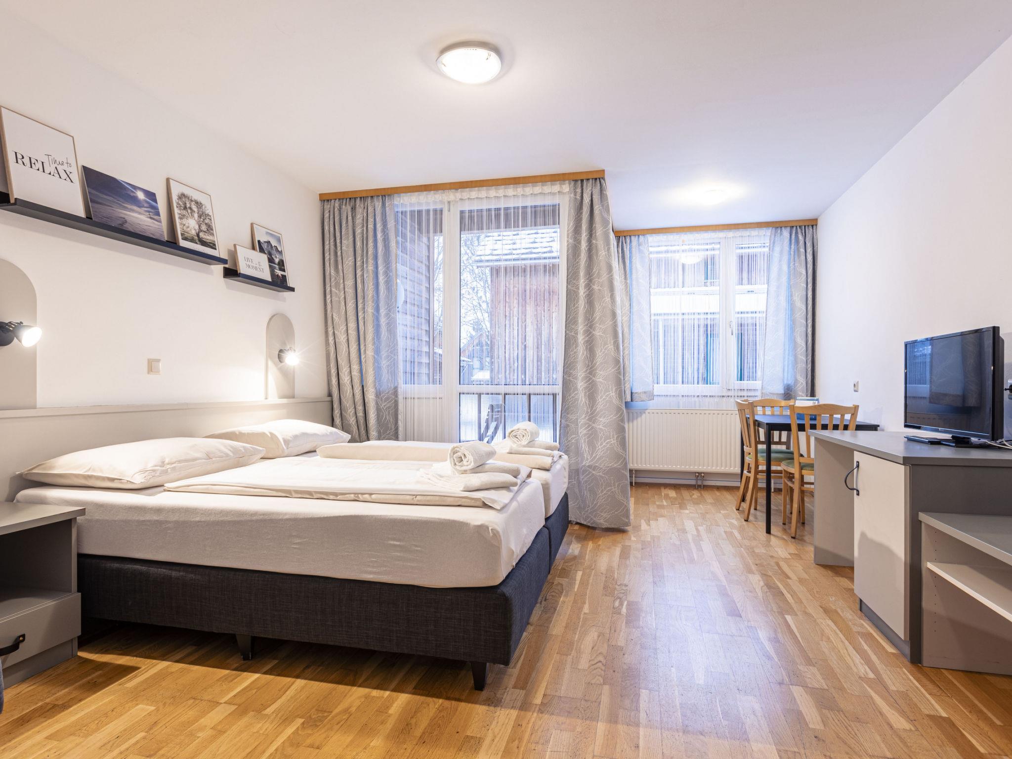 "Studio", 1-room apartment 30 m2. Bright, tasteful furnishings: living/sleeping room with 1 sofabed, 1 double bed, dining table and satellite TV (flat screen). Open kitchen (dishwasher, 2 ceramic glass hob hotplates, toaster, kettle, microwave). Bath/bidet/WC. Heating. Balcony. Balcony furniture. Beautiful view of the mountains. Facilities: hair dryer. Internet (WiFi, free). Please note: non-smokers only. The property is one of a type of property or apartment.