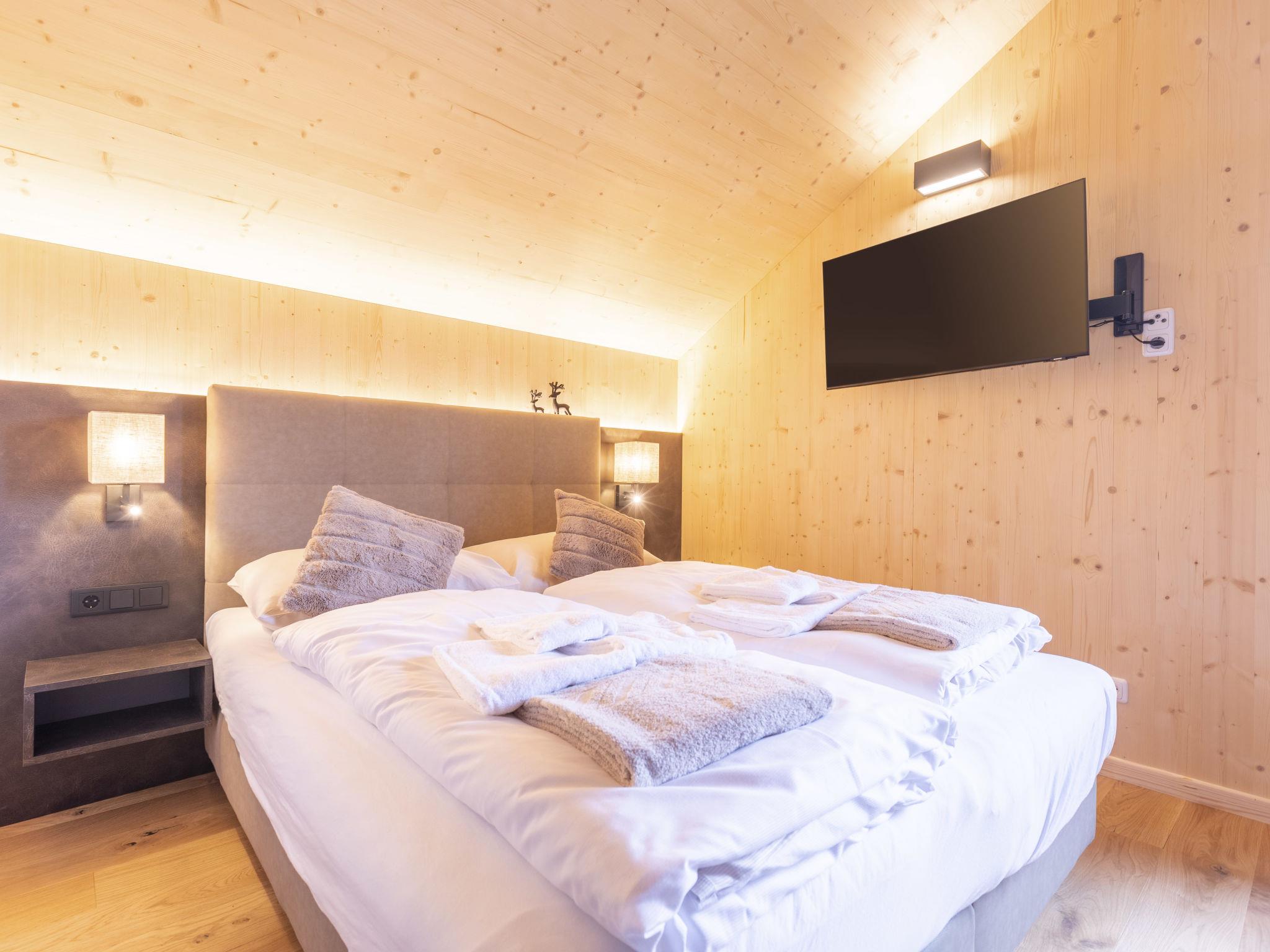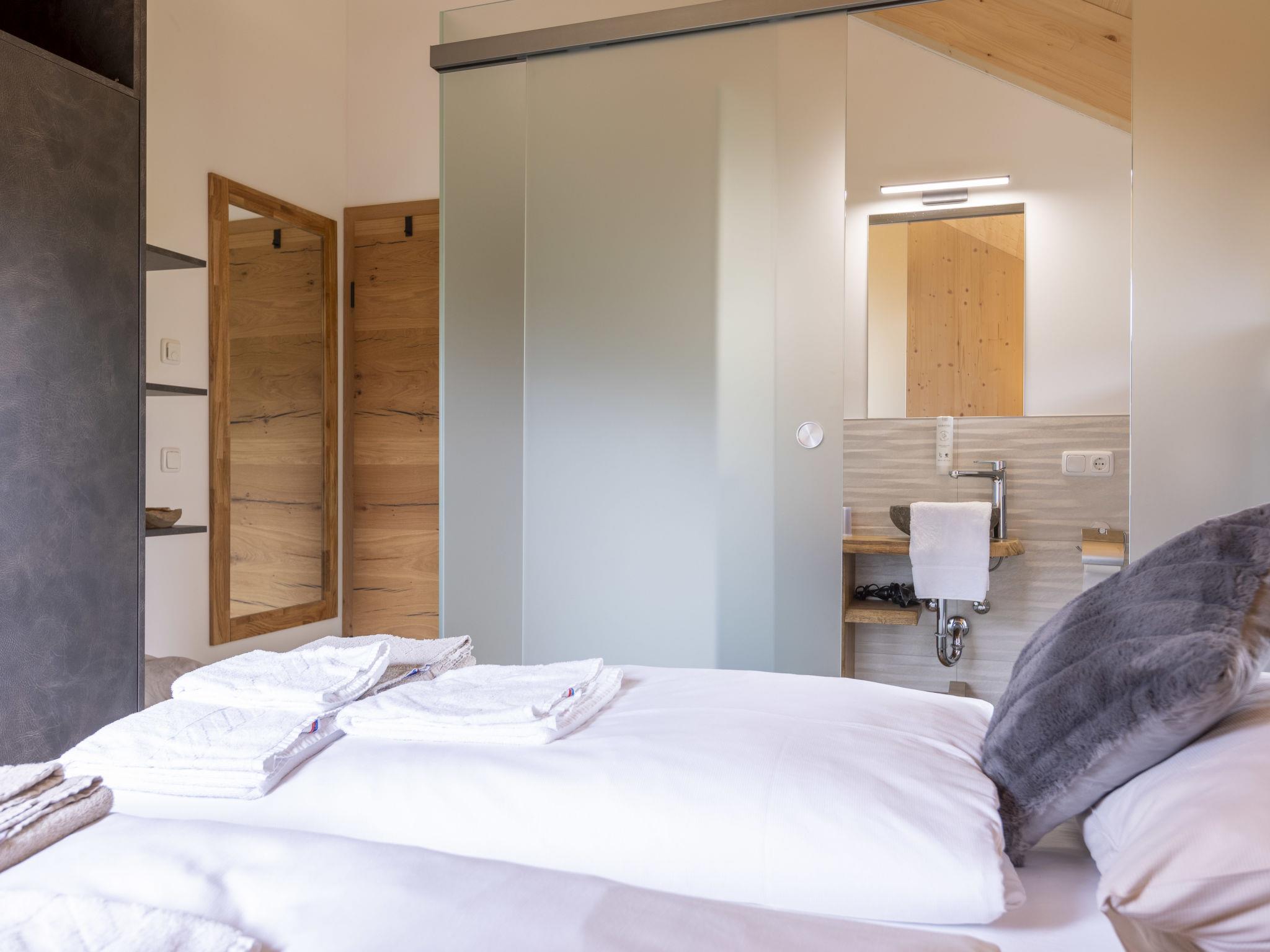 " 7b mit Sauna & Pool", 5-room chalet 114 m2. Spacious and bright, tasteful furnishings: living/dining room with dining nook and satellite TV (flat screen). 1 double bedroom with shower/WC. 2 double bedrooms. 1 room with 1 x 2 bunk beds, 1 double bed. Open kitchen (oven, dishwasher, 4 ceramic glass hob hotplates, toaster, kettle, microwave, electric coffee machine). 2 showers/WC, sep. WC. Balcony or terrace. Terrace furniture. Beautiful view of the mountains and the countryside. Facilities: sauna, hair dryer. Internet (WiFi, free). Please note: non-smokers only. The property is one of a type of property or apartment. The villa has a private heated pool on the terrace.