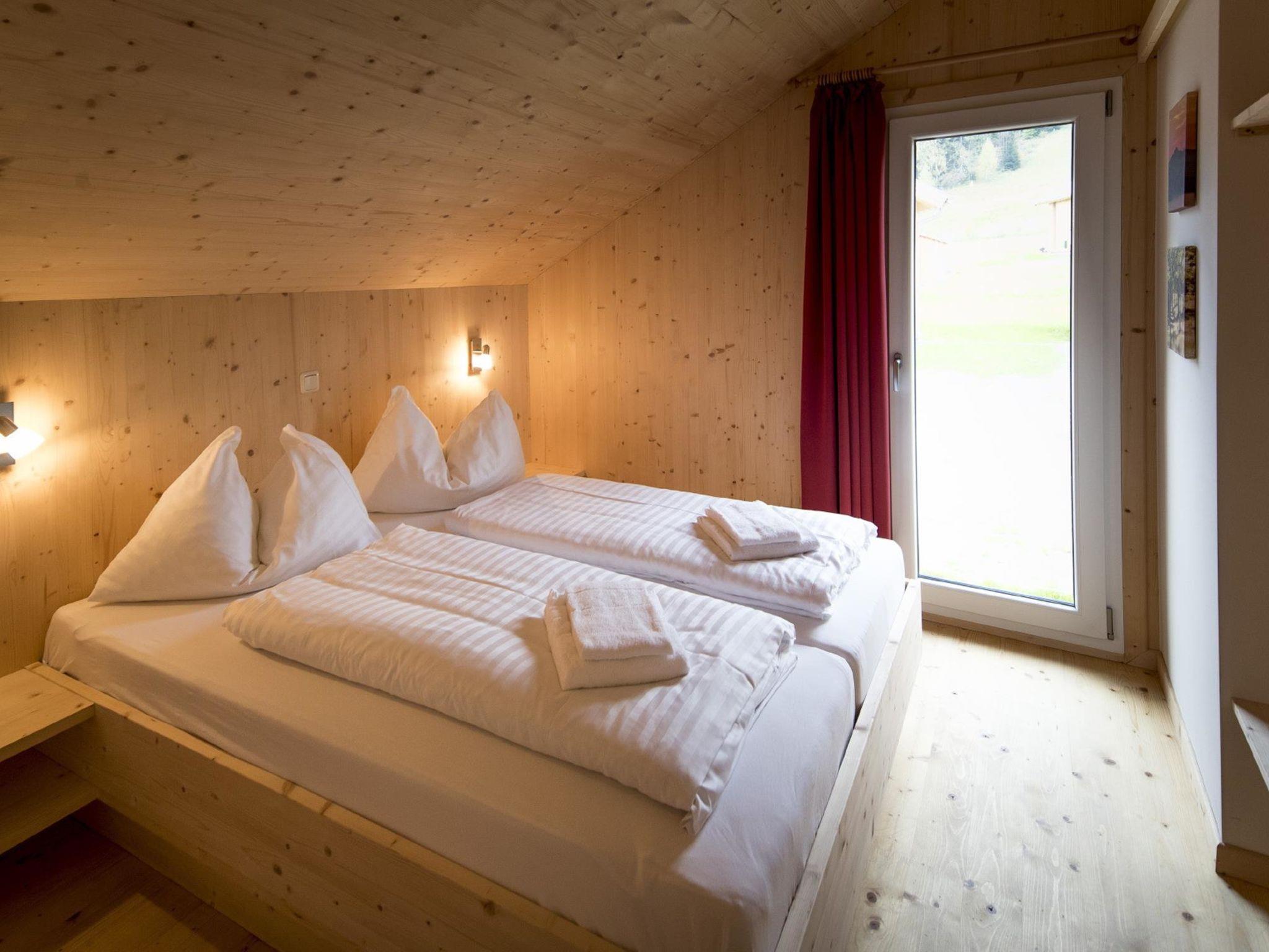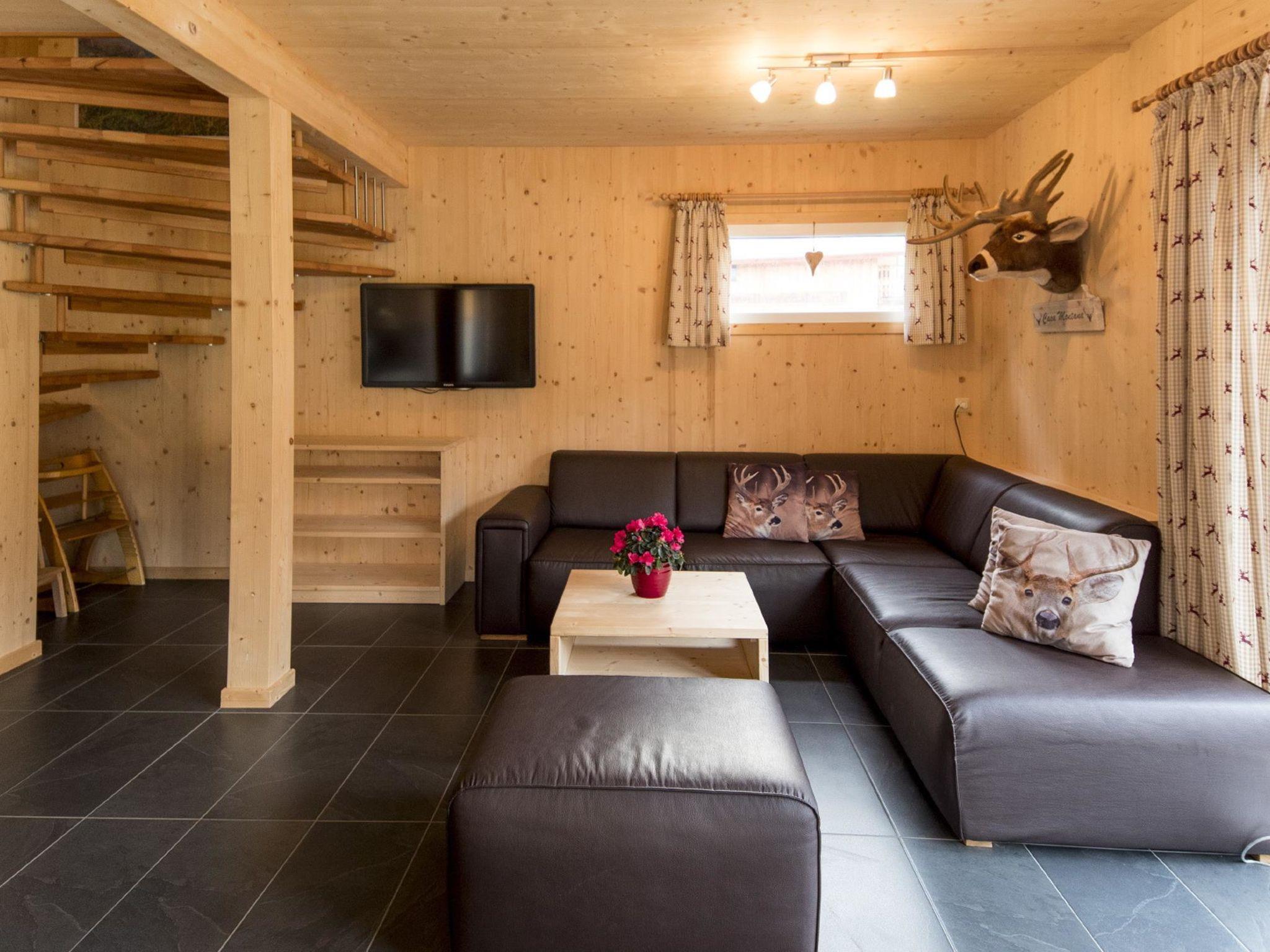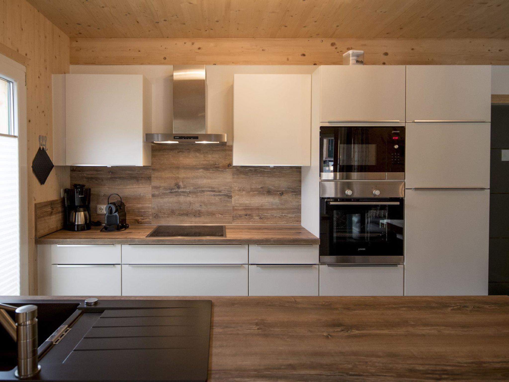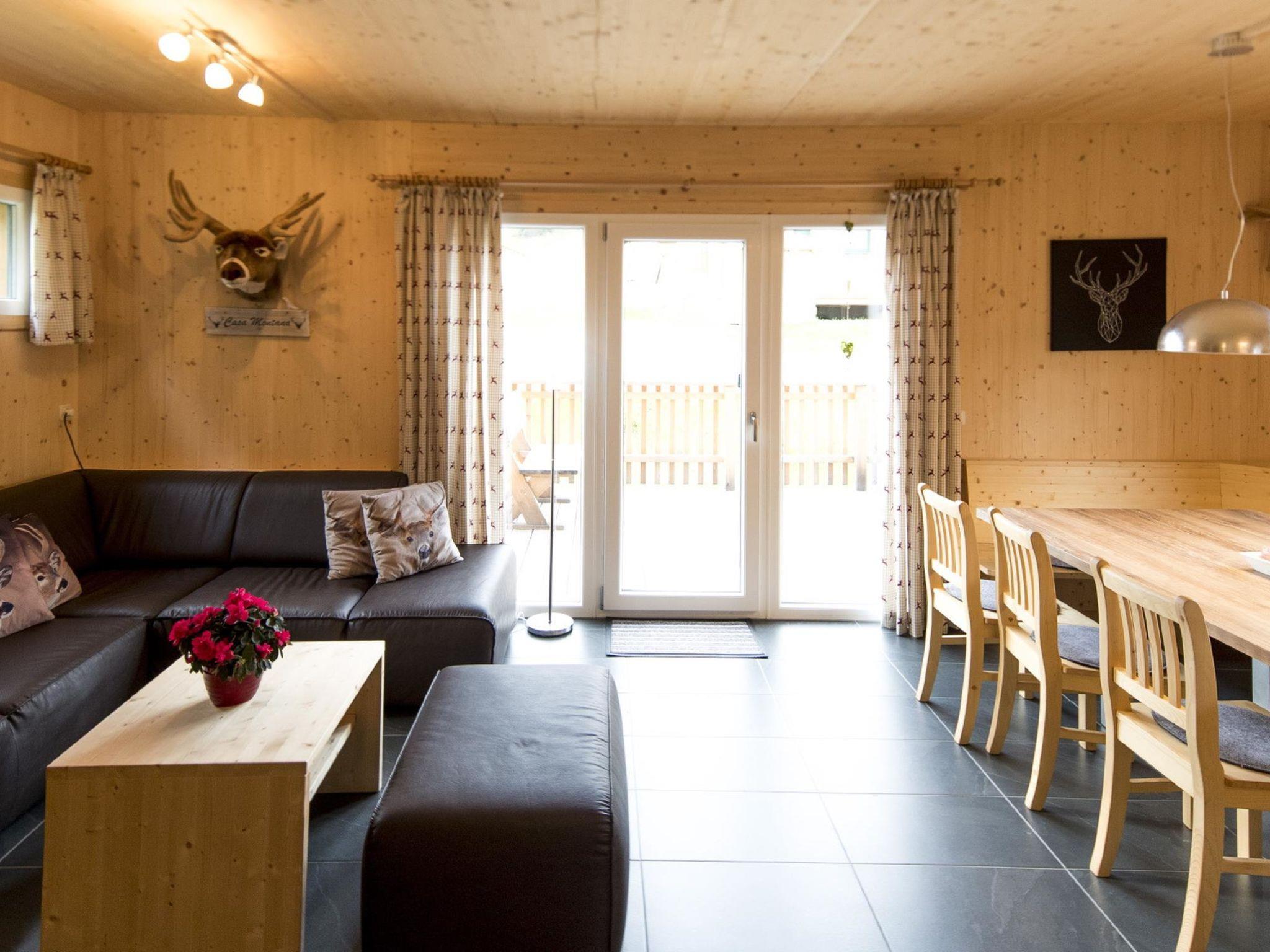 "Chalet mit 4 Schlafzimmern", 5-room chalet 100 m2 on 2 levels. Bright, comfortable and wooden furniture furnishings: entrance hall. Living/dining room with dining table and satellite TV (flat screen). 3 double bedrooms. 1 room with 1 bed and 1 x 2 bunk beds. Open kitchen (oven, dishwasher, 4 ceramic glass hob hotplates, microwave, electric coffee machine). Bath/WC, shower/WC, hydro massage shower, Sauna. Balcony, terrace. Very beautiful view of the mountains, the ski run and the countryside. Facilities: Internet (WiFi, free). Parking at the house. Please note: non-smoking house. Smoke alarm. The property is one of a type of property or apartment. The chalets are also individually equipped, sauna or infrared sauna.