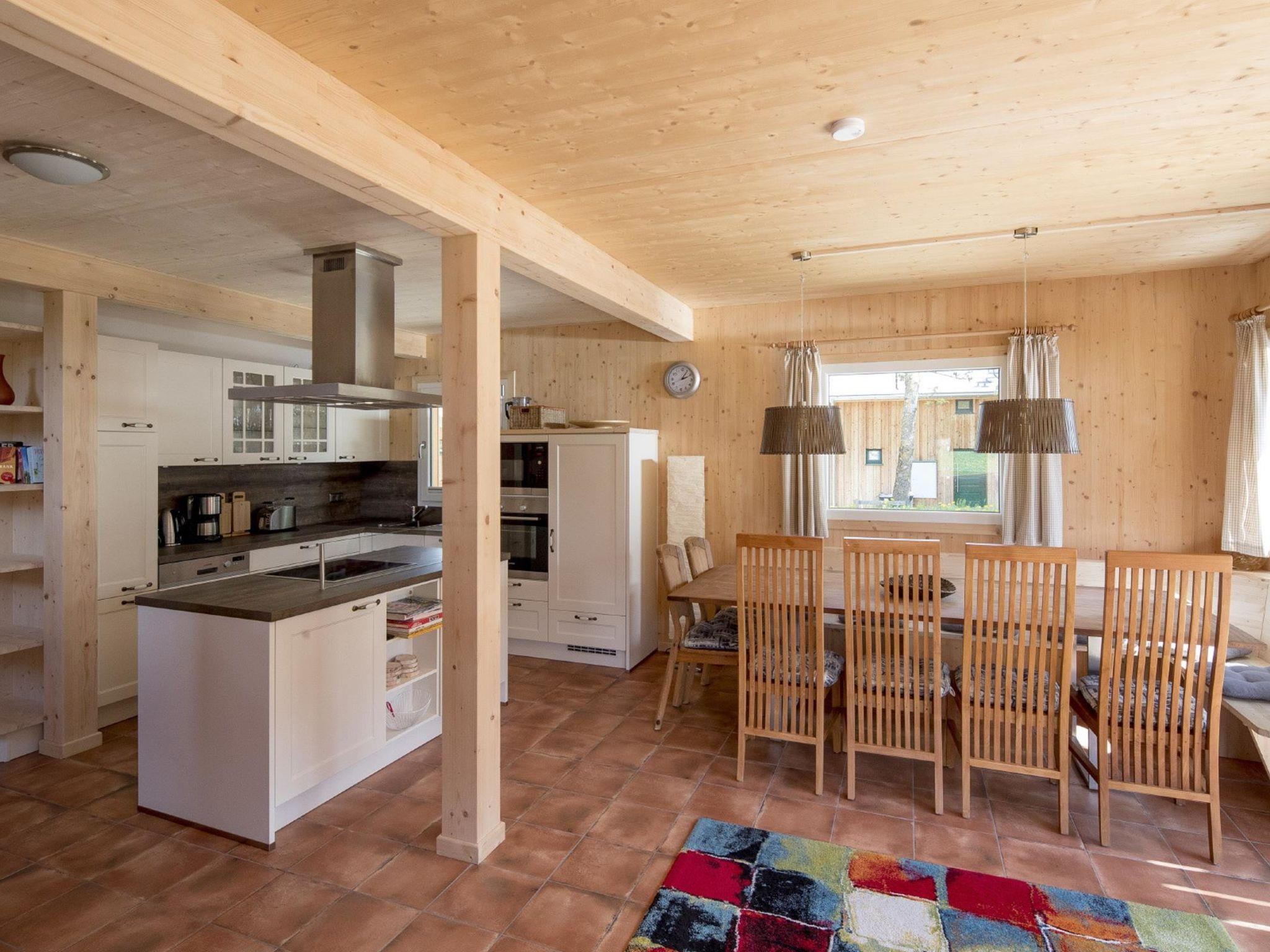 "Chalet 4 Schlafzimmern, Sauna & SwimSPA", 5-room chalet 100 m2 on 2 levels. Bright, comfortable and wooden furniture furnishings: entrance hall. Living/dining room with dining table and satellite TV (flat screen). 3 double bedrooms. 1 room with 1 bed and 1 x 2 bunk beds. Open kitchen (oven, dishwasher, 4 ceramic glass hob hotplates, microwave, electric coffee machine). 2 baths or showers/WC, hydro massage bath. Balcony, terrace. Very beautiful view of the mountains, the ski run and the countryside. Facilities: sauna. Internet (WiFi, free). Please note: non-smoking house. Smoke alarm, fire extinguisher. These chalets have a SwimSpa.
