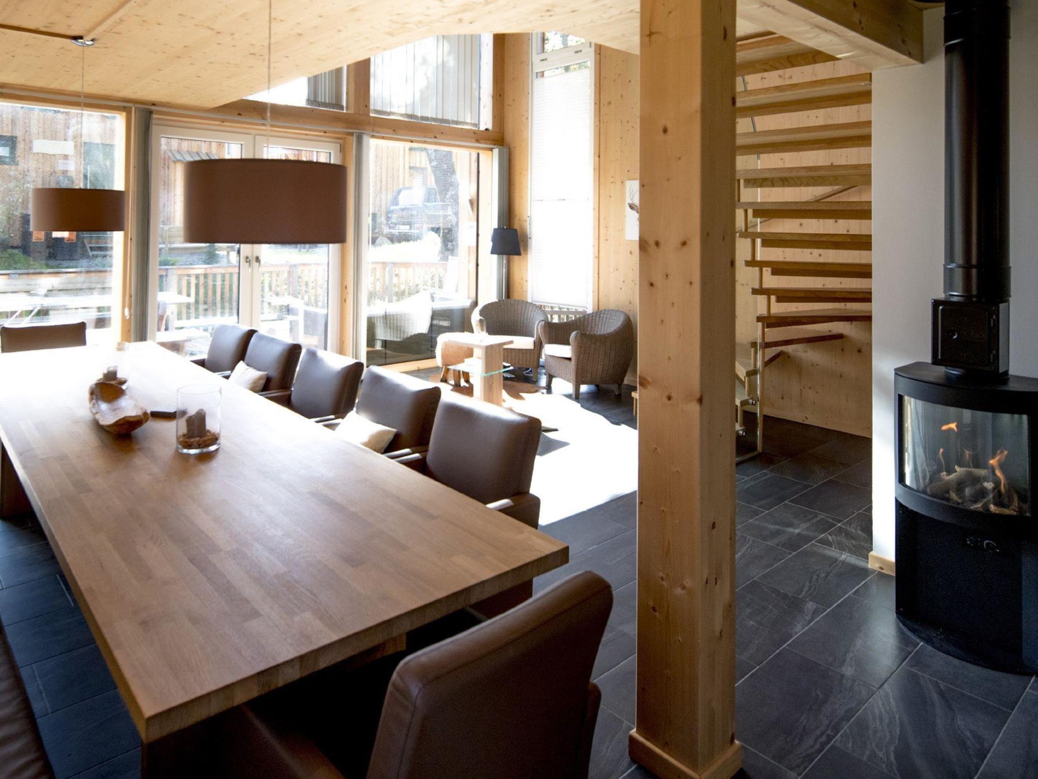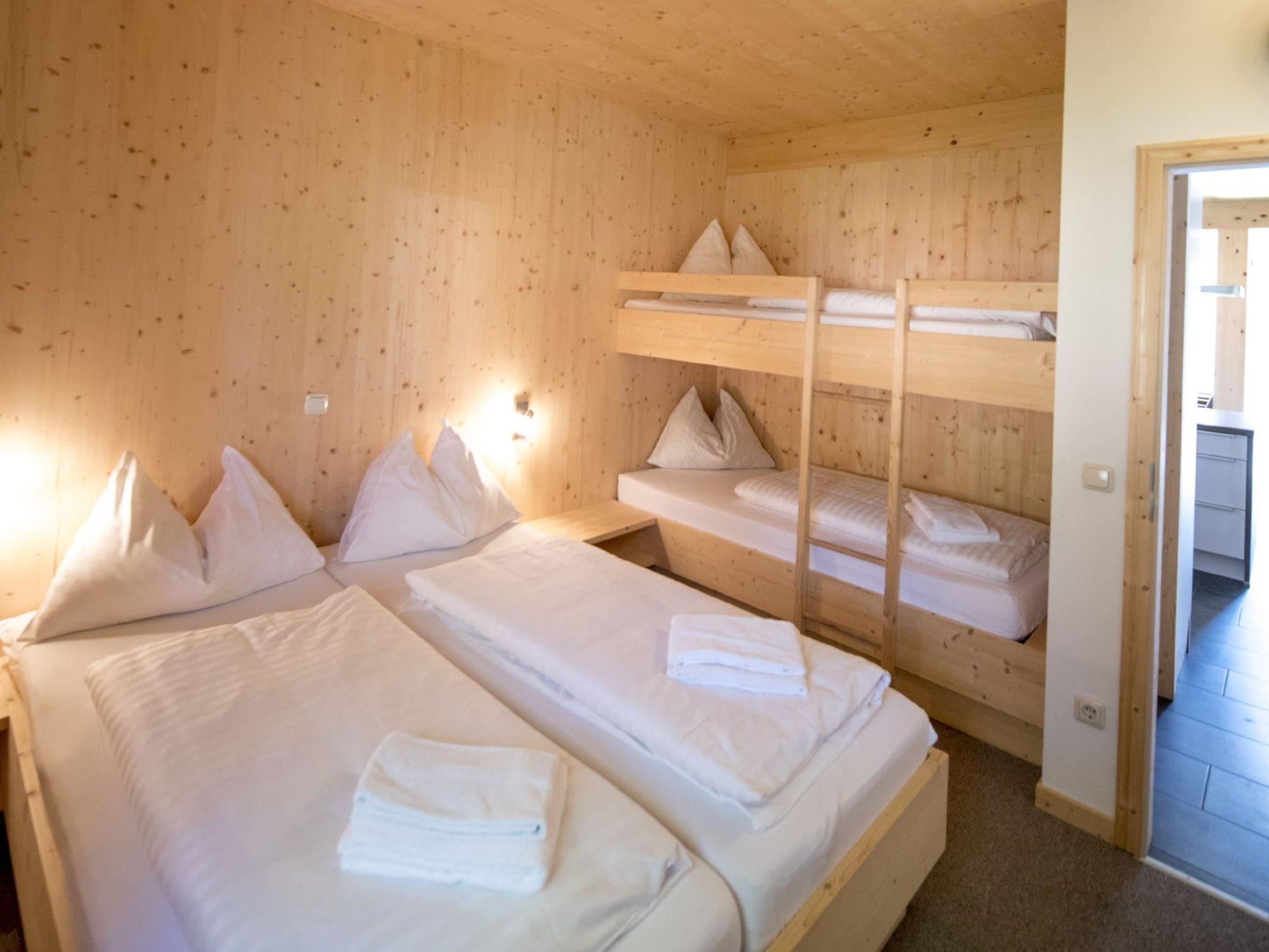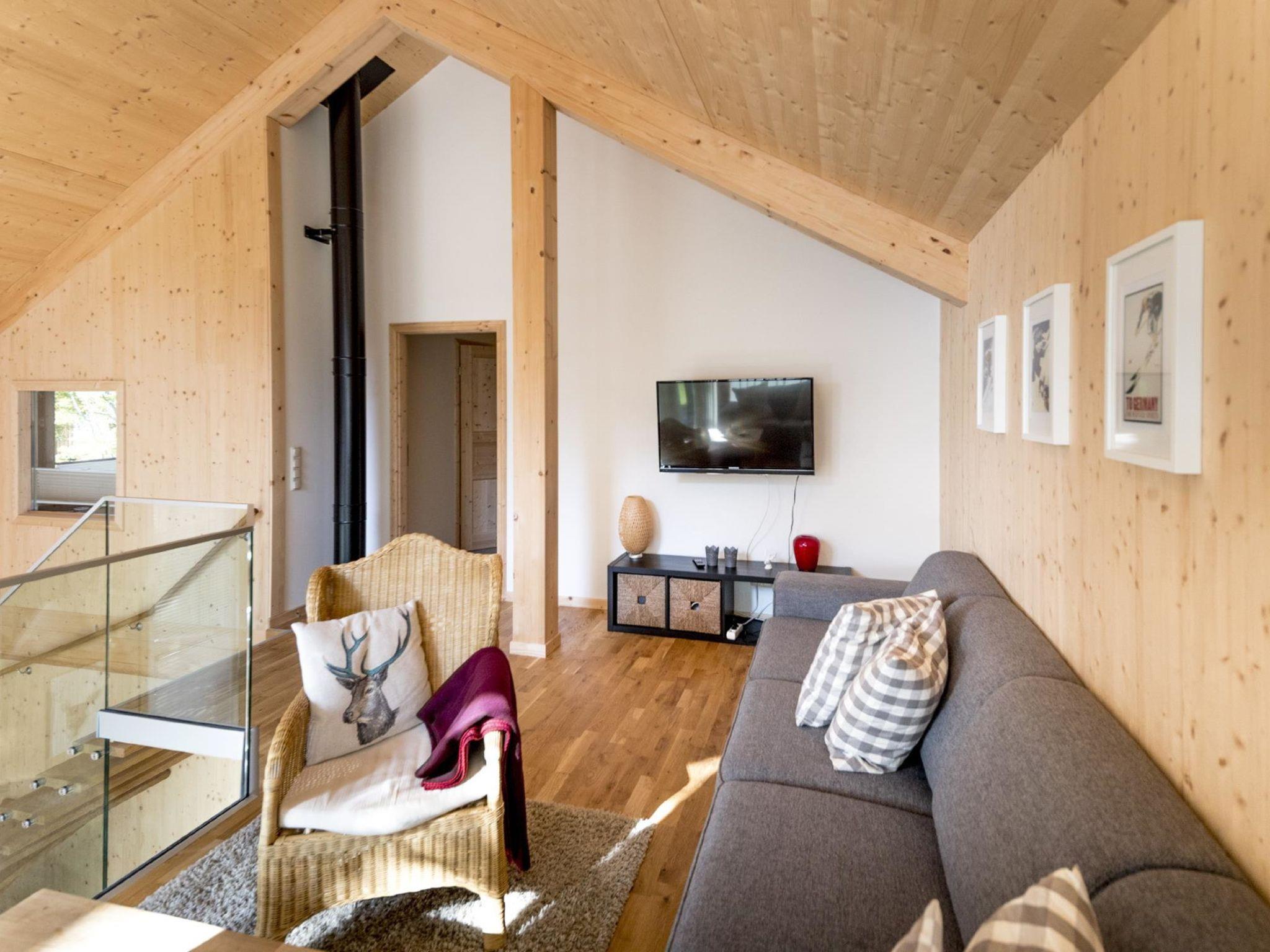 "Premium mit 5 SZ, Sauna oder IR-Sauna", 5-room chalet 140 m2 on 2 levels. Bright, comfortable and wooden furniture furnishings: large living/dining room with dining table and satellite TV (flat screen). 4 double bedrooms. 1 double bedroom with 1 x 2 bunk beds. Gallery with panoramic window. Open kitchen (oven, dishwasher, 4 ceramic glass hob hotplates, microwave, electric coffee machine). 3 showers/WC, Sauna. Terrace. Terrace furniture. Very beautiful panoramic view. Facilities: Internet (WiFi, free). Please note: non-smokers only. Smoke alarm. The property is one of a type of property or apartment.