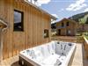 Frodig hytte med svømmespa