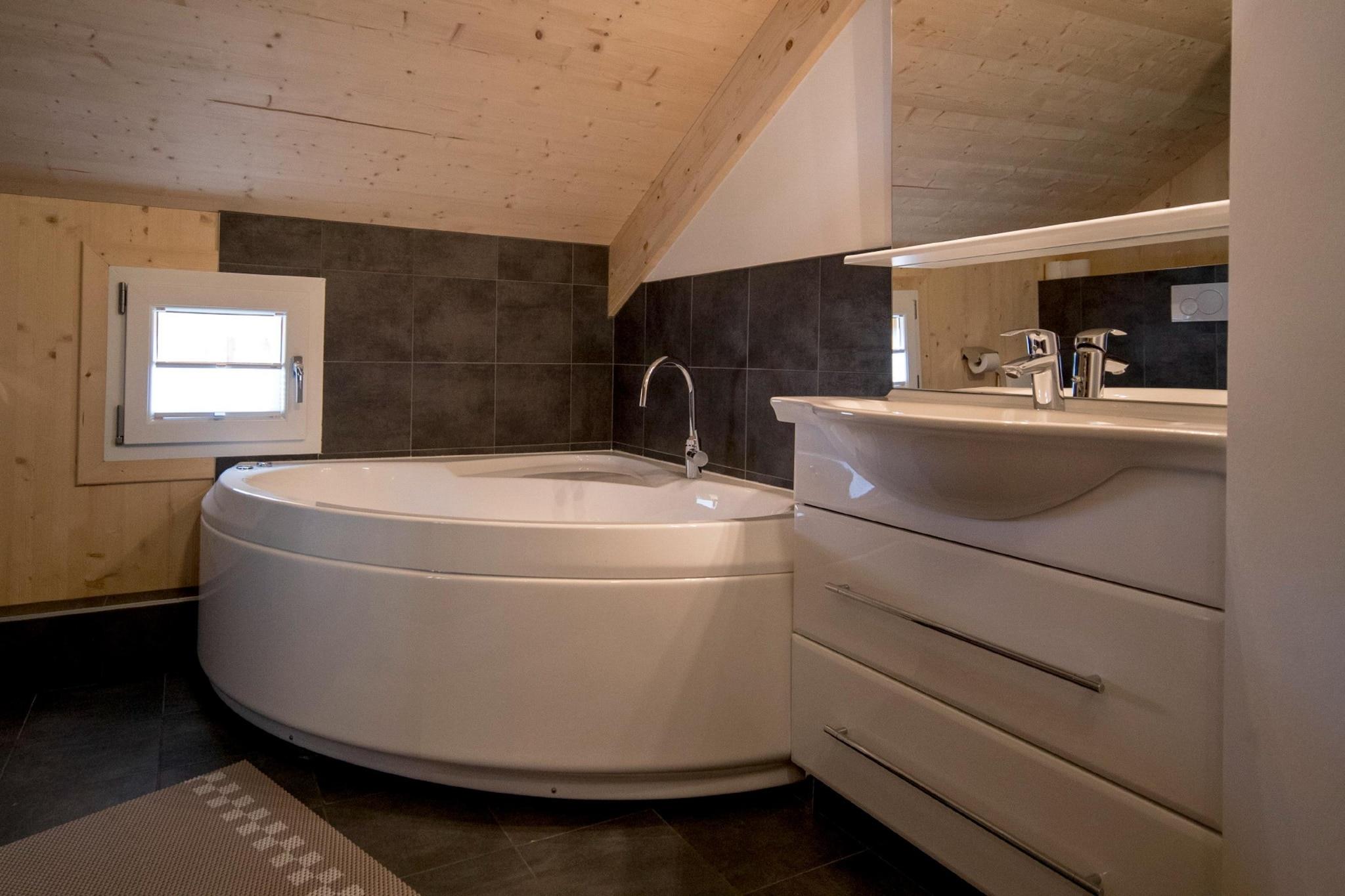 Oplev det perfekte alpine tilflugtssted i dette eksklusive chalet med 70 m² stilfuldt og komfortabelt opholdsrum til op til 5 personer. Dette hyggelige tilflugtssted har en førsteklasses beliggenhed ved Kreischberg-dalstationen og kombinerer moderne bekvemmeligheder med et strejf af luksus for et uforglemmeligt ophold. Chaleten har to indbydende soveværelser: et med en dobbeltseng og et andet med en dobbeltseng og en enkeltseng (skråt til loftet). Badeværelset er udstyret med et forfriskende brusebad eller et forkælende spabad og har et toilet. Der er også en hårtørrer til rådighed. Slap af i den rummelige opholds- og spisestue, som har et komfortabelt siddeområde og et fladskærms-tv til din underholdning. Det åbne køkken er udstyret med bestik, køkkengrej, keramisk kogeplade, ovn, opvaskemaskine og køleskab med frostboks og efterlader ingen kulinariske ønsker uopfyldt. Yderligere apparater såsom brødrister, elkedel og kaffemaskine er også tilgængelige for at gøre dit ophold så behageligt som muligt. For yderligere afslapning giver chaletens infrarøde sauna dig mulighed for at lindre dine trætte muskler efter en dag med at udforske de smukke omgivelser. Hold forbindelsen med gratis Wi-Fi.