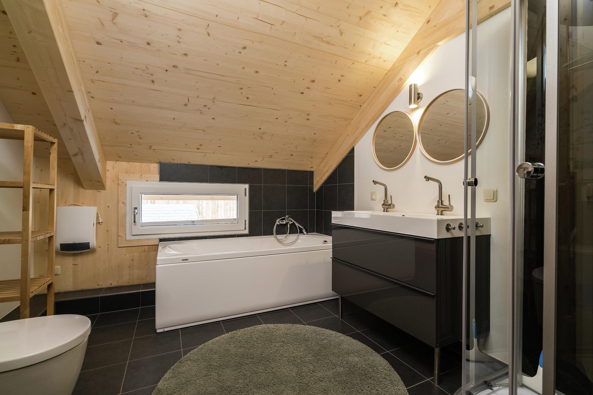Dette er en fritliggende, luksuriøs træhytte ved foden af skiliften og skråningerne af det fantastiske Kreischberg skiområde. Den historiske by Murau og Kreischberg golfbane ligger cirka 5 minutter væk. Den centrale beliggenhed gør dette til et perfekt ferieområde, både om vinteren og om sommeren. Mere end 200 solskinsdage om året og et skiområde med sne garanteret gør dette til en perfekt feriemål for alle årstider. Den fritliggende træhytte er fuldt udstyret og har et smukt badeværelse med et dejligt boblebad, wellness-bruser, en infrarød sauna og ikke mindre end fire soveværelser. Indretningen gør denne hytte yderst velegnet til større grupper med højst 8 voksne og 1 barn. Beboelsesområdet er beliggende i stueetagen. Her finder du en dejlig stue med åbent køkken, rummelig opholdsstue, spiseplads og endda en hyggelig gasbrænde til behagelige vinteraftener. Stuen åbner direkte ud til terrassen og ind i haven. Hytten og Begge terrasser har udsigt over skiløjperne, skiliften og de omkringliggende bjerge. Langrendsløypen ligger lige bag hytten. Omgivelserne i hytten er stadig under opførelse, hvilket kan medføre nogle gener.