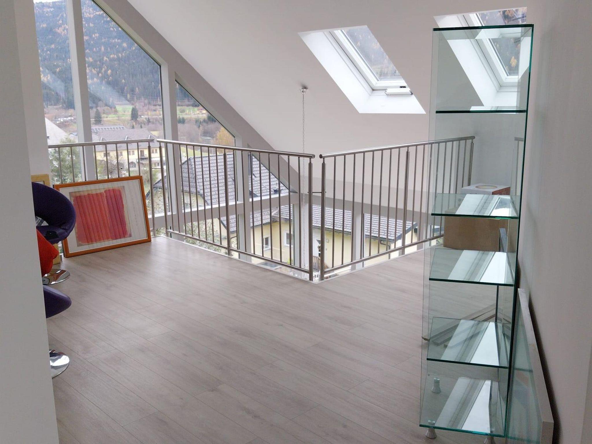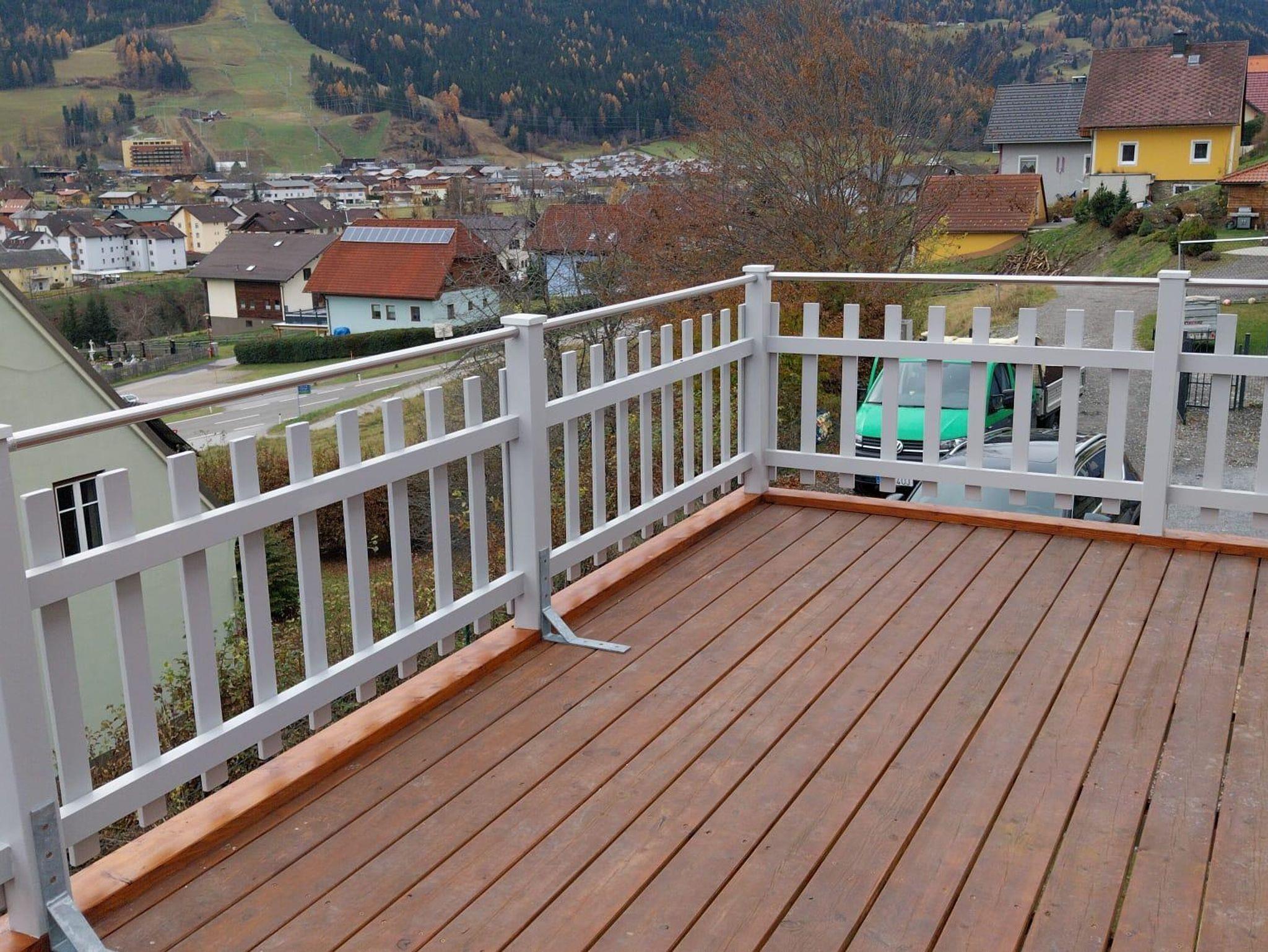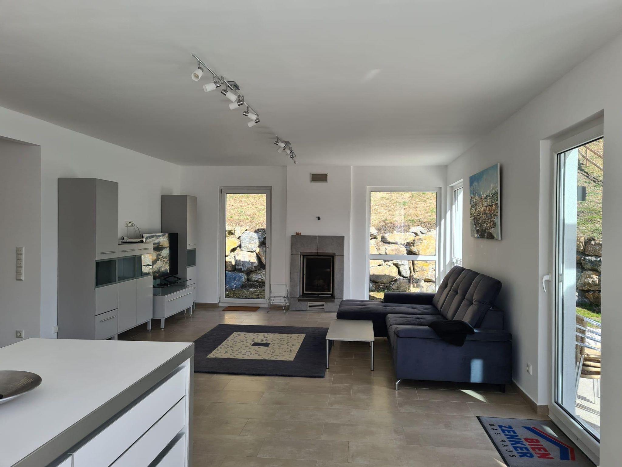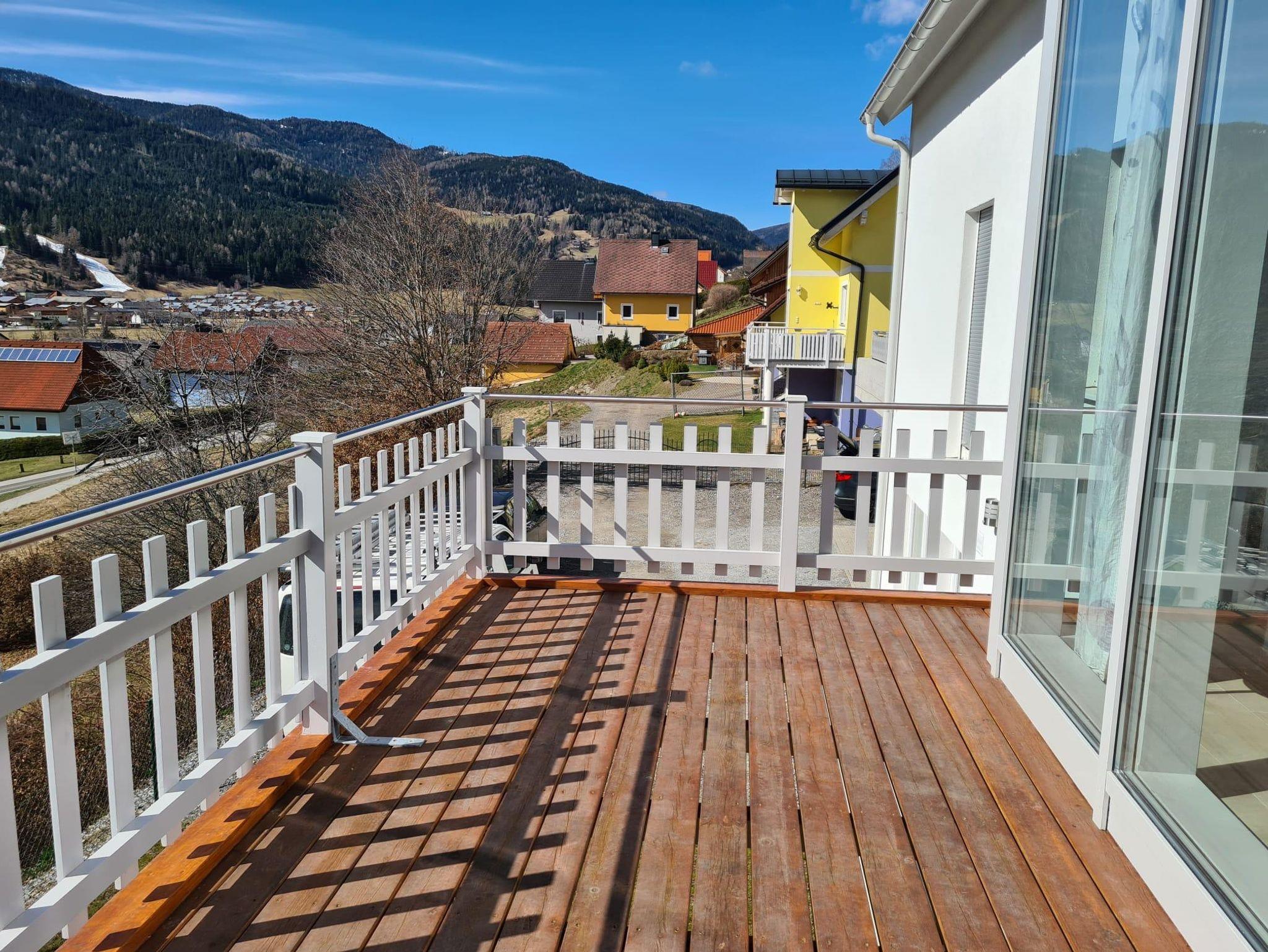 Vom Wohnzimmer aus hat man direkten Zugang zum Balkon. Ein ebenso traumhafter Bergblick bietet sich von der Ost- und Westterrasse.