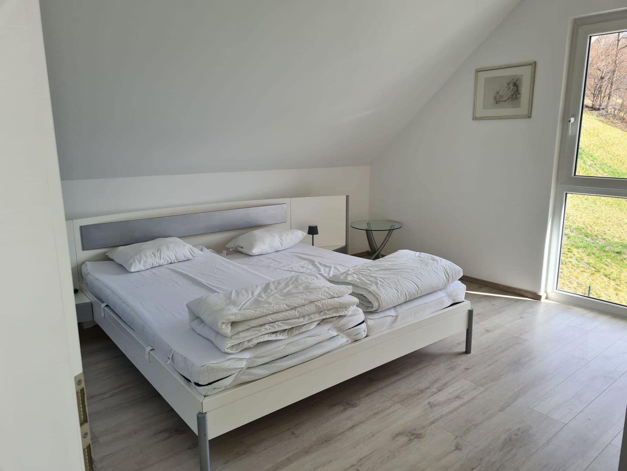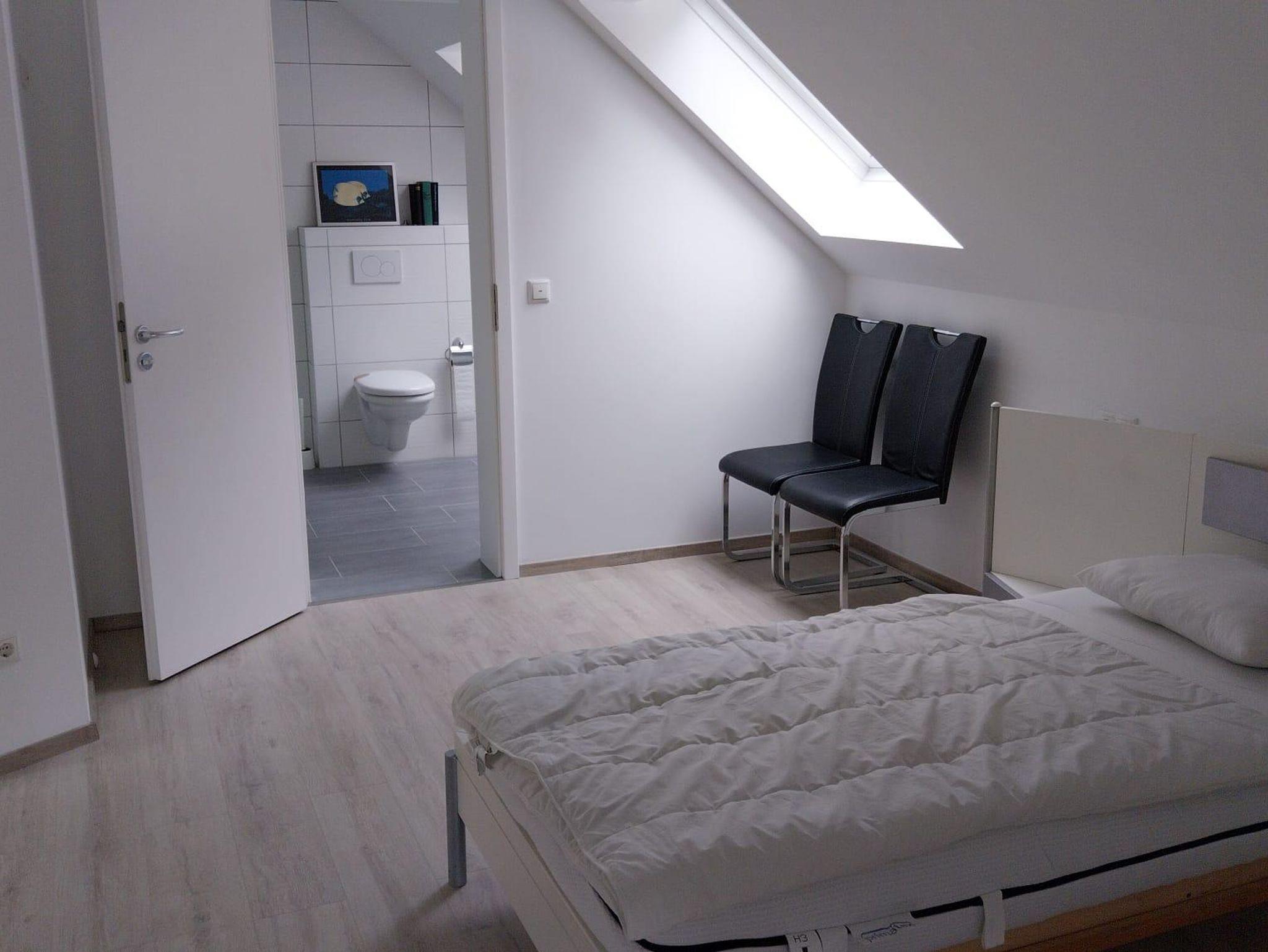Geruhsame Nachtruhe finden unsere Urlaubsgäste in 4 Schlafzimmern für je 2 Personen. Dabei handelt es sich um 3 Schlafzimmer mit 2 Betten und 1 Schlafzimmer mit Etagenbett. Eine weitere Übernachtungsmöglichkeit bietet das kleine Schlafsofa auf der Galerie und das Schlafsofa im Wohnzimmer.
