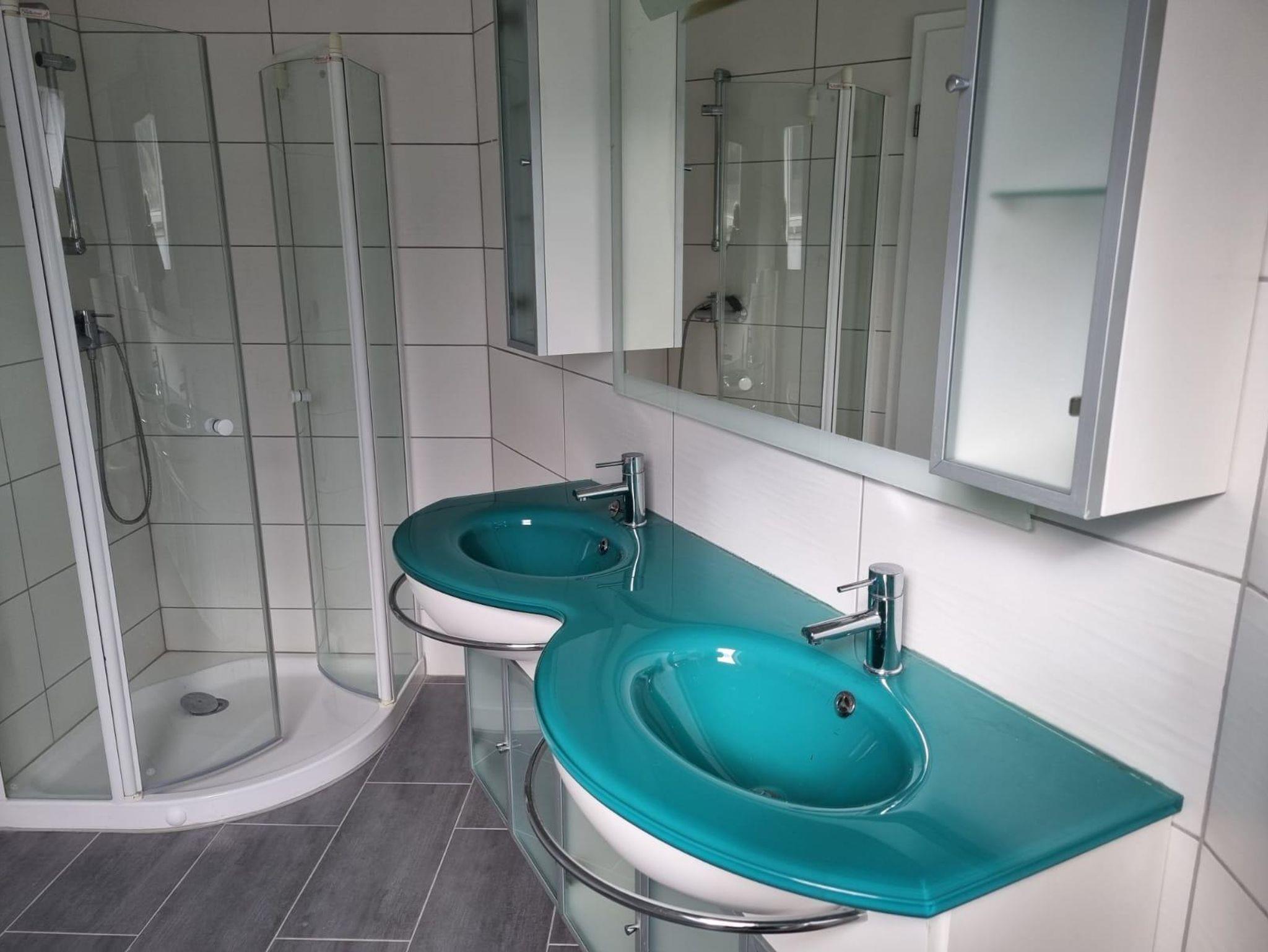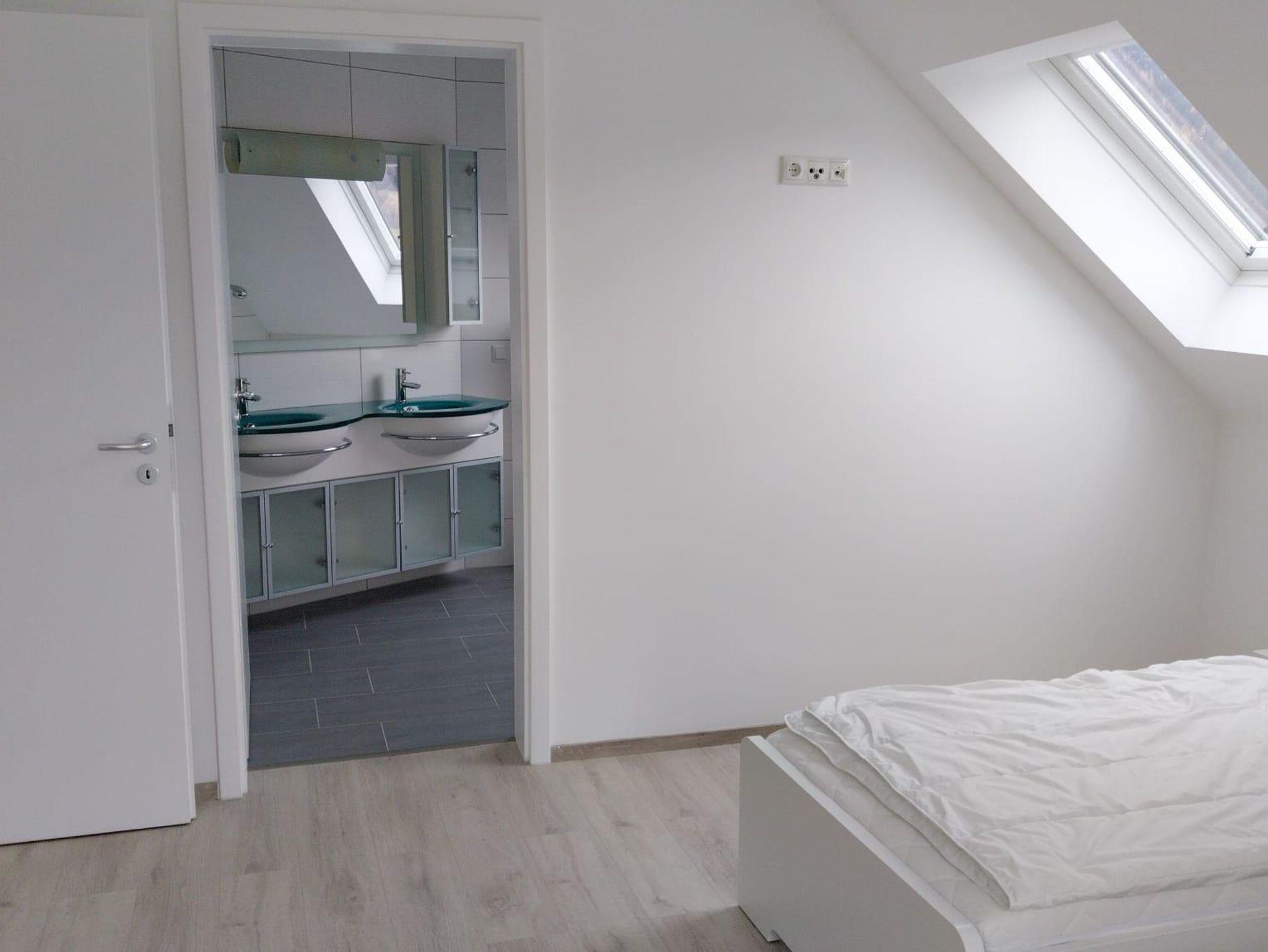 Zwei Schlafzimmer verfügen über je ein eigenes Badezimmer, eines über Badewanne, Dusche, WC und ein Doppelwaschbecken. Das 2. Schlafzimmer verfügt über Dusche, WC und Waschbecken. Die beiden anderen Schlafzimmer befinden sich auf dem gleichen Stockwerk wie das 3. Badezimmer, welches über Dusche, WC und Waschbecken verfügt.